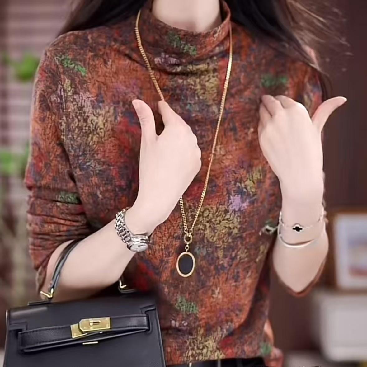 Camiseta de otoño e invierno 2024 para mujer, de manga larga, a la moda, con forro polar, cálida, versátil, para madre