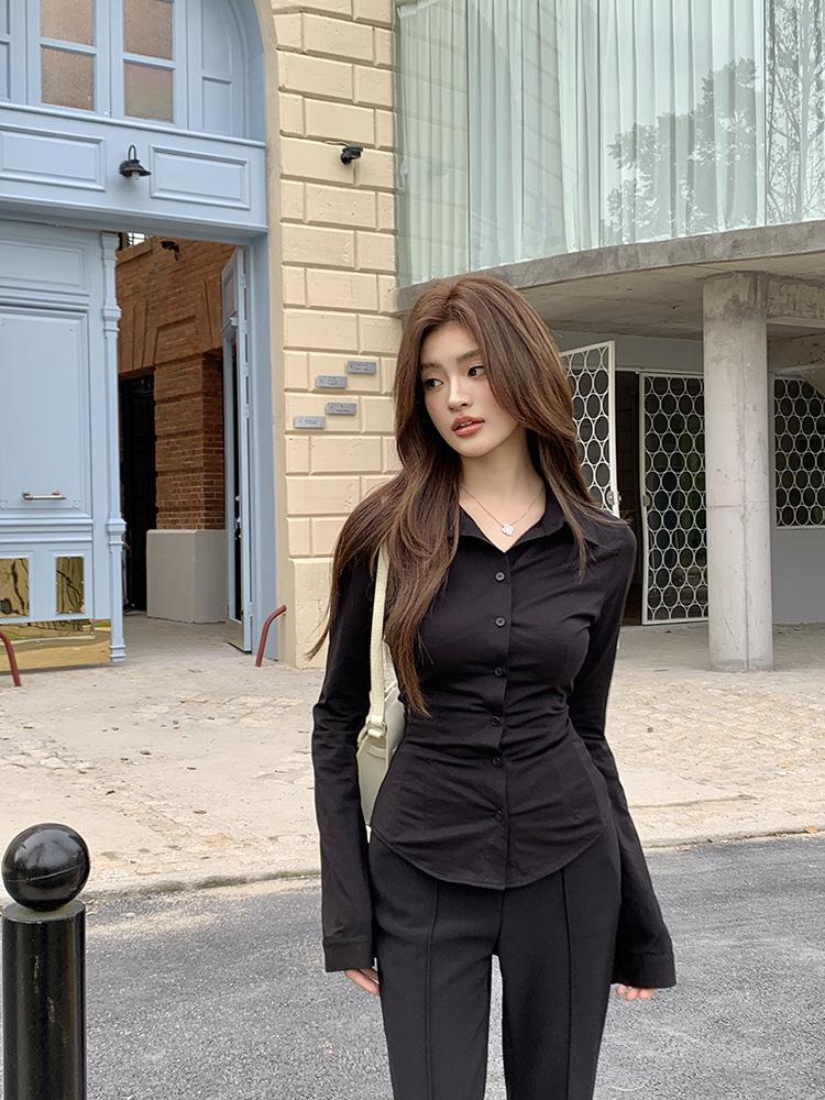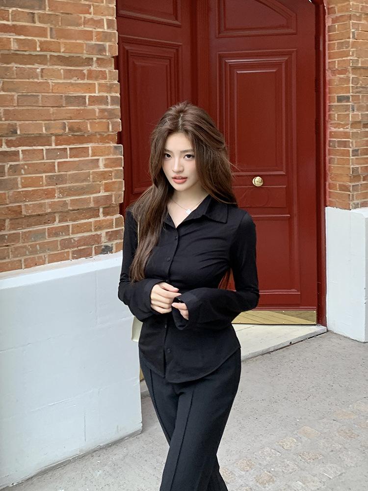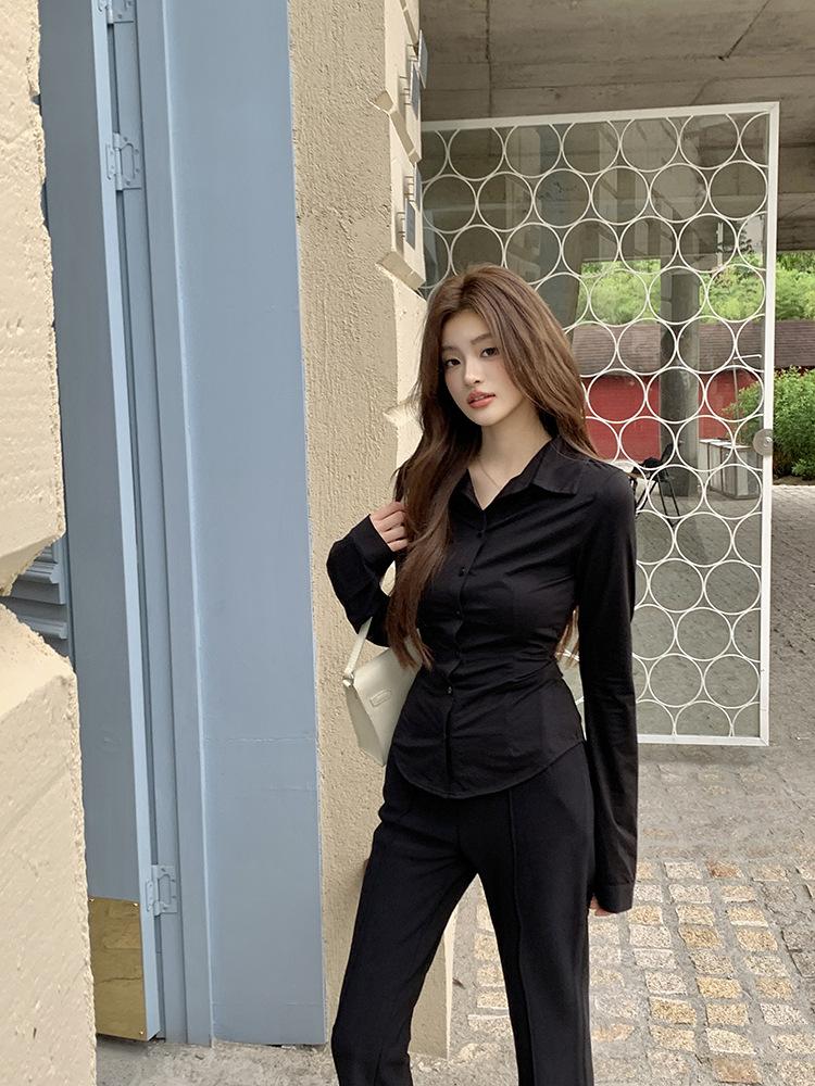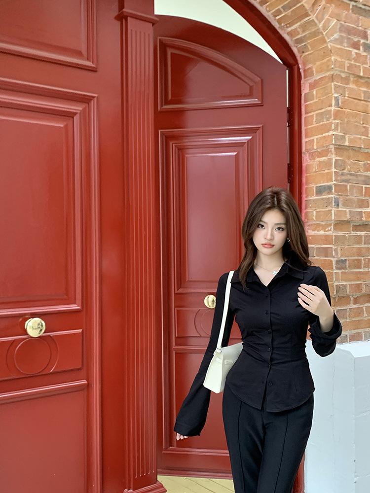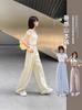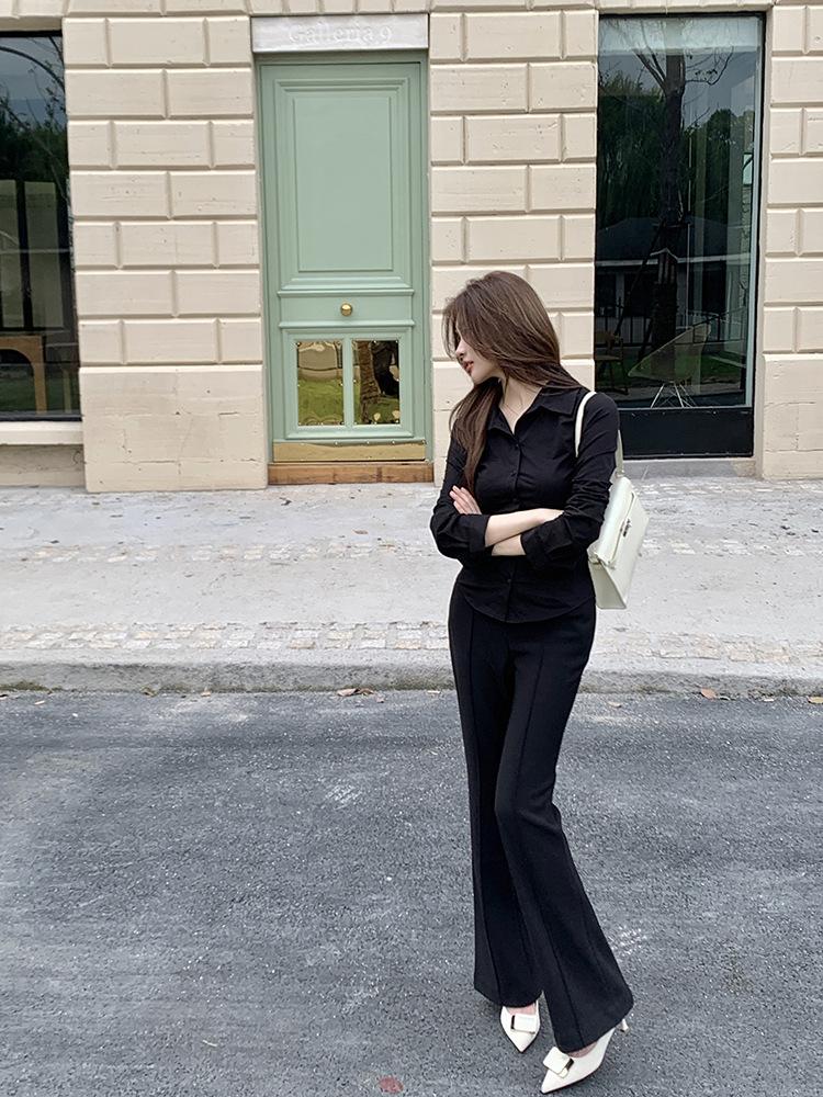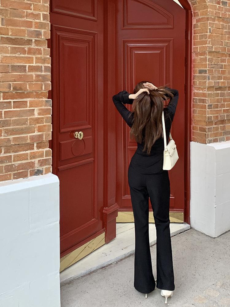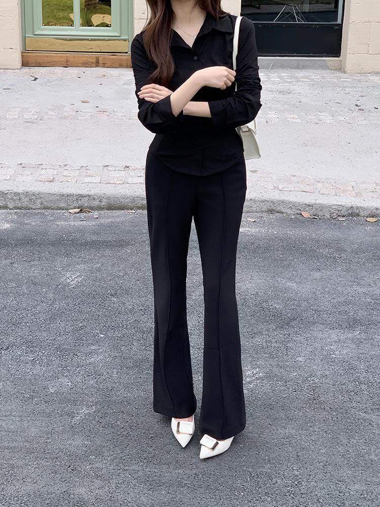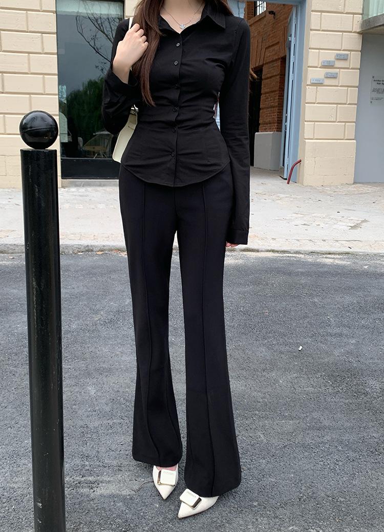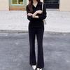 Foto Real de Otoño e Invierno 2024 Nuevo Estilo Versátil Look Adelgazante Cintura Ballena Alta Cintura Bootcut Pantalones Casuales para Mujer
