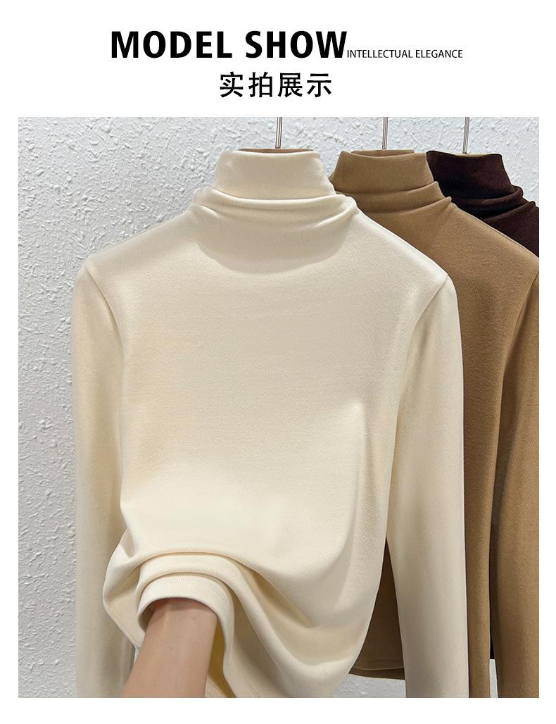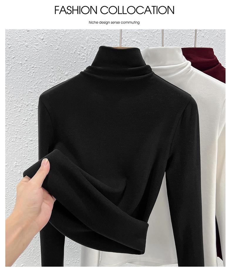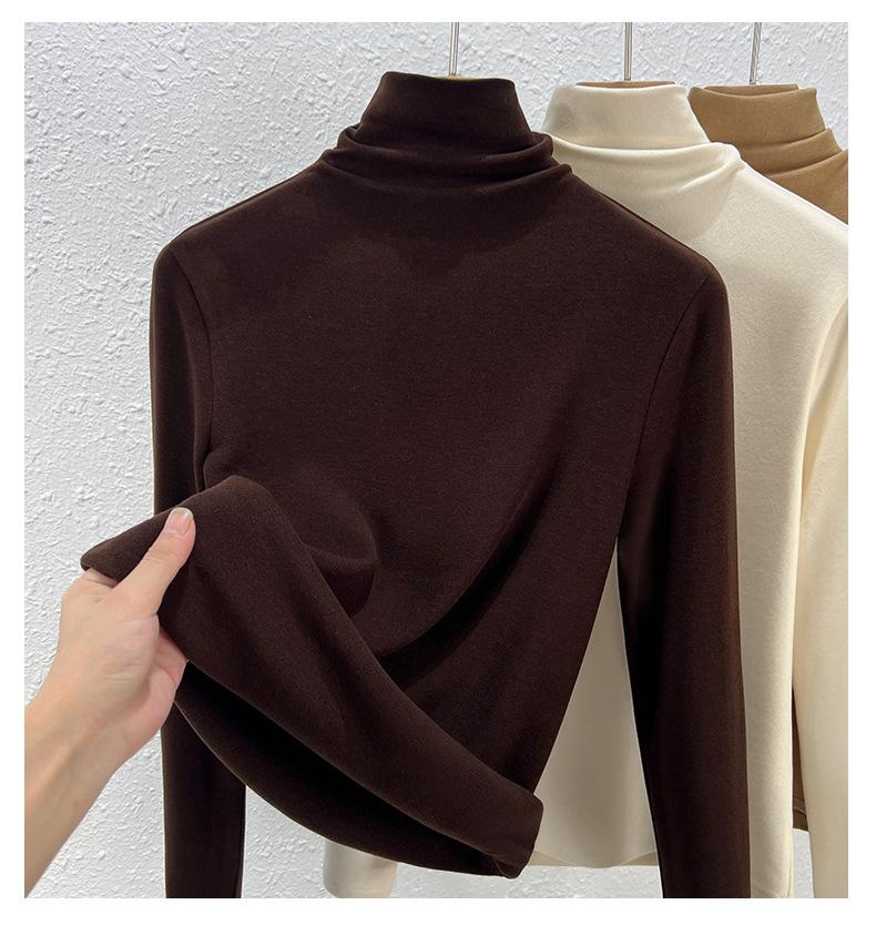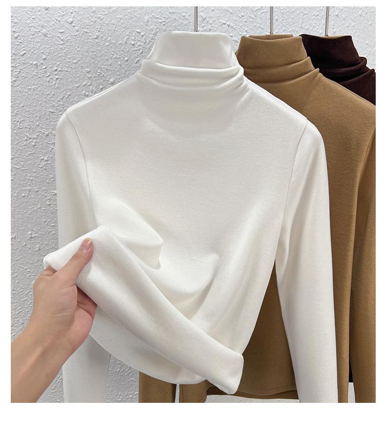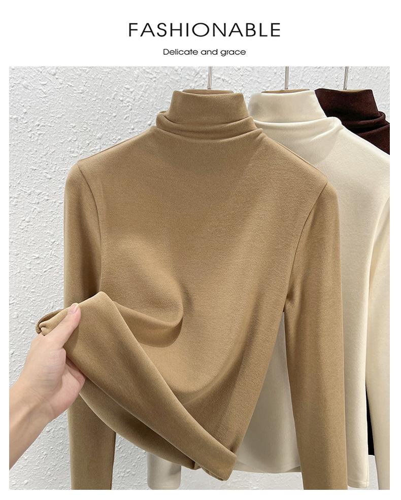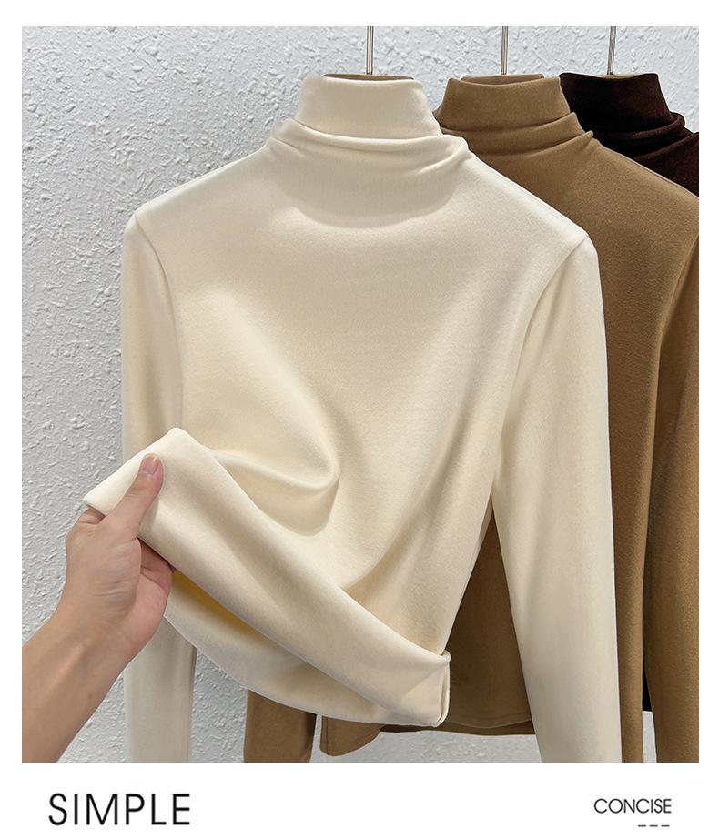 Capa Base de Forro Polar de Doble Cara de Cuello Alto para Mujer, Liquidación Nuevo Estilo para Otoño e Invierno, Forrado de Forro Polar y Engrosado, Cuello Apilado, Top Cálido, Capa Interior Cepillada