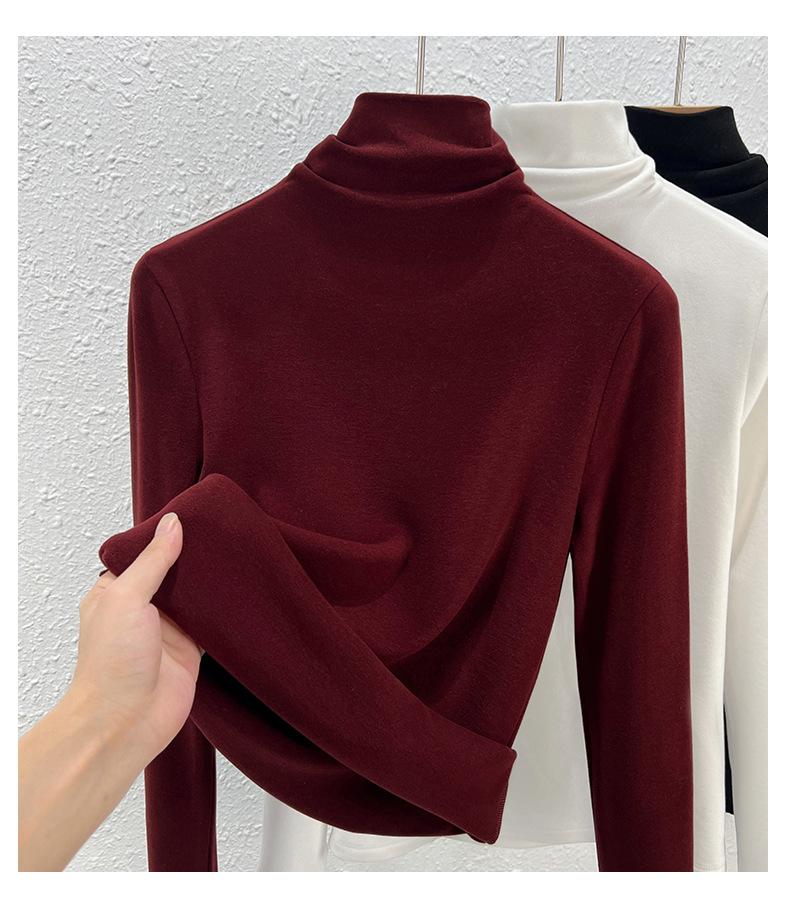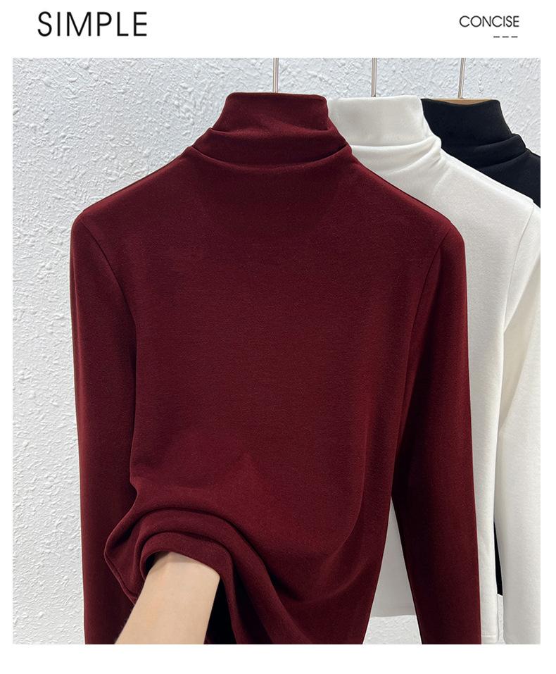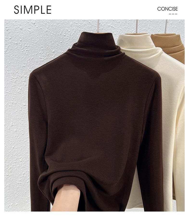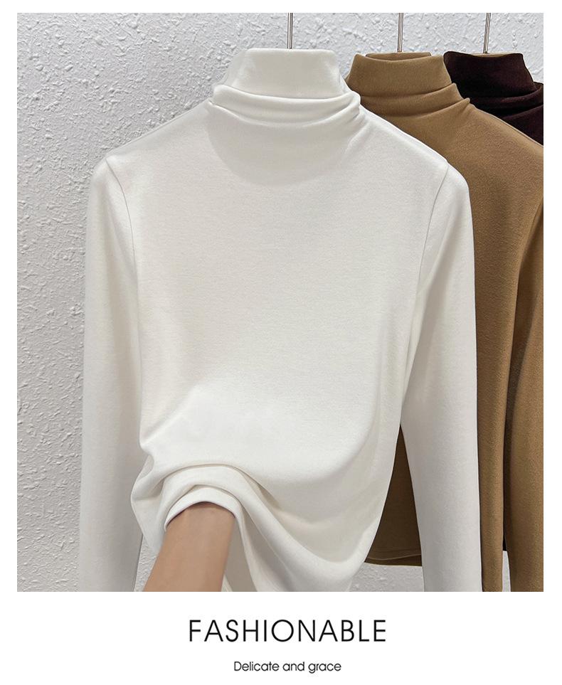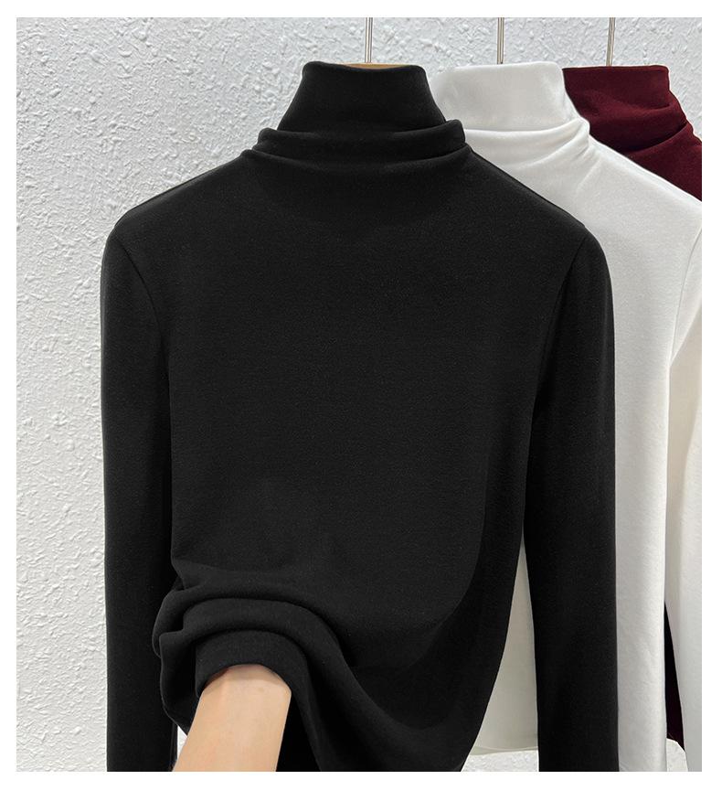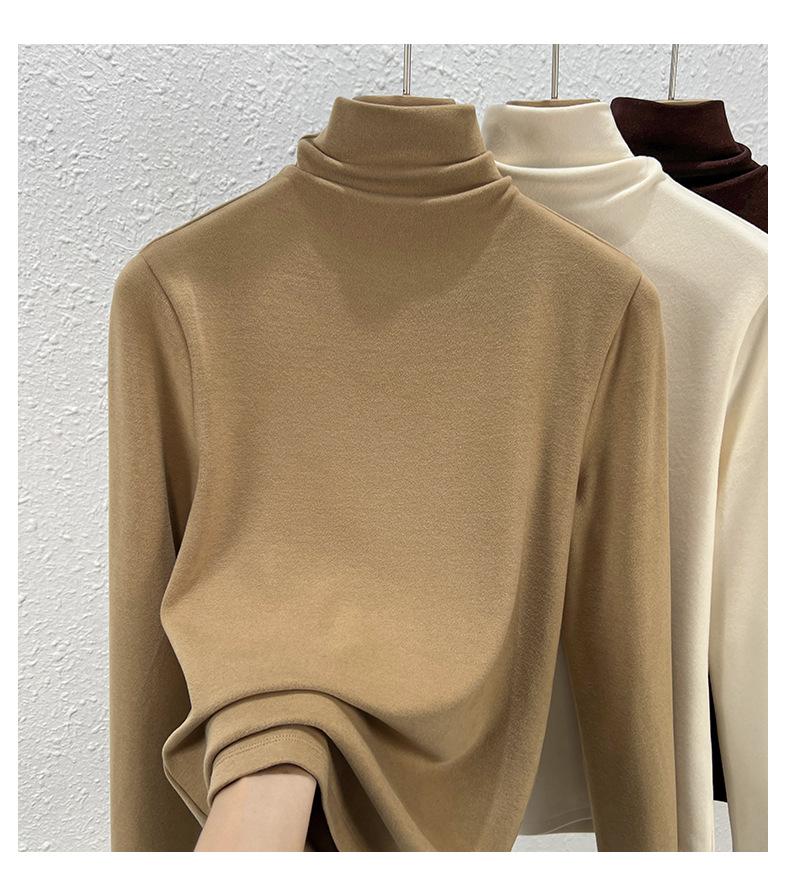 Capa Base de Forro Polar de Doble Cara de Cuello Alto para Mujer, Liquidación Nuevo Estilo para Otoño e Invierno, Forrado de Forro Polar y Engrosado, Cuello Apilado, Top Cálido, Capa Interior Cepillada