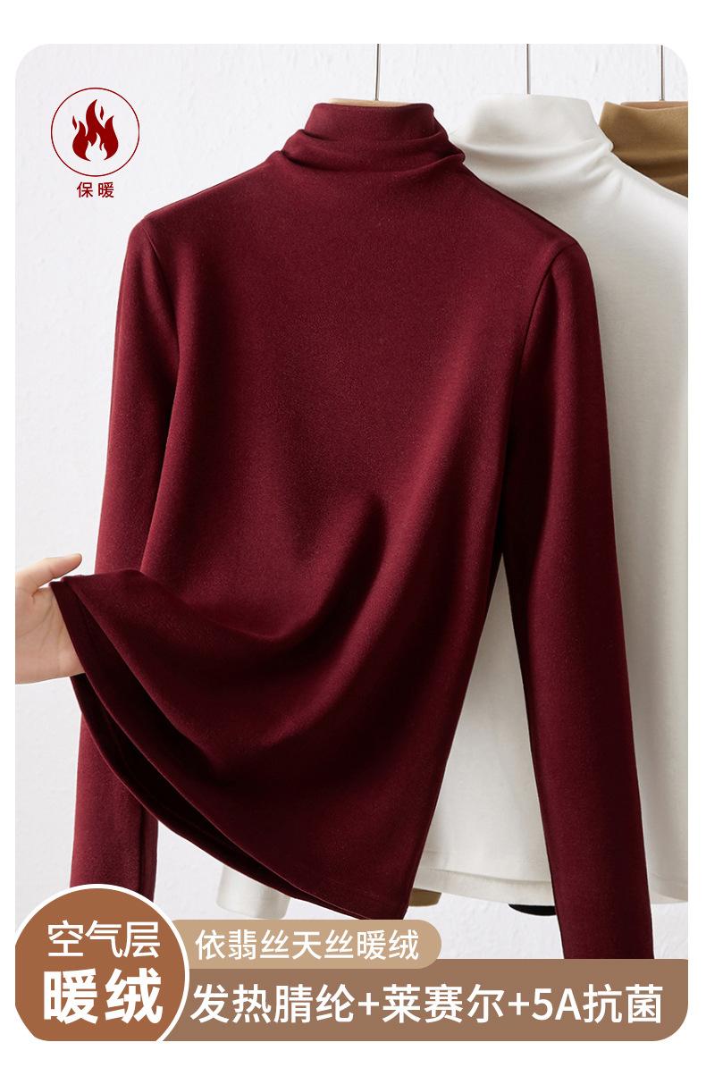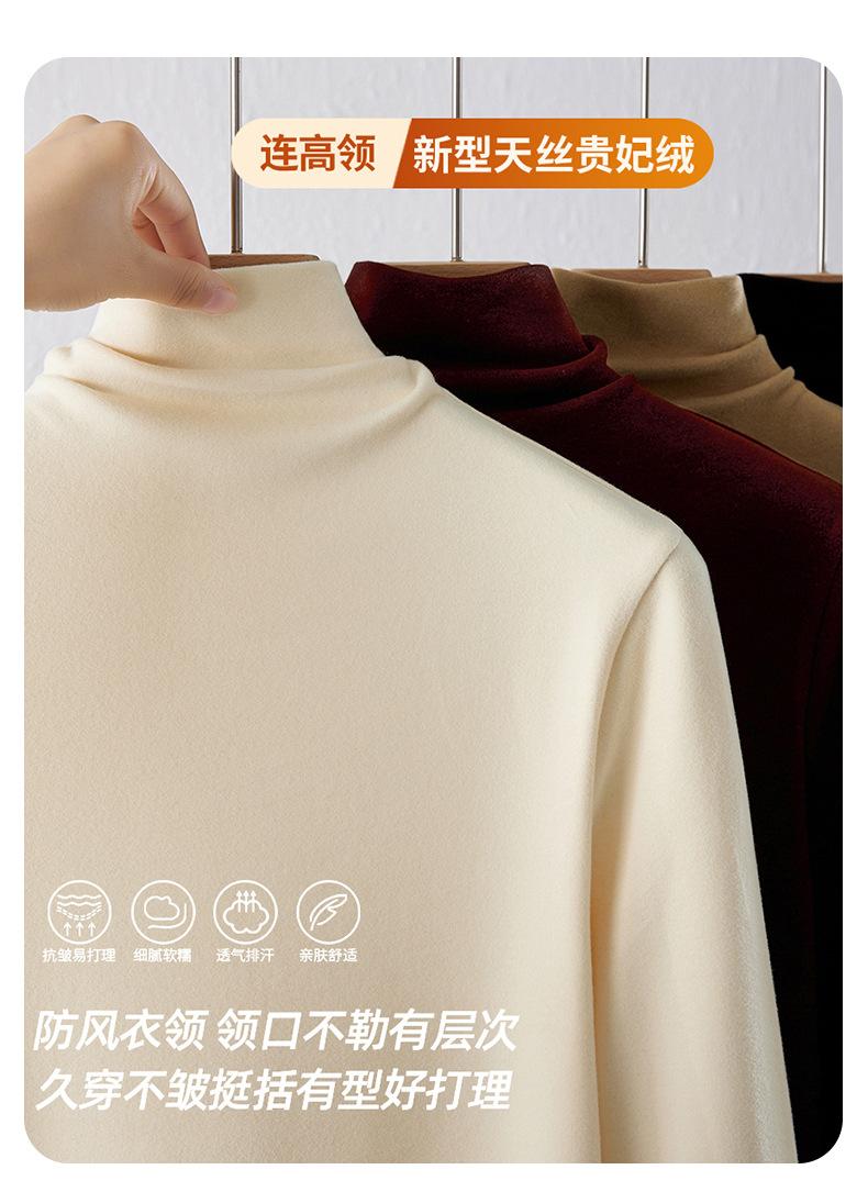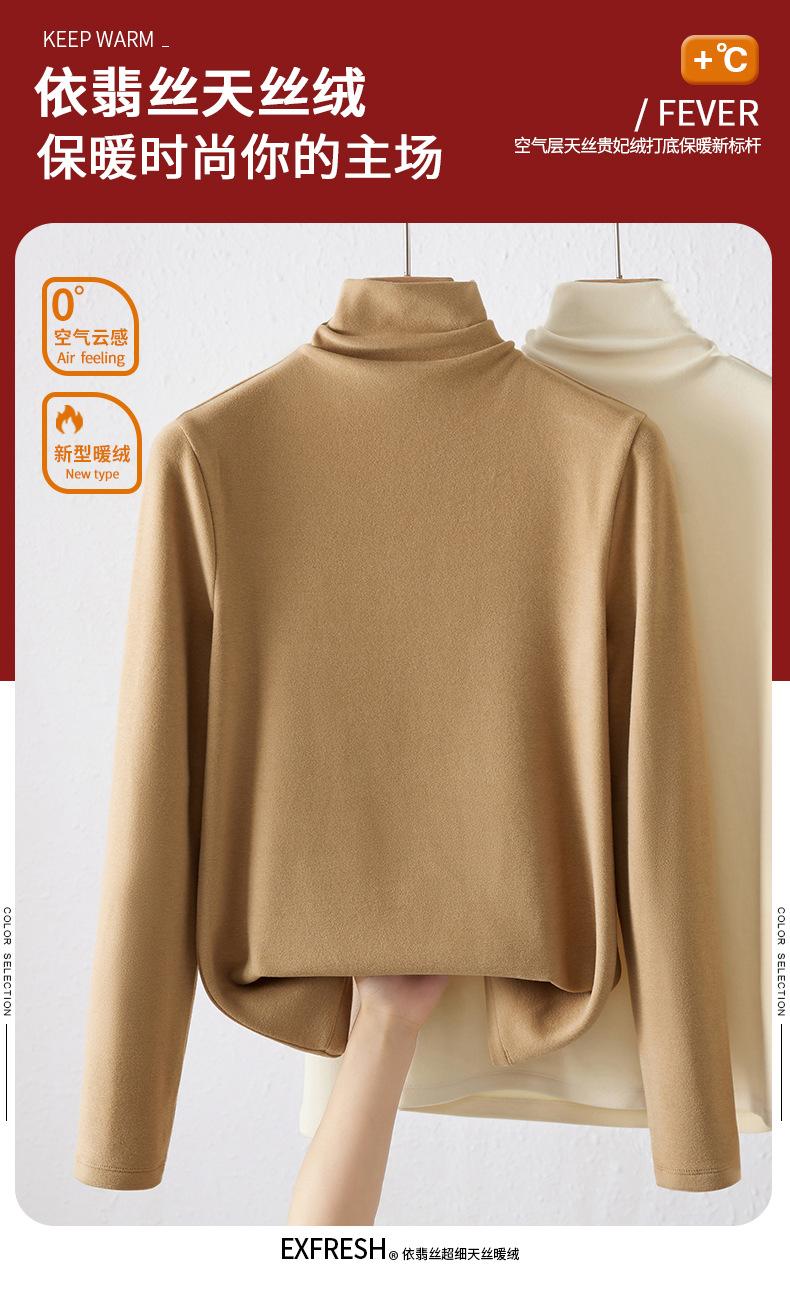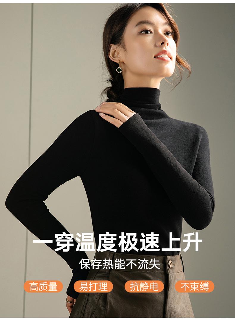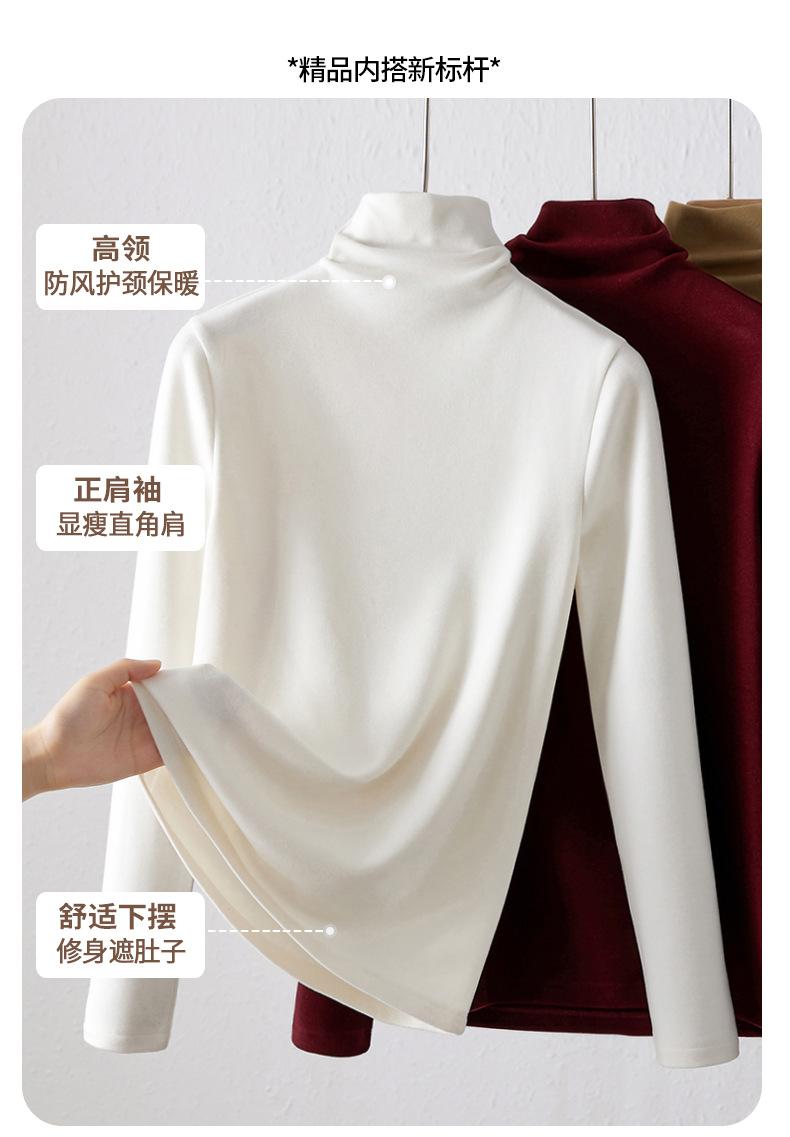 Capa Base de Forro Polar de Doble Cara de Cuello Alto para Mujer, Liquidación Nuevo Estilo para Otoño e Invierno, Forrado de Forro Polar y Engrosado, Cuello Apilado, Top Cálido, Capa Interior Cepillada