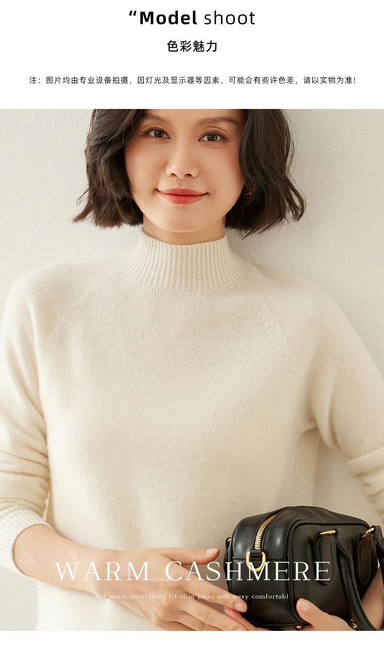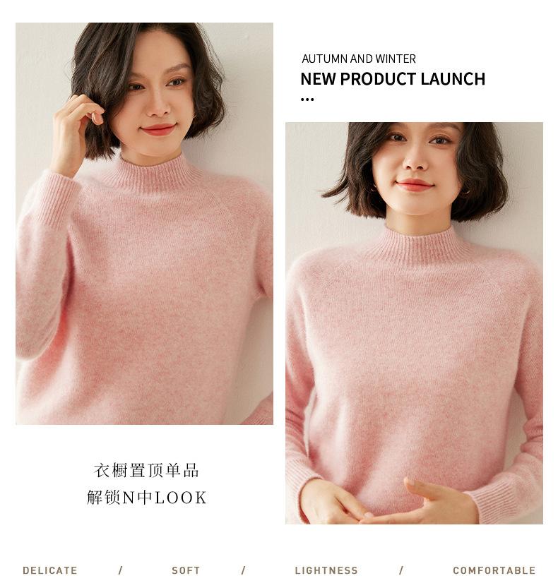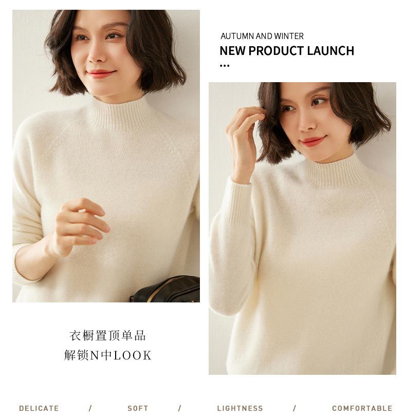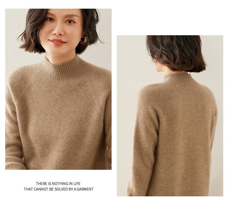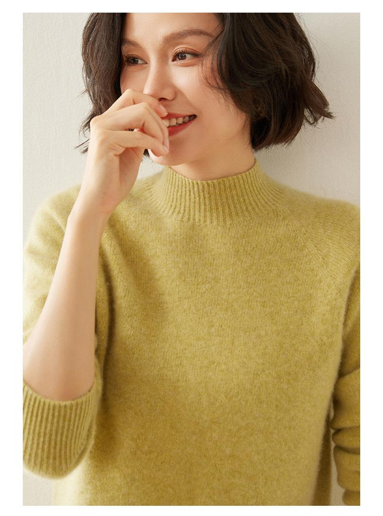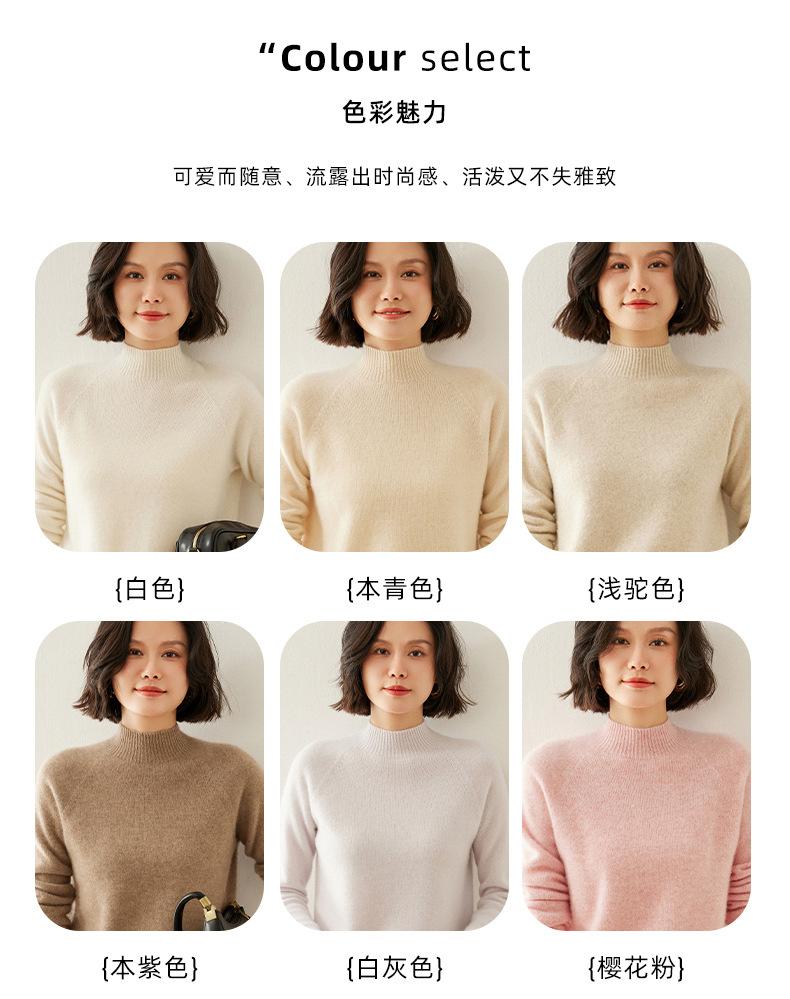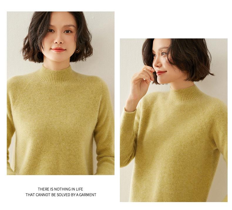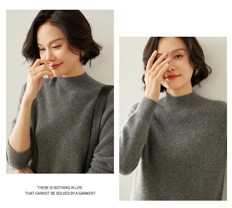 Nueva Ropa de Punto de Cuello Alto Medio para Otoño e Invierno para Mujer Cachemira Espesada Color Puro Simple Casual Ropa de Punto Ajustada y Versátil Elegante