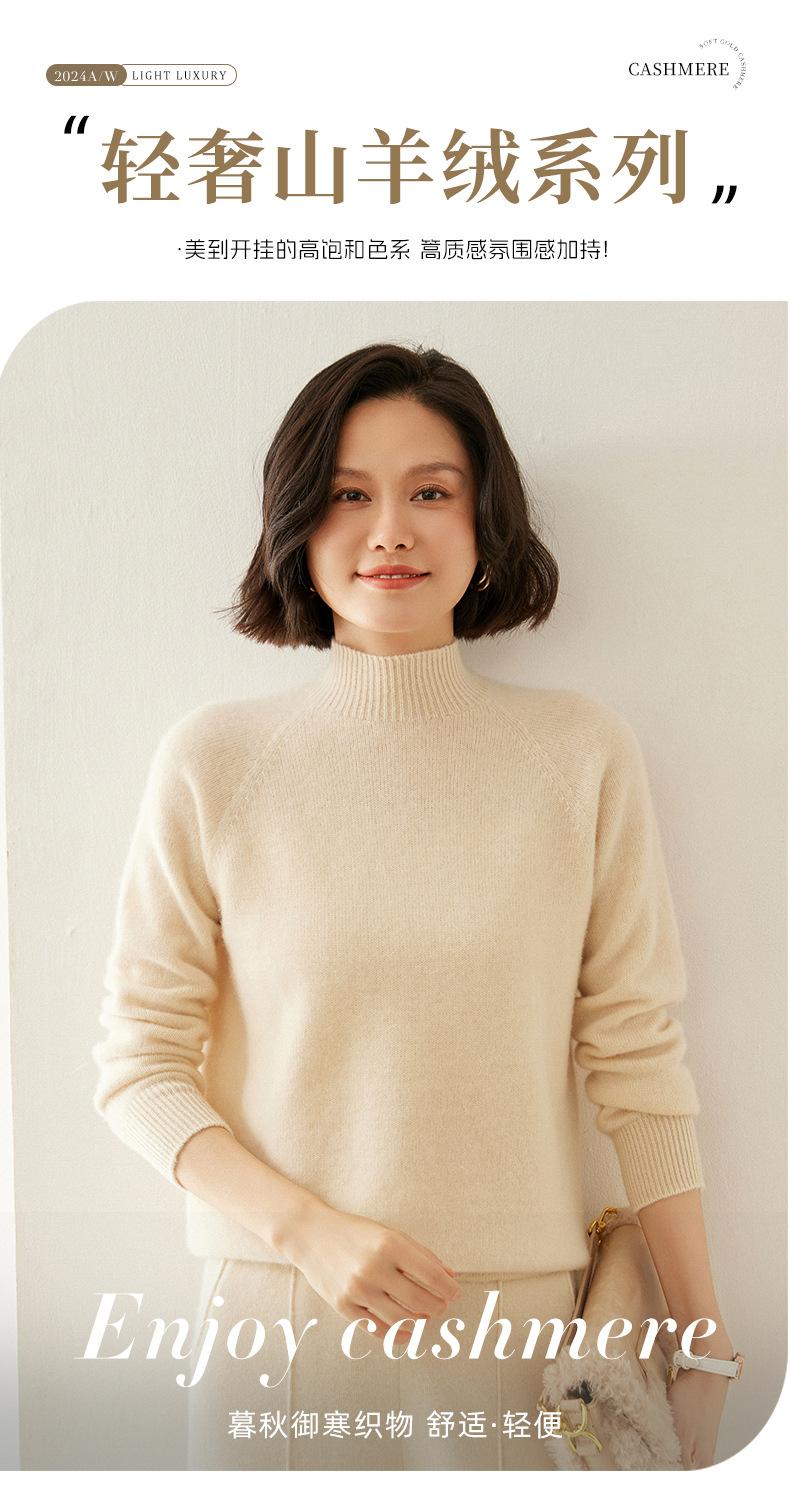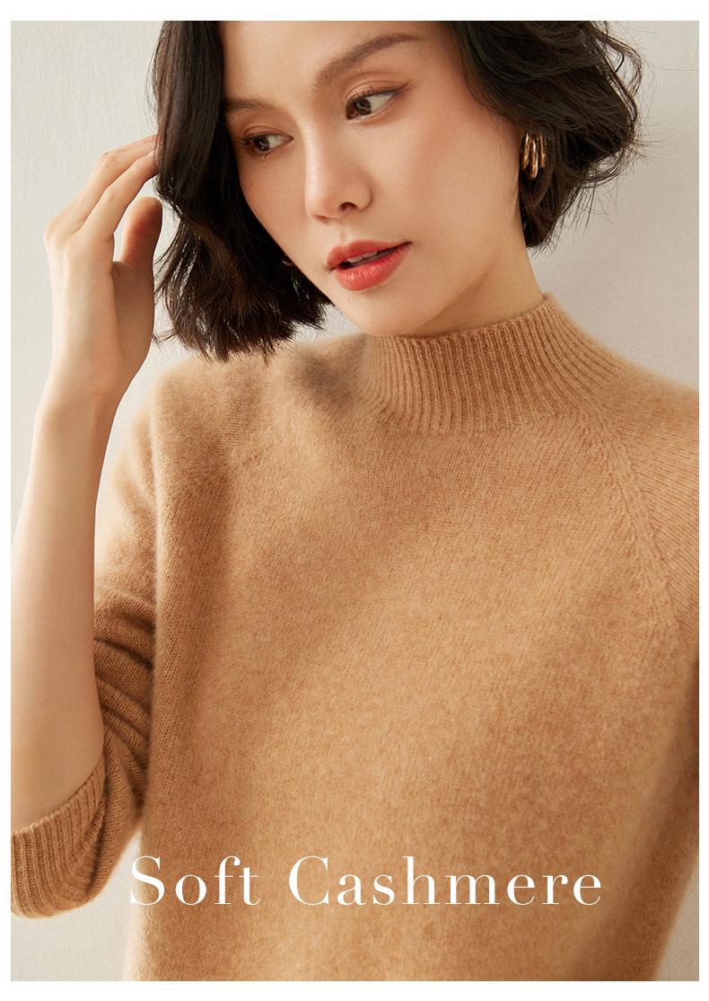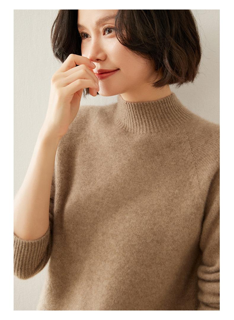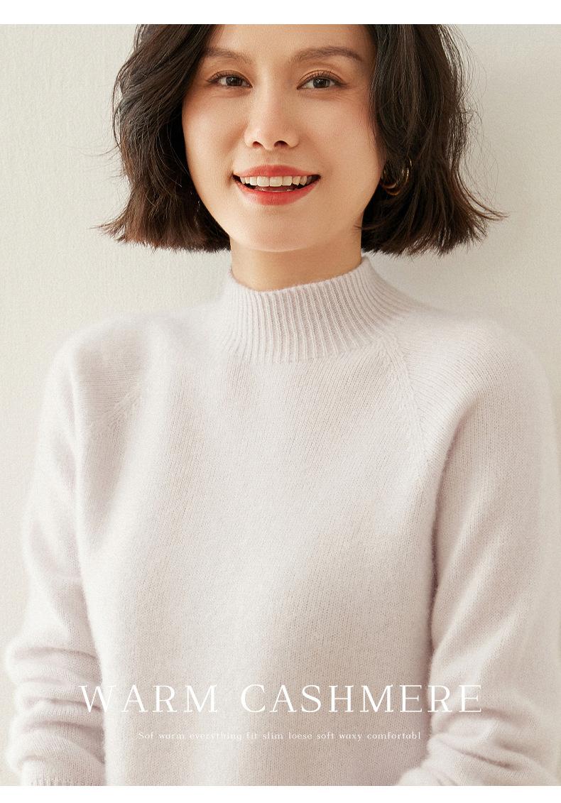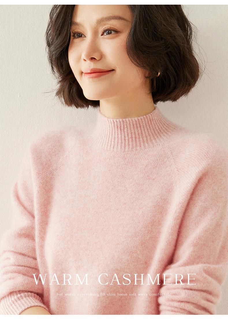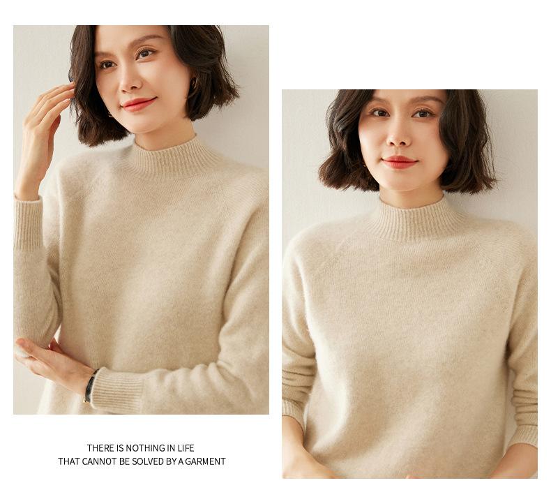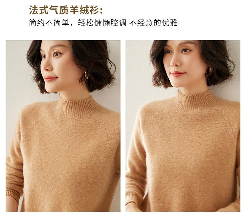 Nueva Ropa de Punto de Cuello Alto Medio para Otoño e Invierno para Mujer Cachemira Espesada Color Puro Simple Casual Ropa de Punto Ajustada y Versátil Elegante