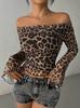 Ropa Europea y Americana Transfronteriza Verano Sexy Un Hombro Manga Larga Ombliguera Top Estampado Leopardo Sexy Camiseta Básica para Chica Caliente