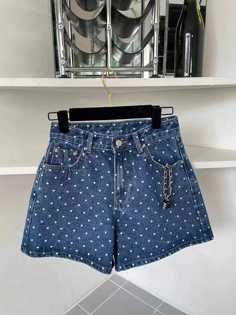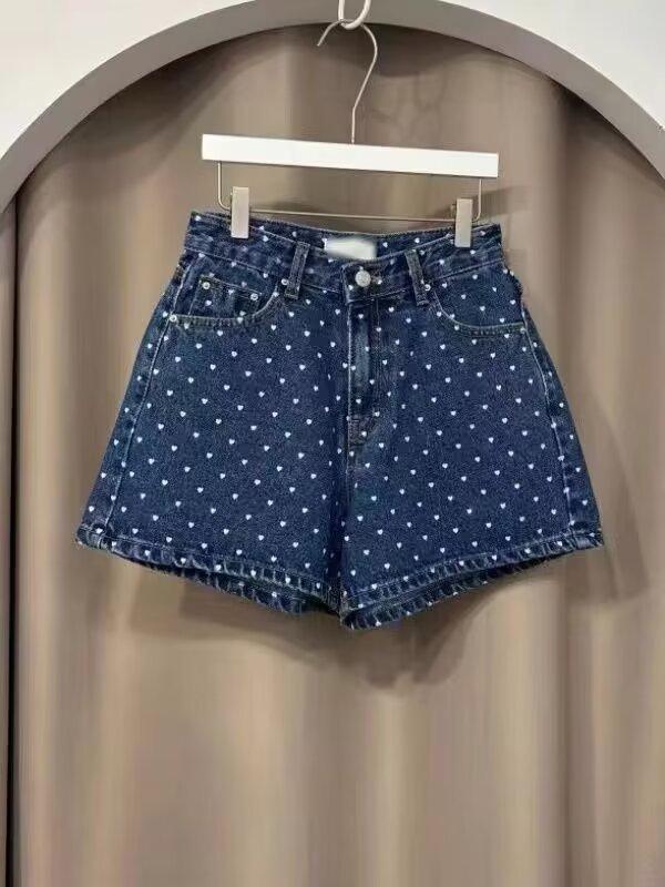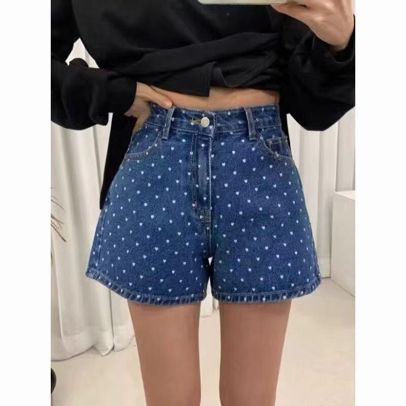 2024 Nuevo Estilo Occidental Onda Punto Shorts de Mezclilla para Mujer Verano Ropa Exterior Cintura Alta Forma A Pierna Ancha Abertura Pantalones Coreanos ins