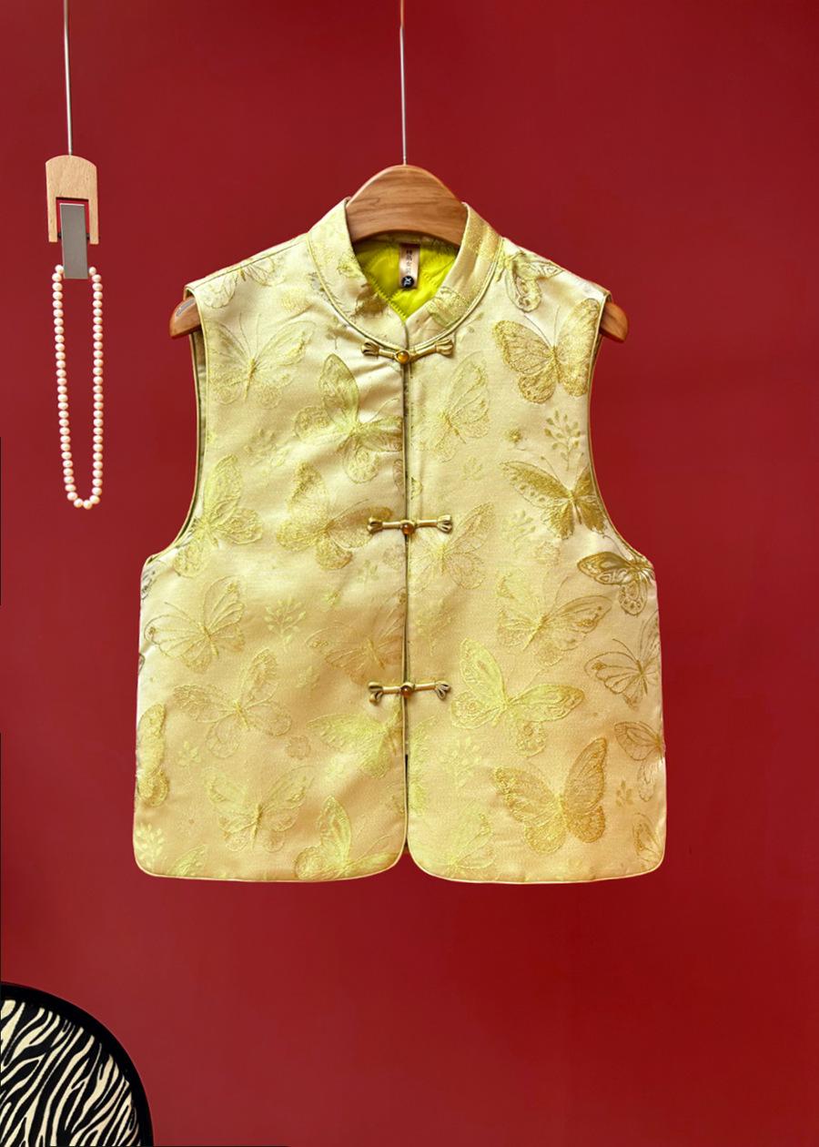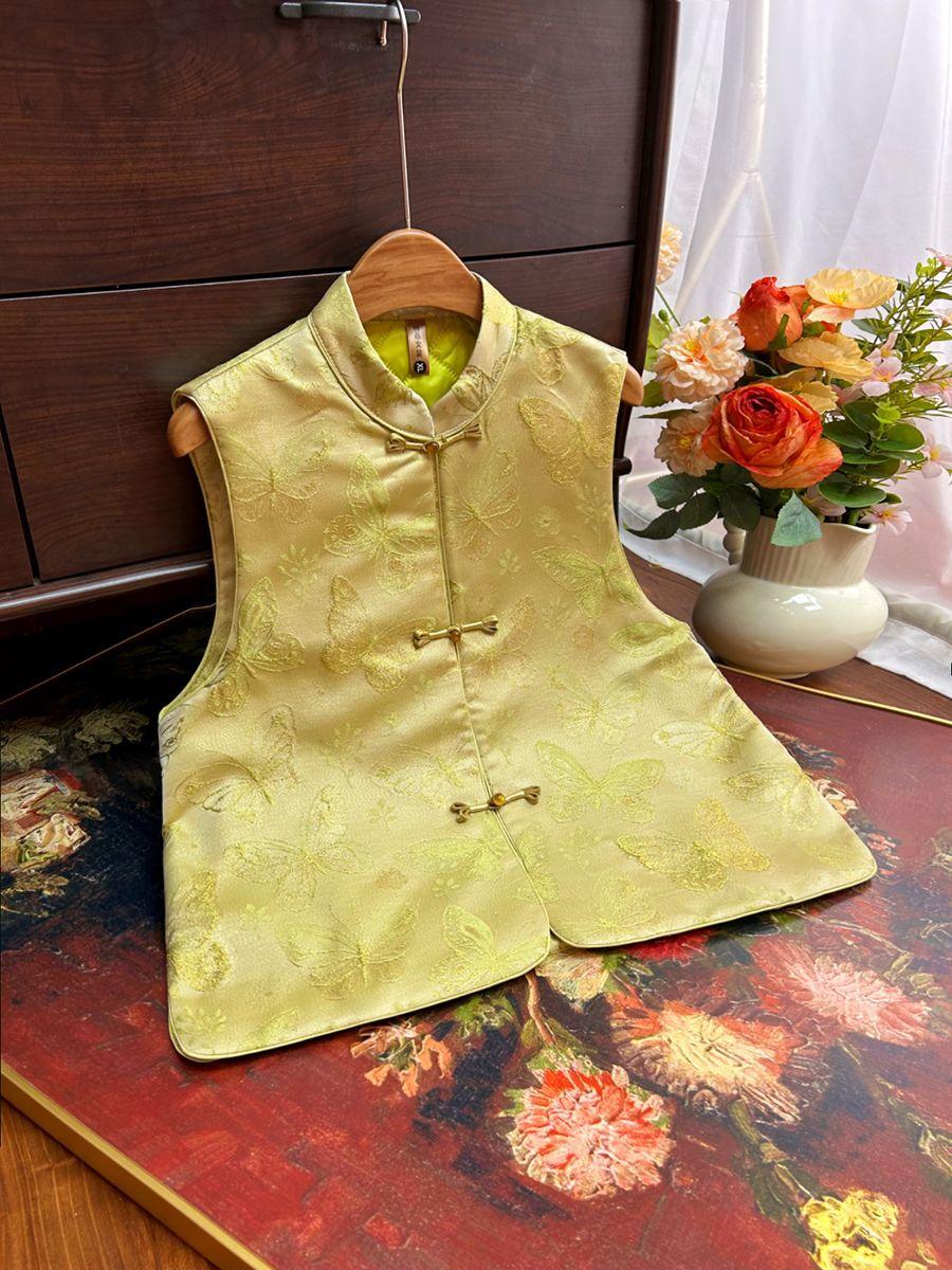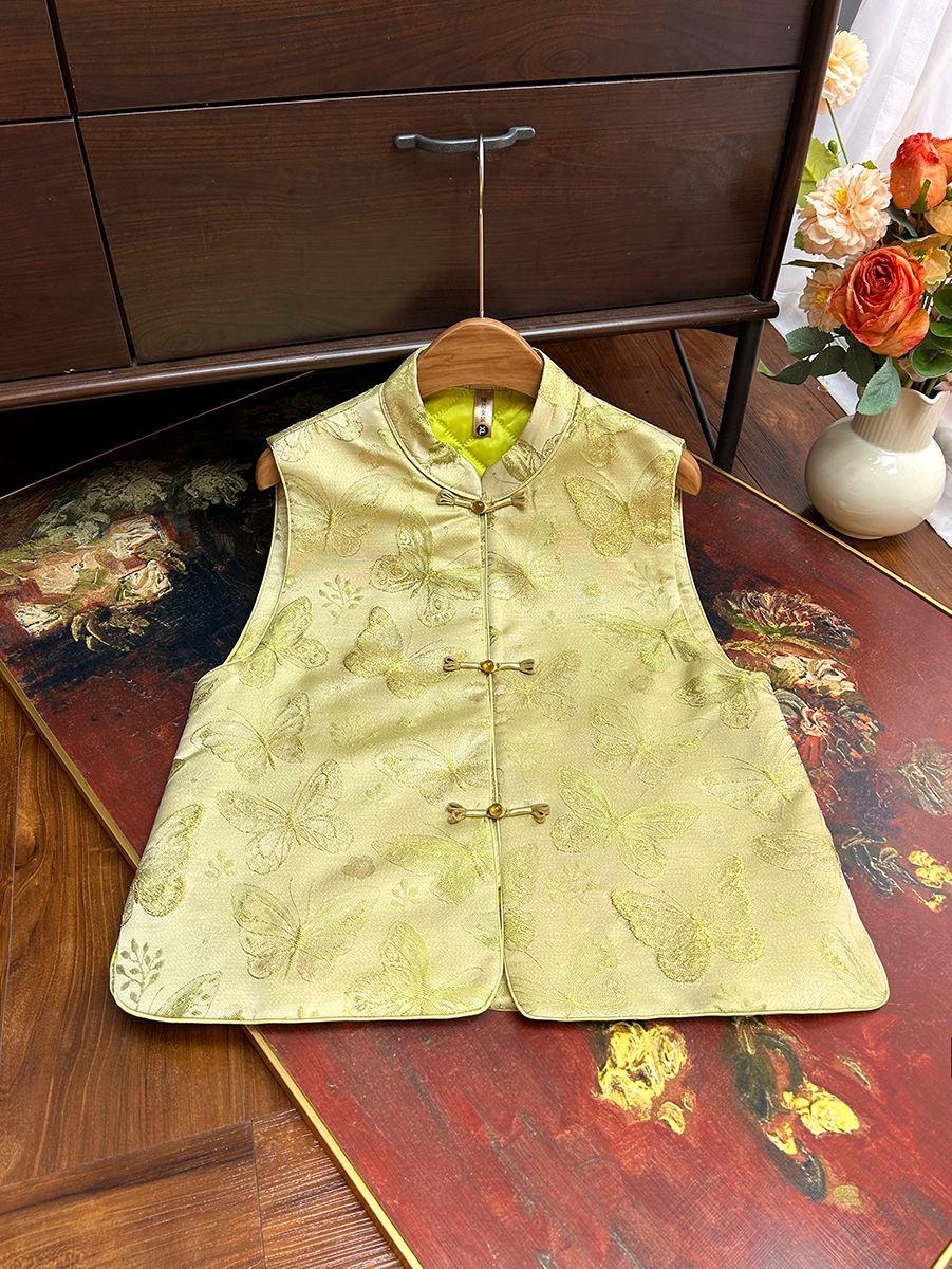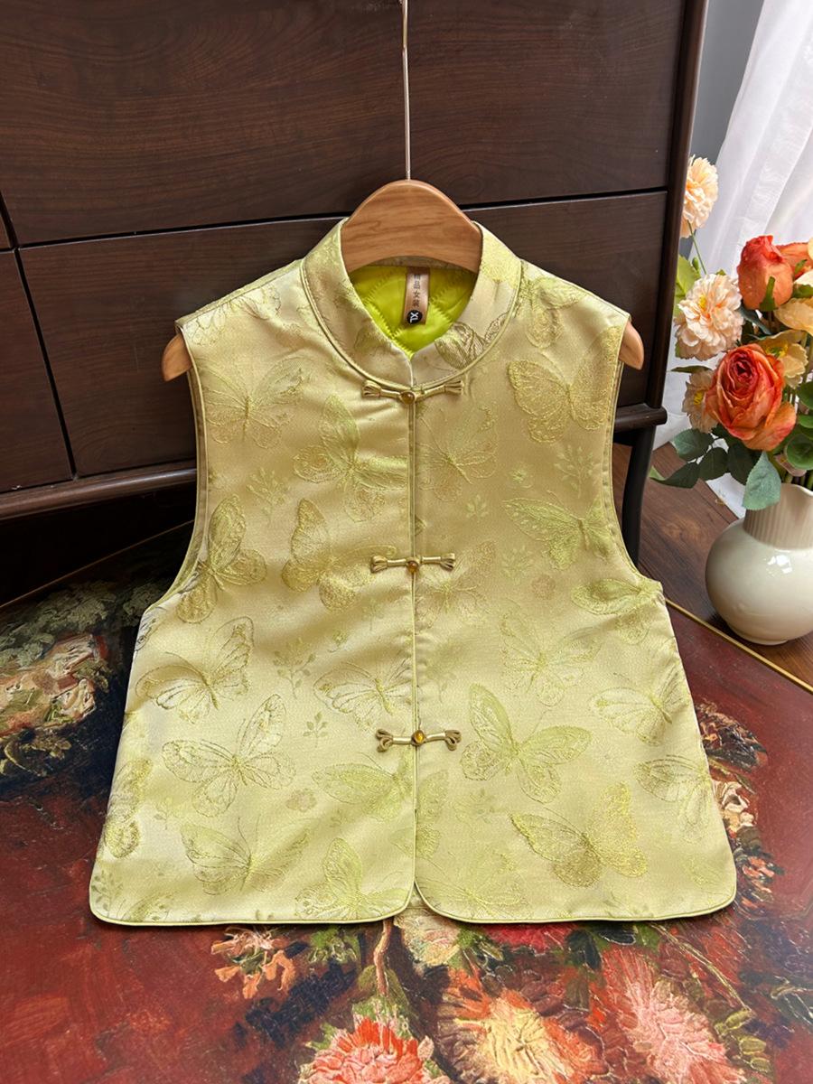 Chaleco de algodón jacquard para mujer, nuevo estilo chino, con botones y hombros descubiertos, combina con todo, invierno de 2024