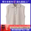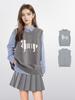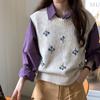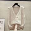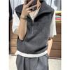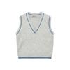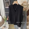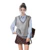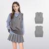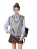 Chaleco de punto sin mangas con cuello en V gris para mujer, estilo universitario, para primavera, otoño e invierno, tipo suéter, camisa apilada
