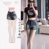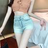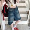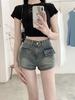Pantalones vaqueros desgastados vintage para mujer, estilo americano de verano, pantalones cortos ajustados de pierna ancha, pantalones rectos de cintura alta y finos
