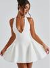 Vestido Sexy Europeo y Americano con Cuello en V Profundo 2024 Verano y Otoño Nuevo Color Sólido Elegante Sin Mangas Ajustado a la Cintura