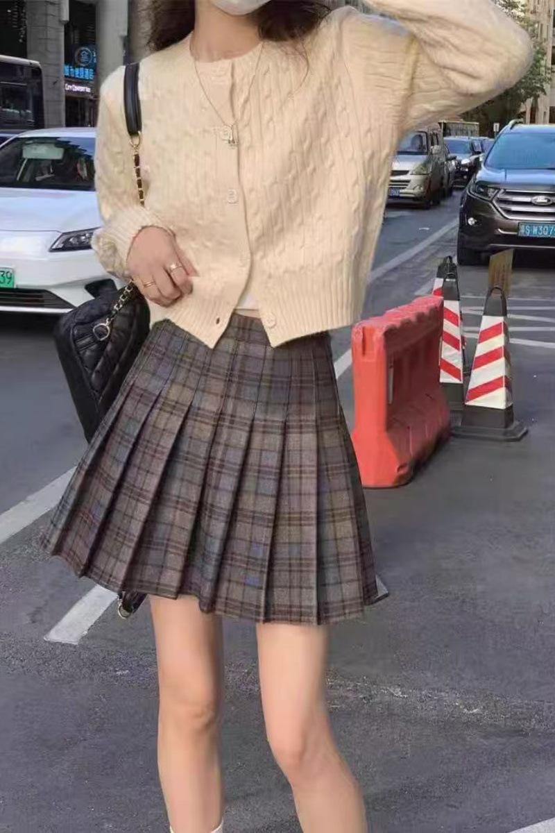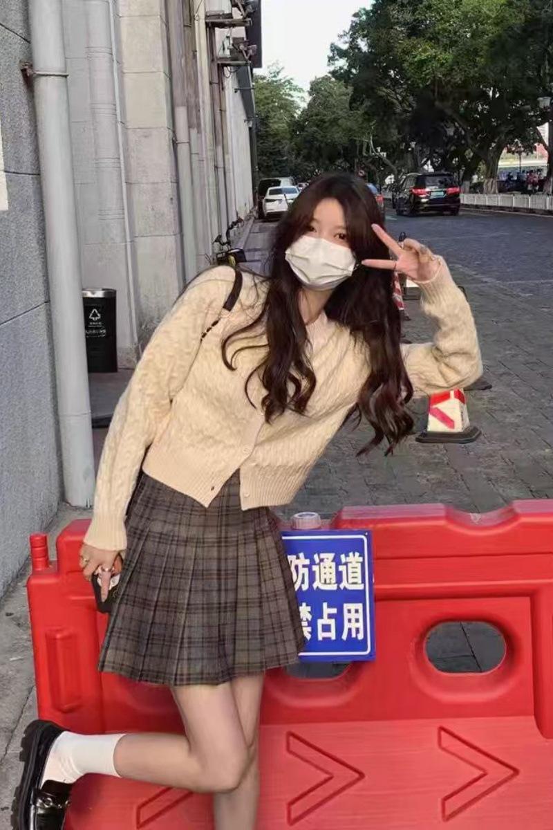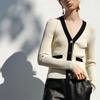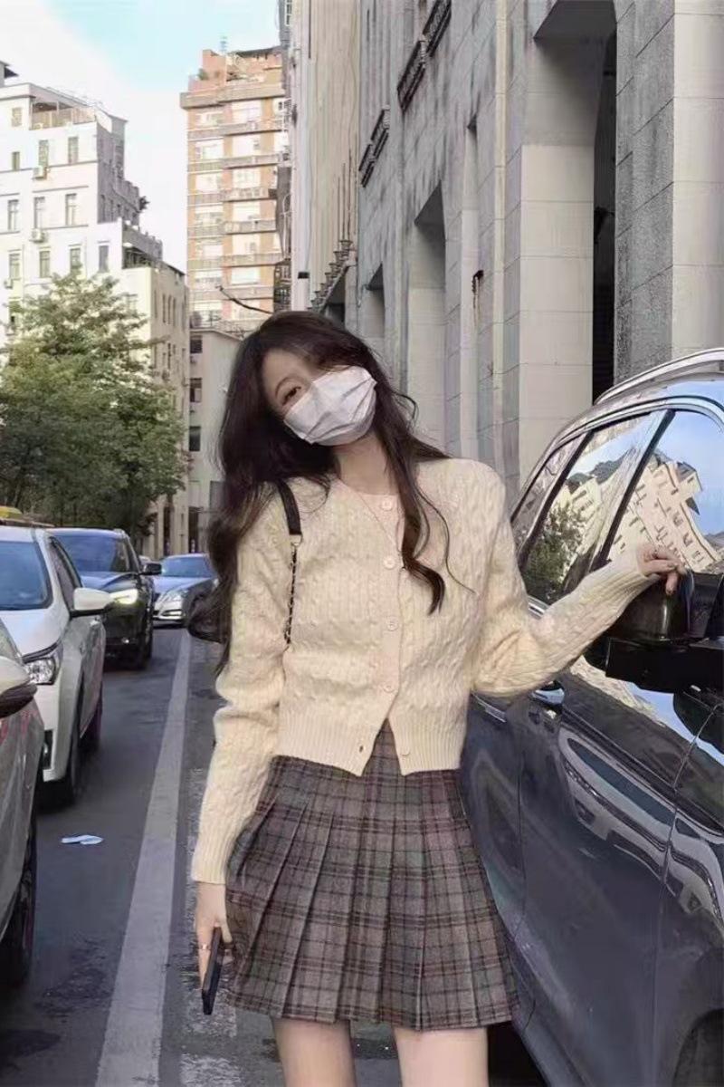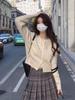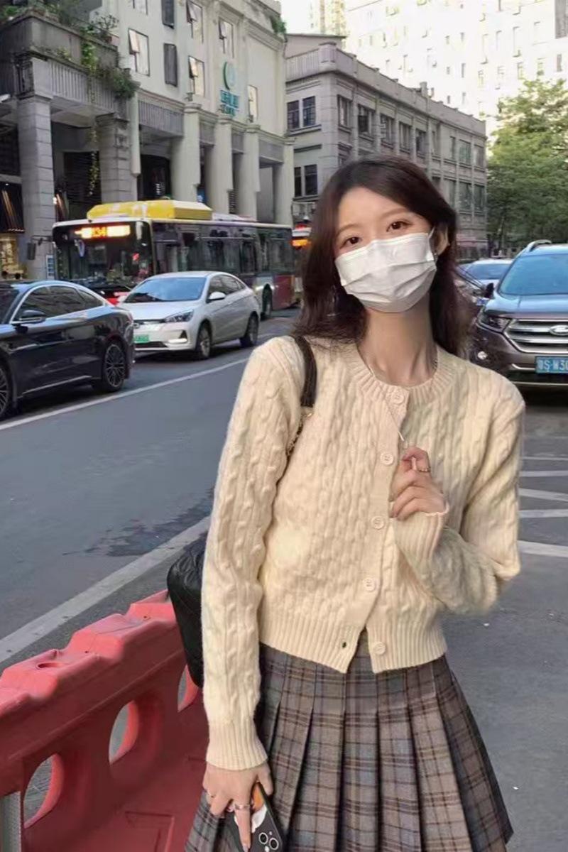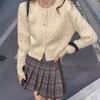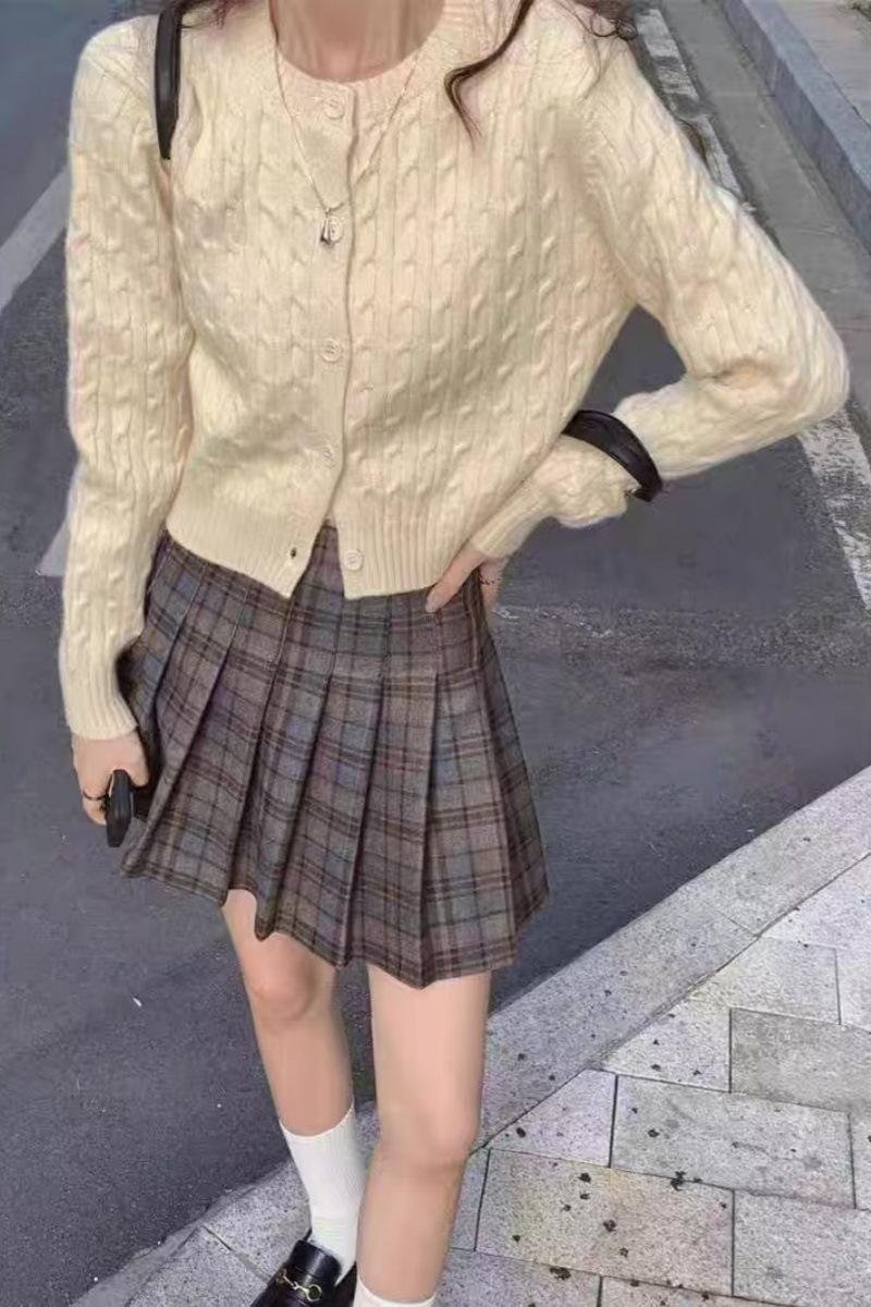 Cárdigan de Cachemira Trenzado Retro Francés para Mujer Cuello Redondo Elegante Ajustado Abrigo Suéter Corto Camisa Base de Lana Tejida