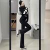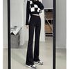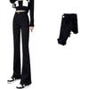 Black slightly flared velvet trousers, Black micro-flared velvet nine-point pants, Black micro-flared trousers...