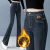 Pantalones vaqueros Micro La gruesos con forro polar negro para mujer, otoño e invierno, nuevos pantalones acampanados elásticos de cintura alta con diseño de herradura