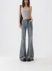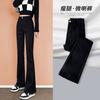 Jeans acampanados de terciopelo negro grueso para mujer 2024 otoño e invierno nuevo estilo herradura cintura alta elásticos ajustados acampanados