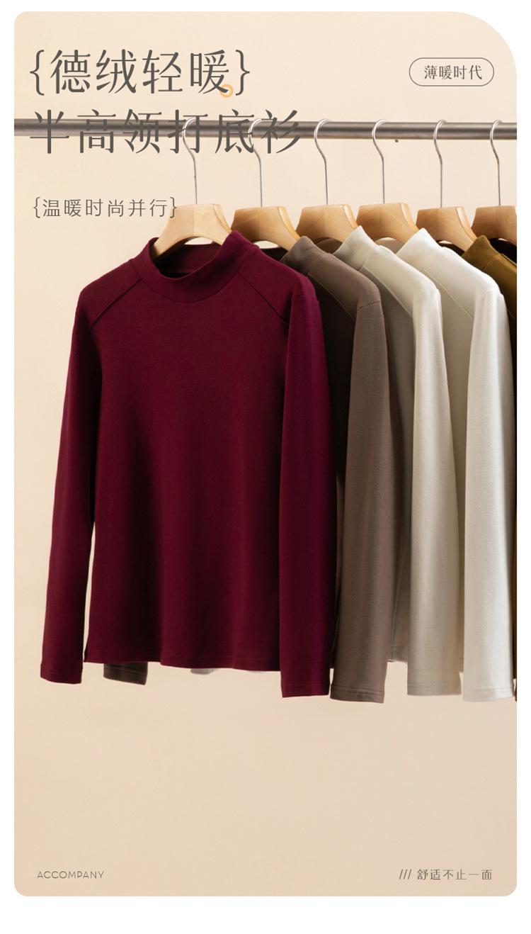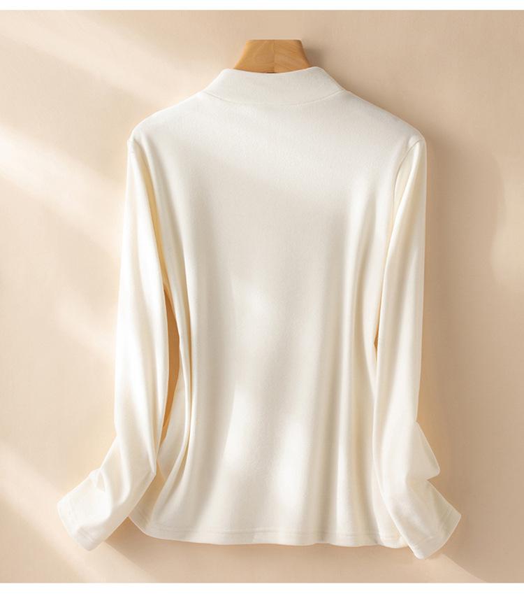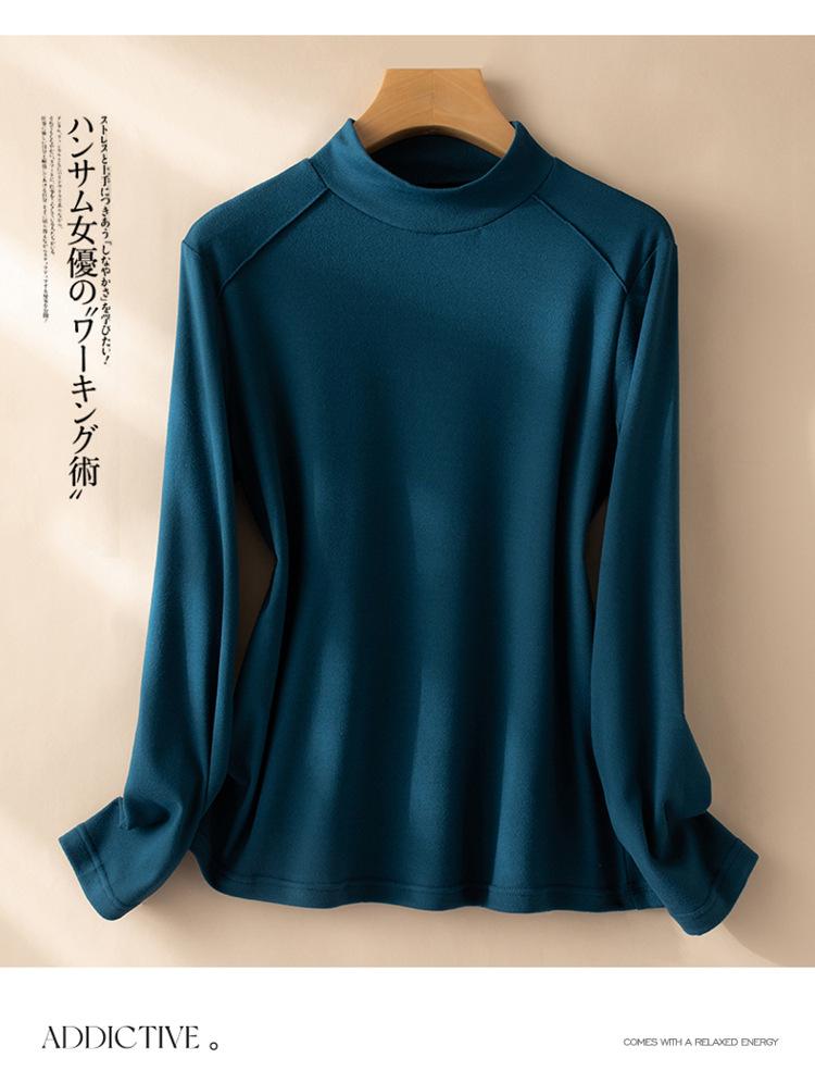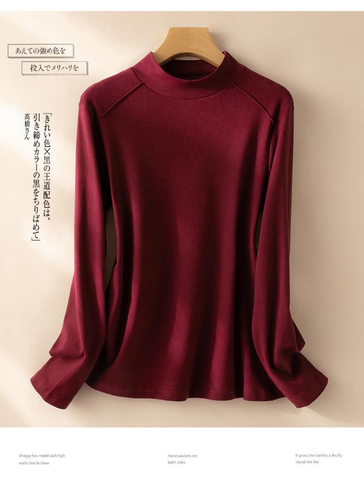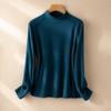 Camiseta Básica de Terciopelo Alemán Transfronteriza de Cuello Alto para Mujer Otoño e Invierno Nuevo Diseño con Línea de Hombro de Estilo Occidental y Camiseta de Manga Larga de Alta Elasticidad