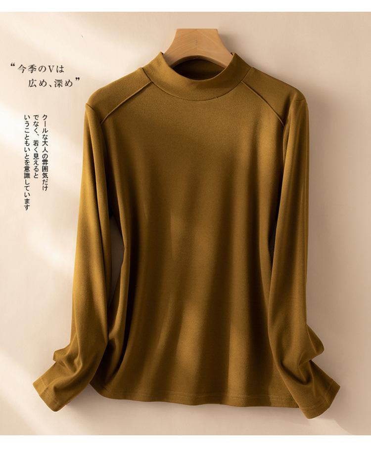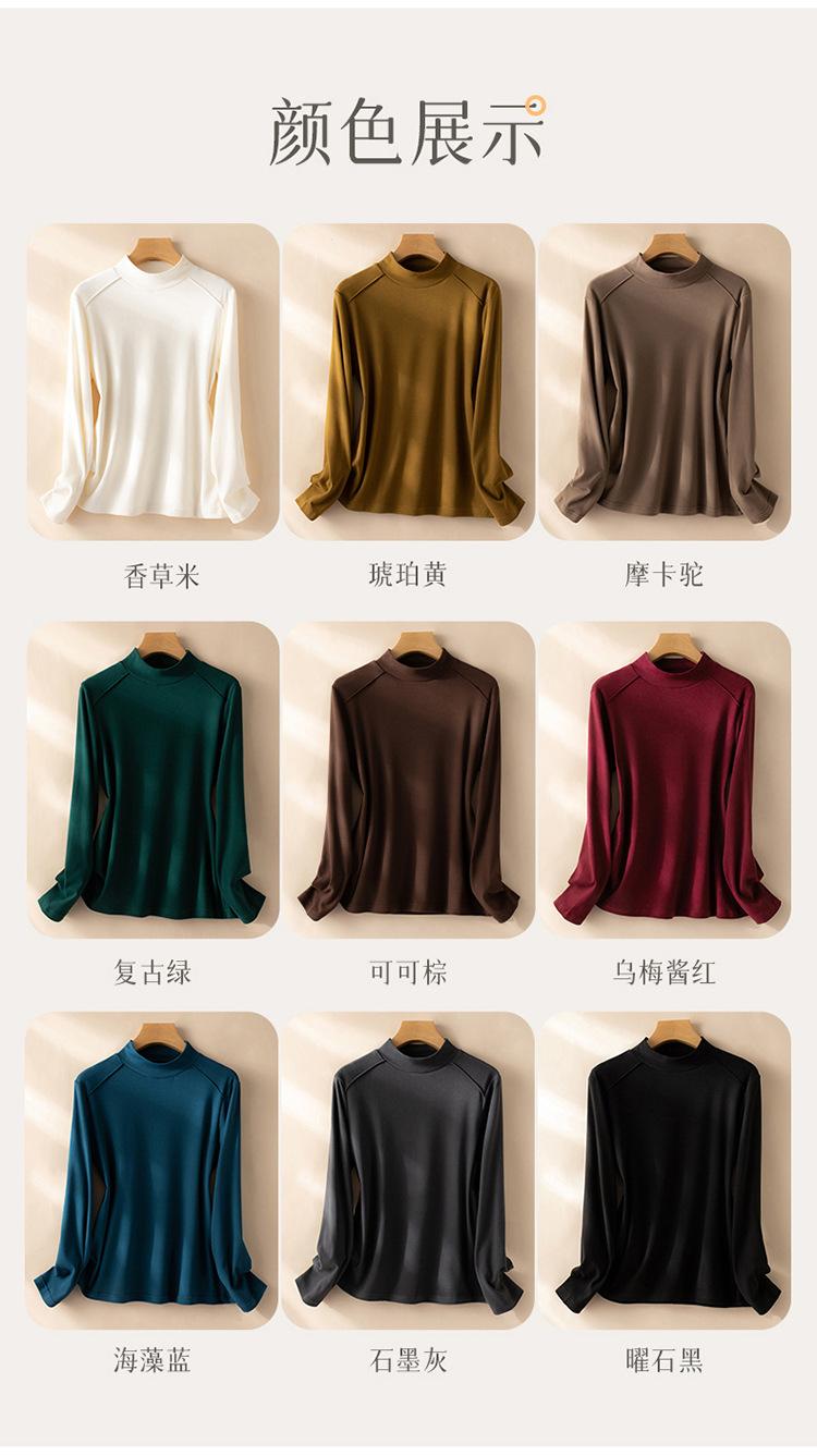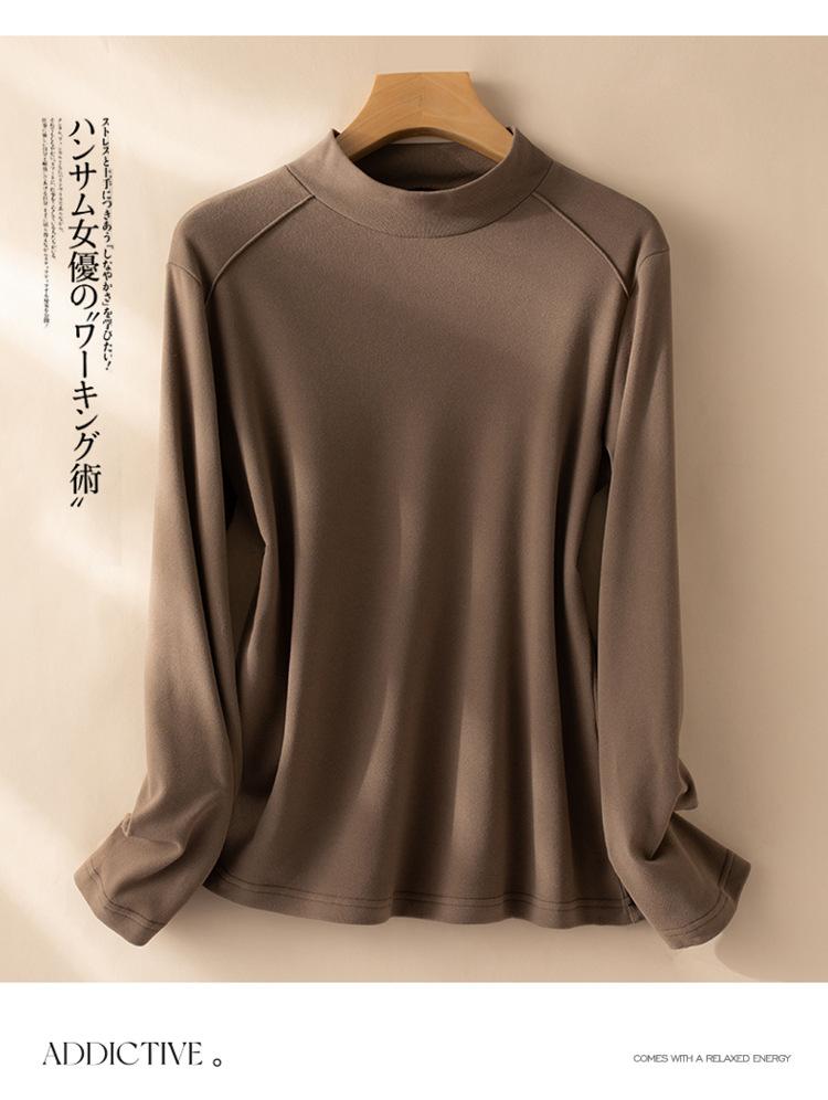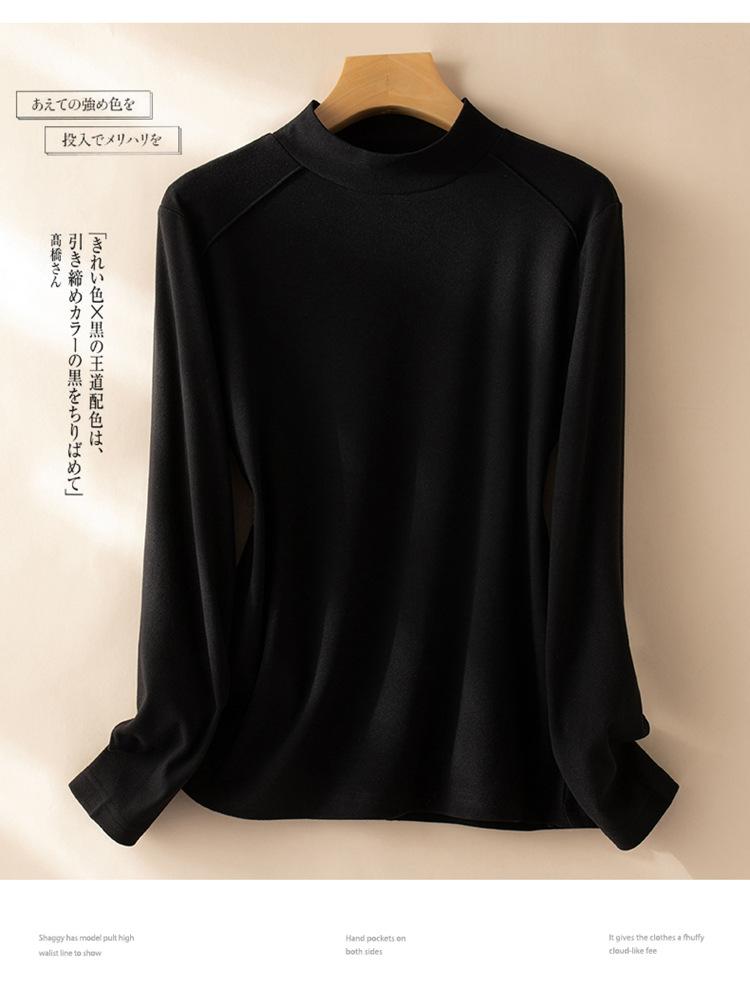 Camiseta Básica de Terciopelo Alemán Transfronteriza de Cuello Alto para Mujer Otoño e Invierno Nuevo Diseño con Línea de Hombro de Estilo Occidental y Camiseta de Manga Larga de Alta Elasticidad