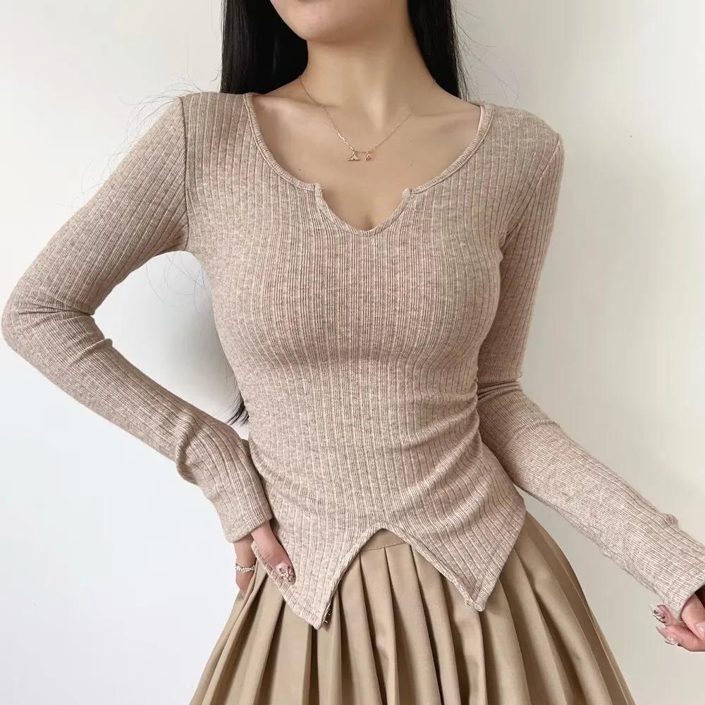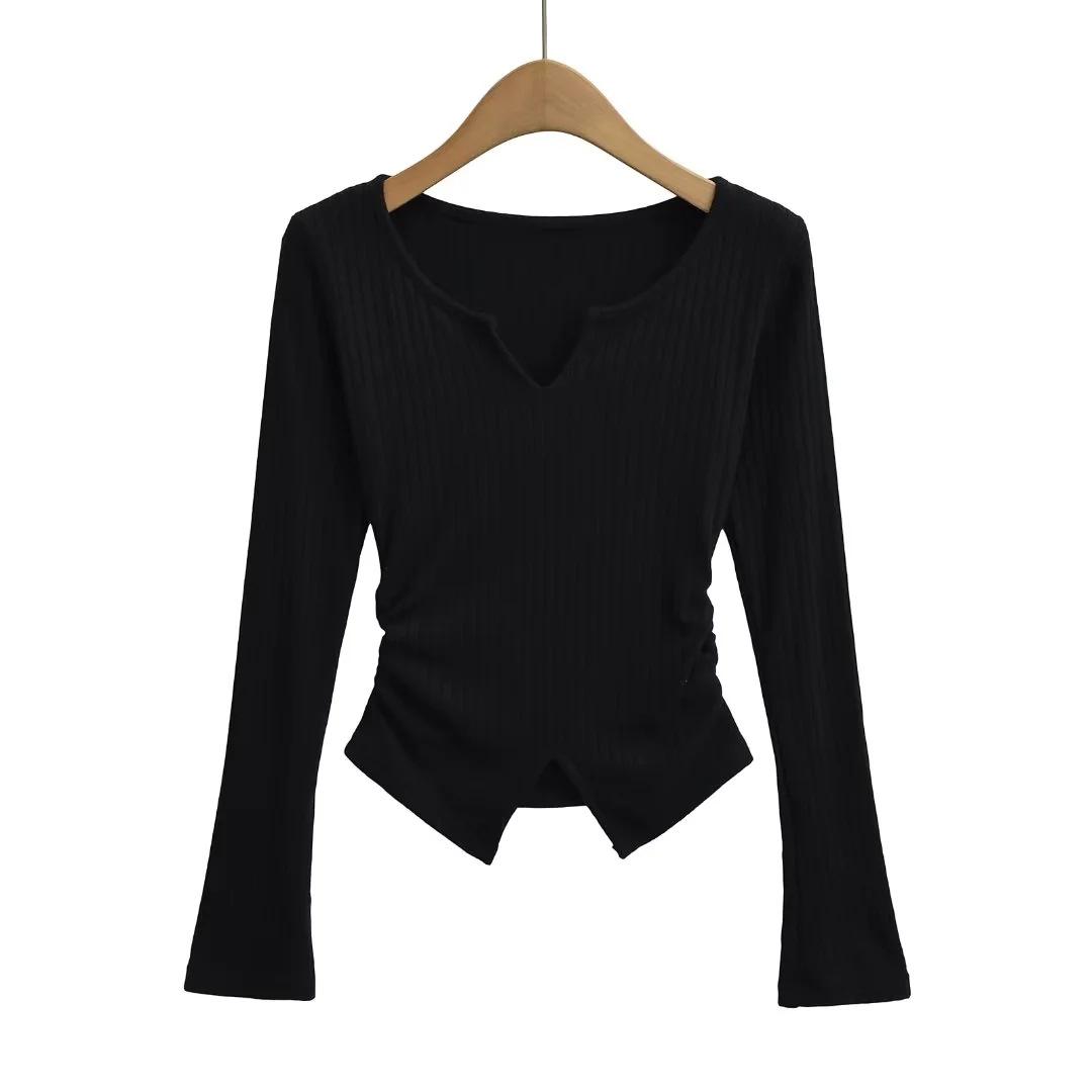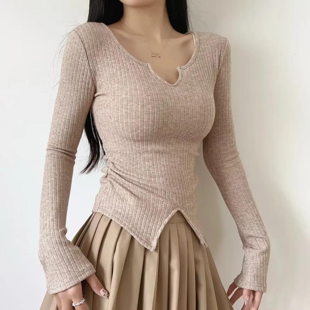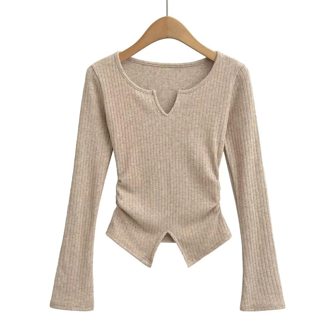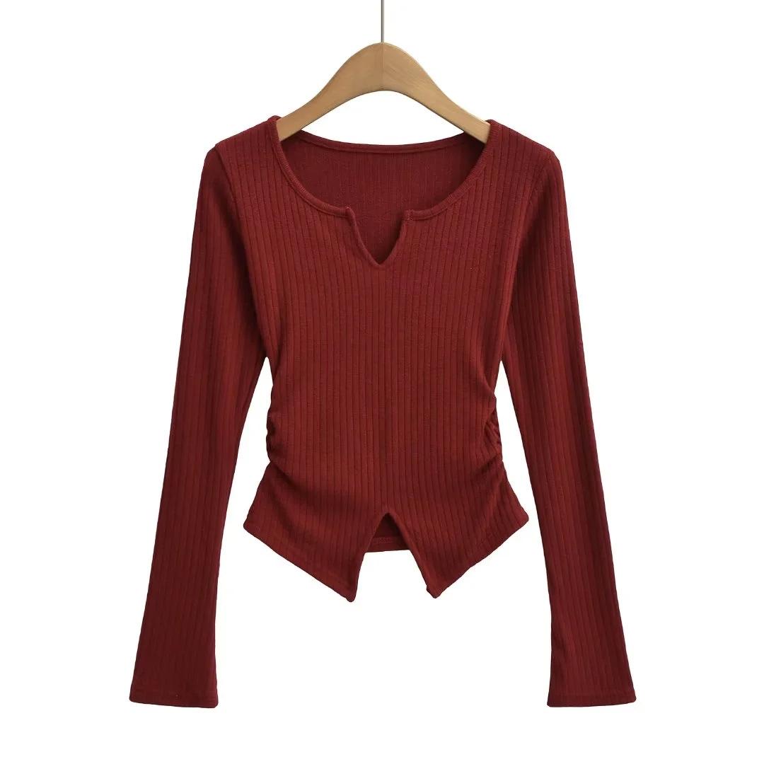 Suéter de punto con cuello en V y diseño de estilo americano para mujer, camiseta de manga larga ajustada con abertura y corte ajustado, estilo Spice Girls, otoño de 2024