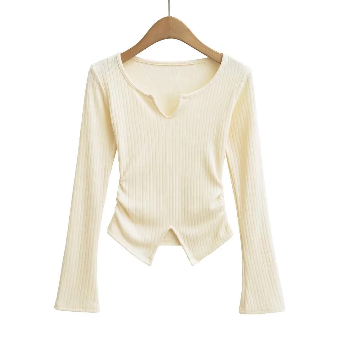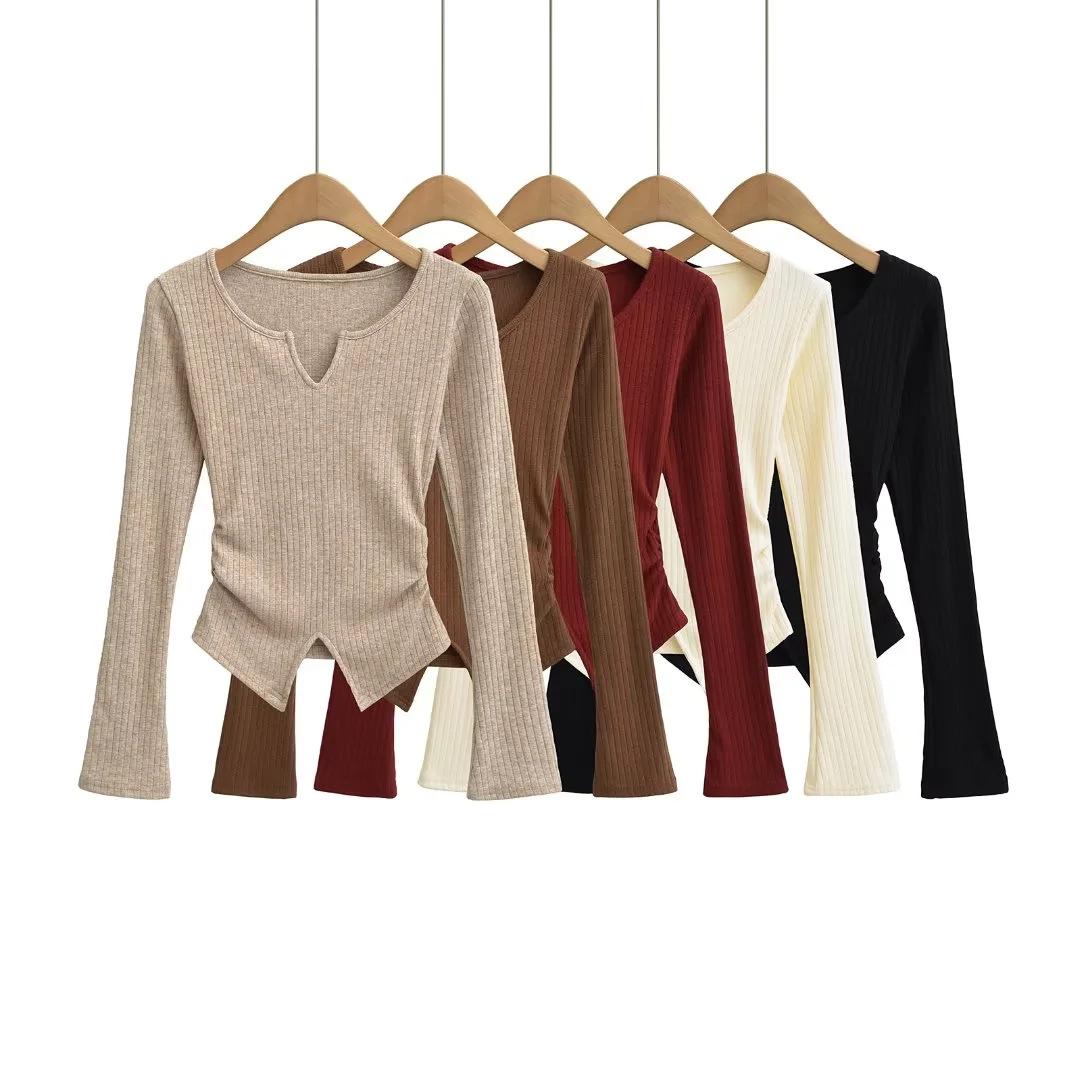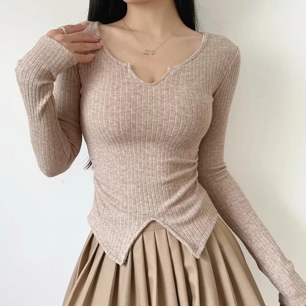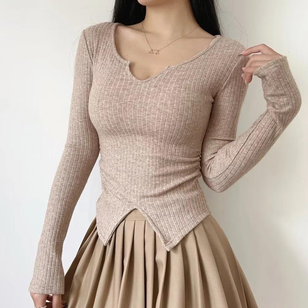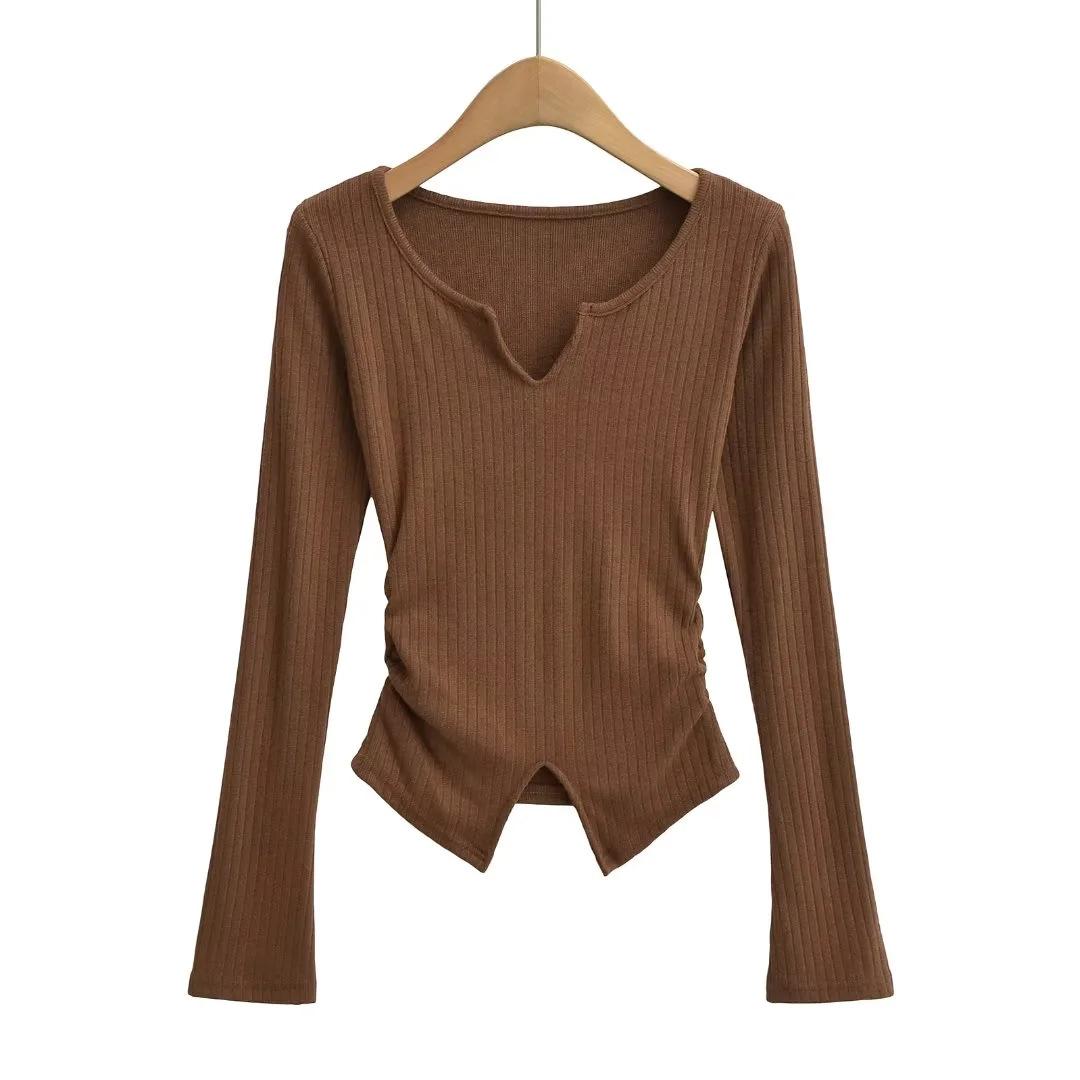Suéter de punto con cuello en V y diseño de estilo americano para mujer, camiseta de manga larga ajustada con abertura y corte ajustado, estilo Spice Girls, otoño de 2024