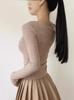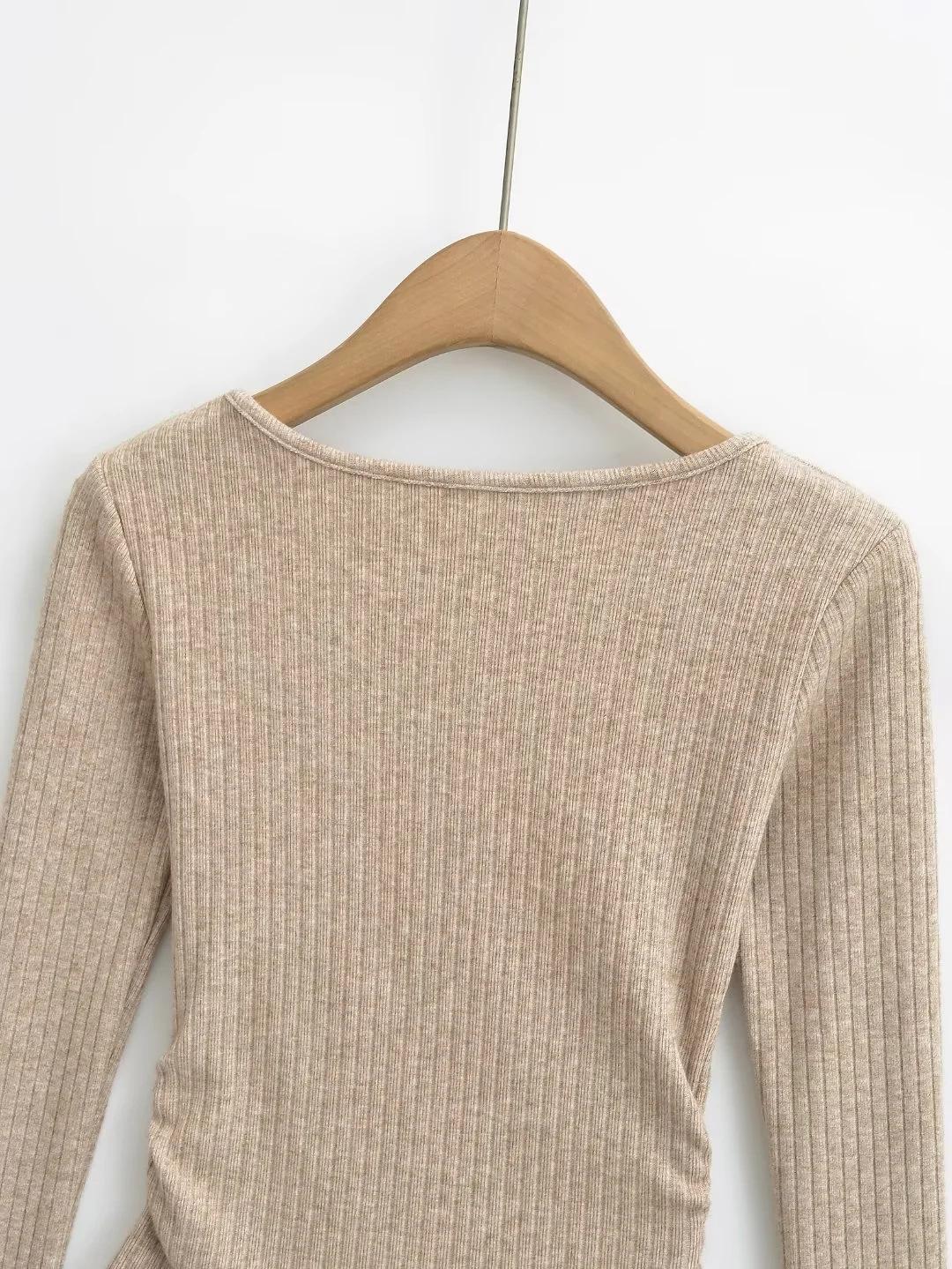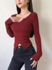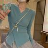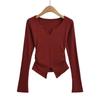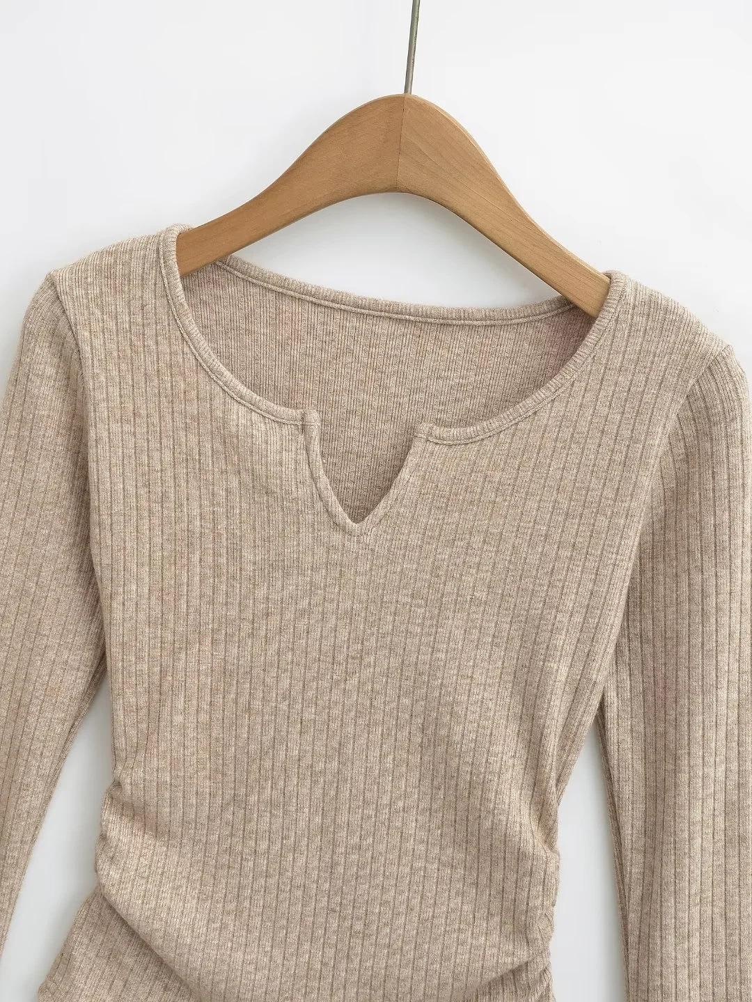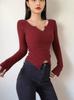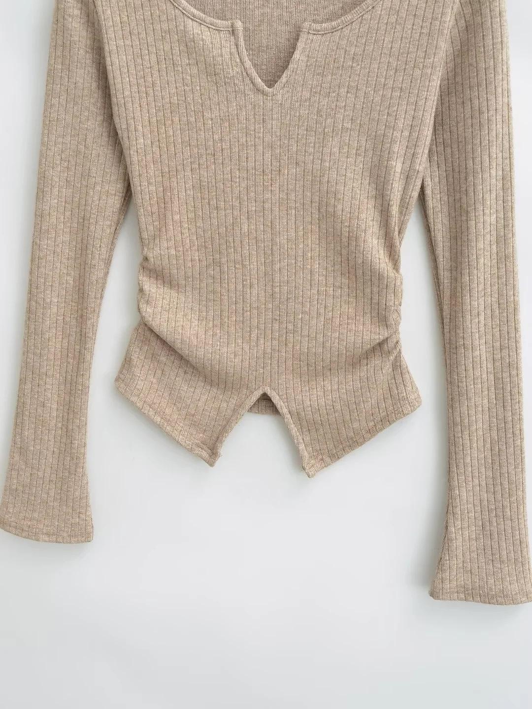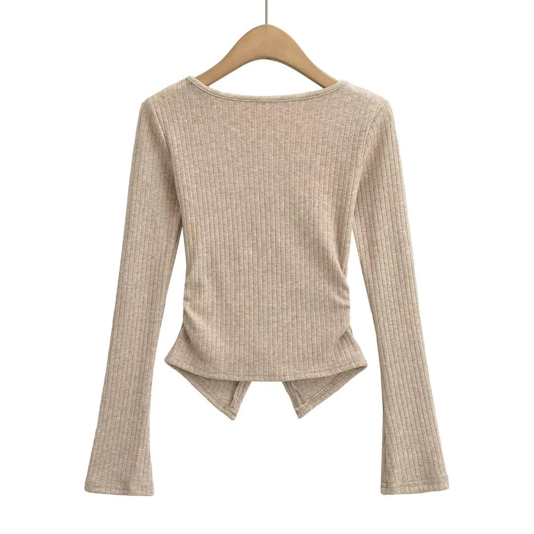 Suéter de punto con cuello en V y diseño de estilo americano para mujer, camiseta de manga larga ajustada con abertura y corte ajustado, estilo Spice Girls, otoño de 2024