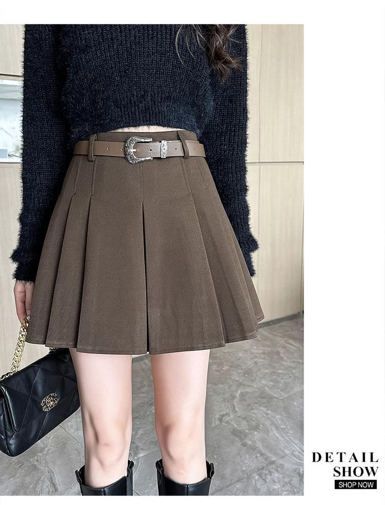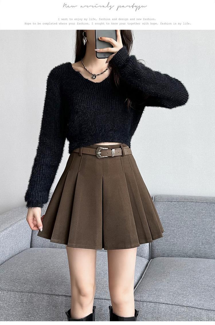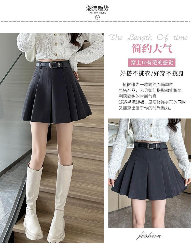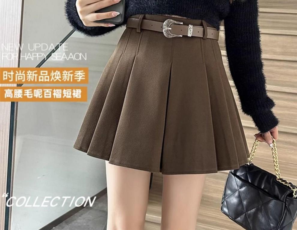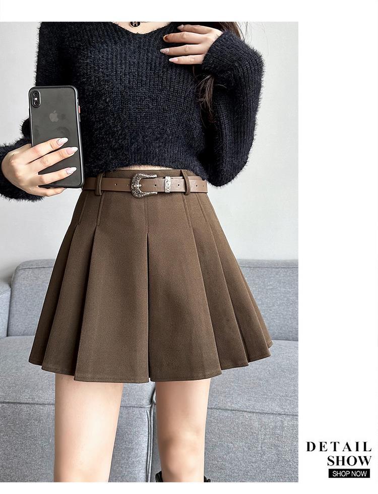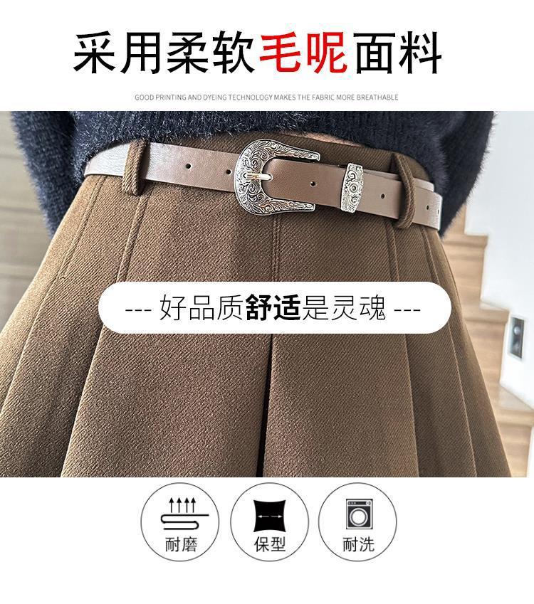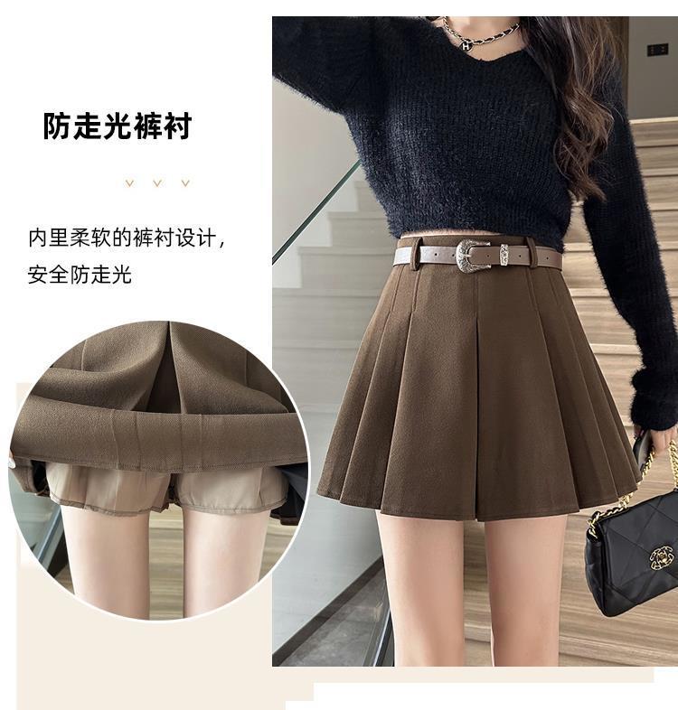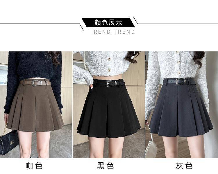 Falda de Lana para Mujer Otoño e Invierno Falda Línea A Falda Plisada Nueva Falda Corta de Cintura Alta Falda Paraguas Falda de Invierno
