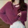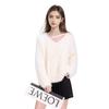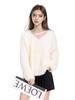 Suéter de terciopelo de visón con cuello en V blanco para mujer, otoño e invierno, forro polar, grueso, con pelo Haima, holgado y perezoso.