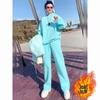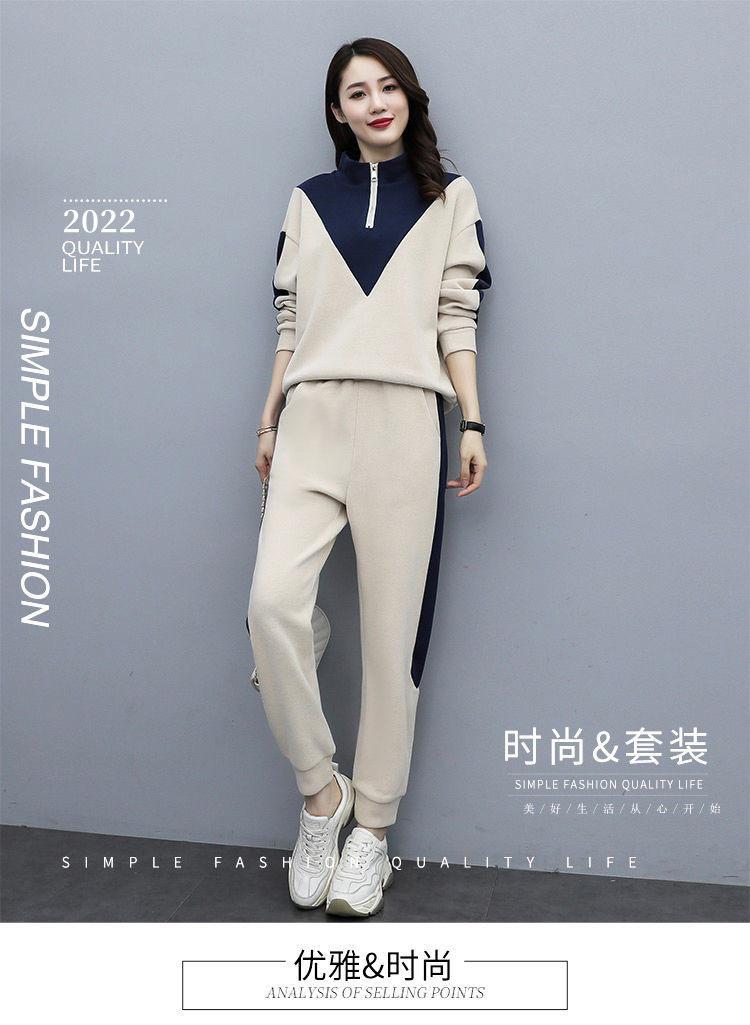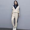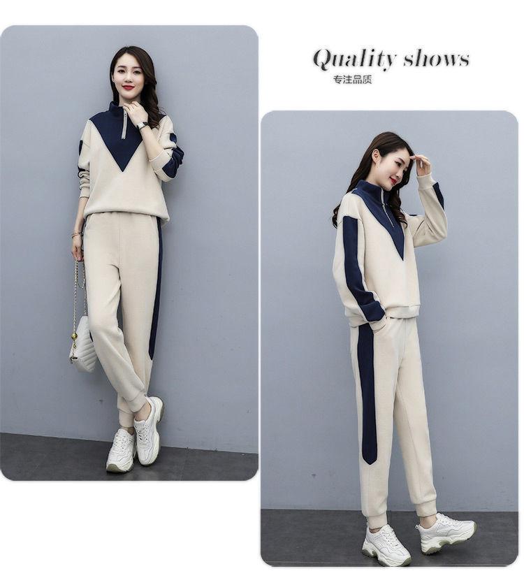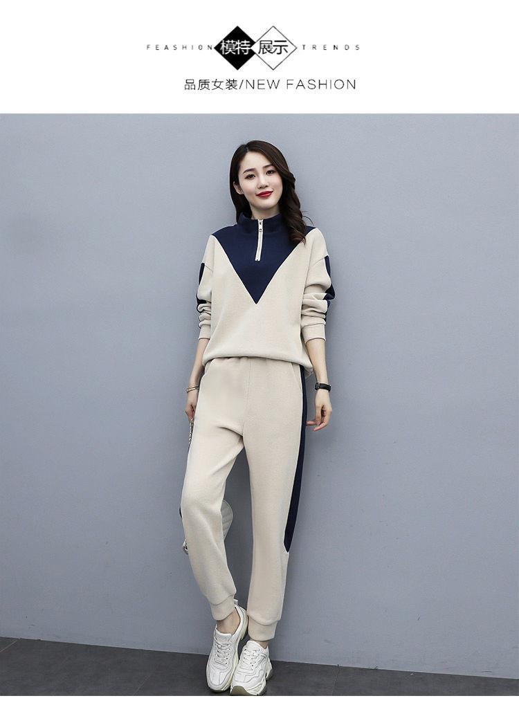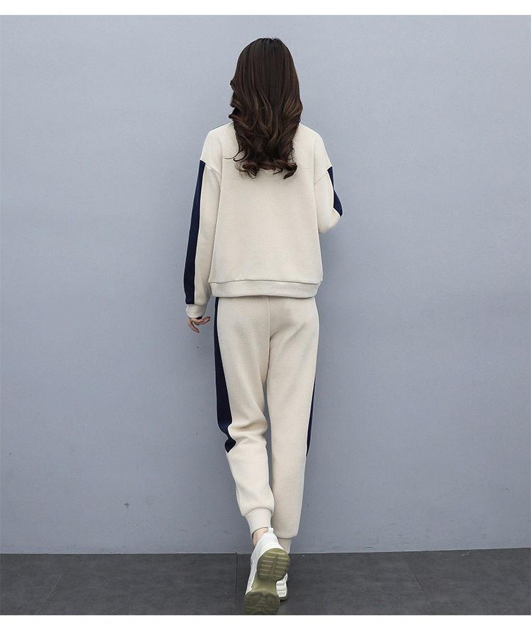 Conjunto de suéter blanco con forro polar para mujer, otoño, nuevo, estilo occidental, para chica gordita, ropa deportiva informal para mujer