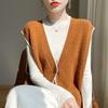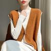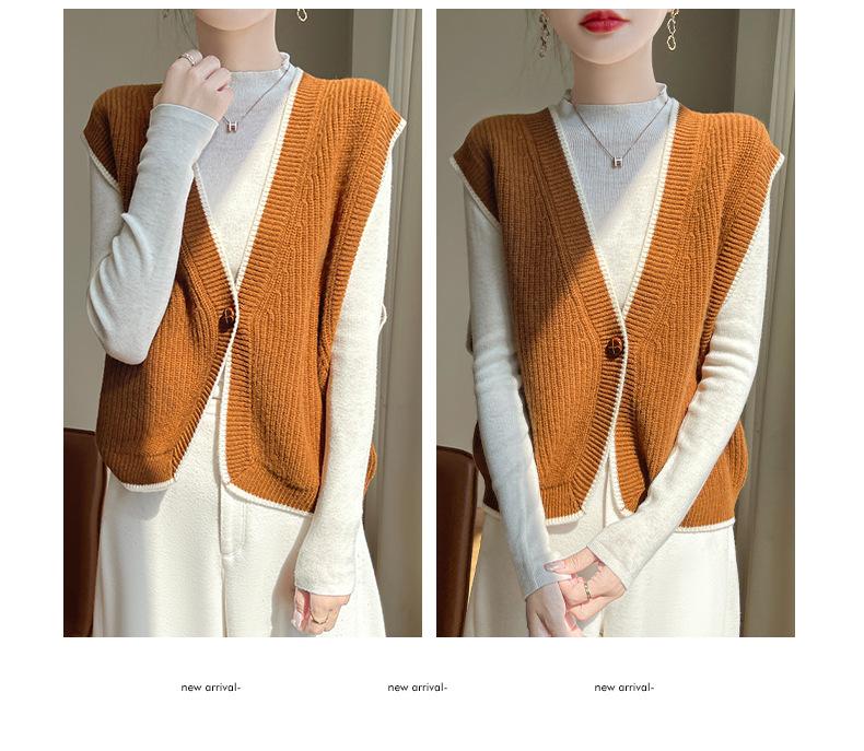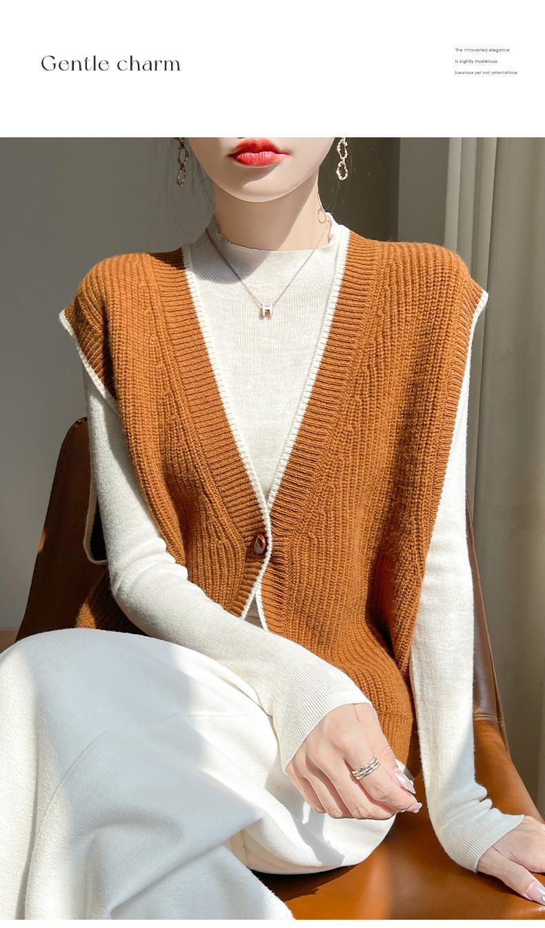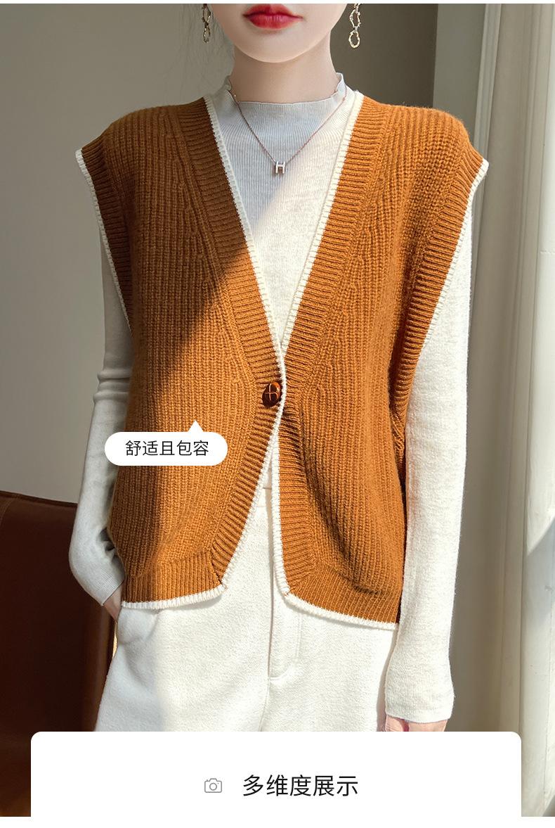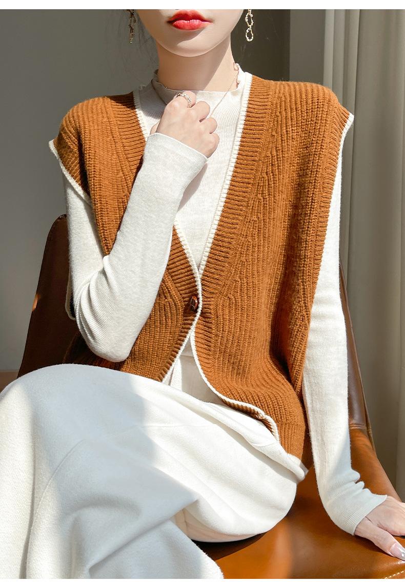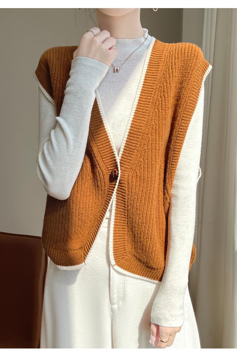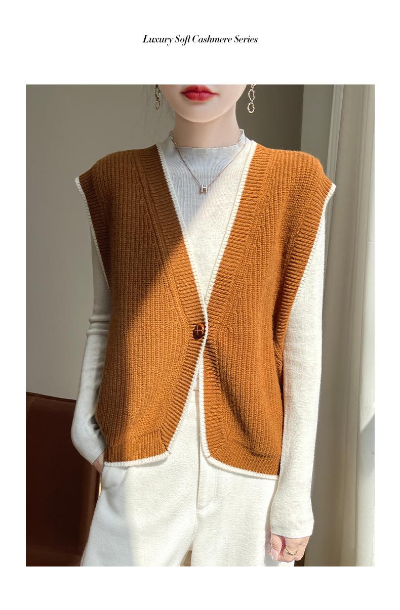 Cárdigan chaleco de punto sin mangas para mujer con cuello en V y combinación de colores, 100% lana pura, suéter chaleco suelto de cachemira, chaleco