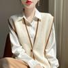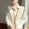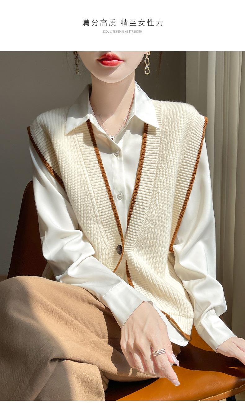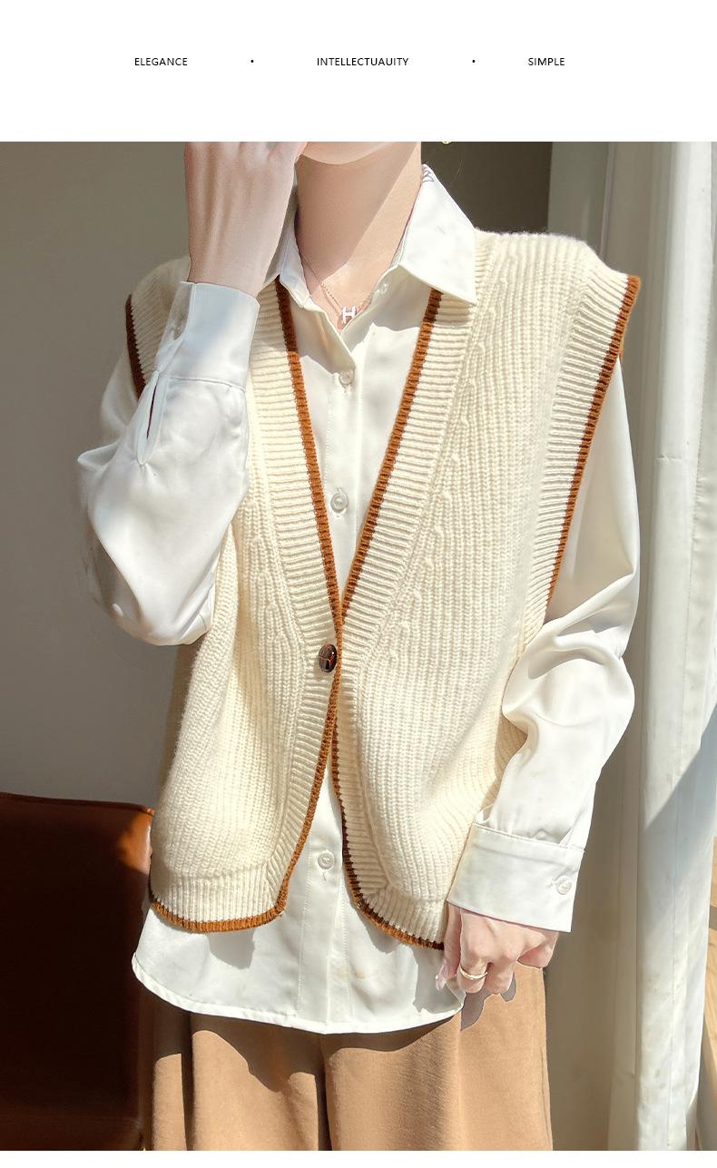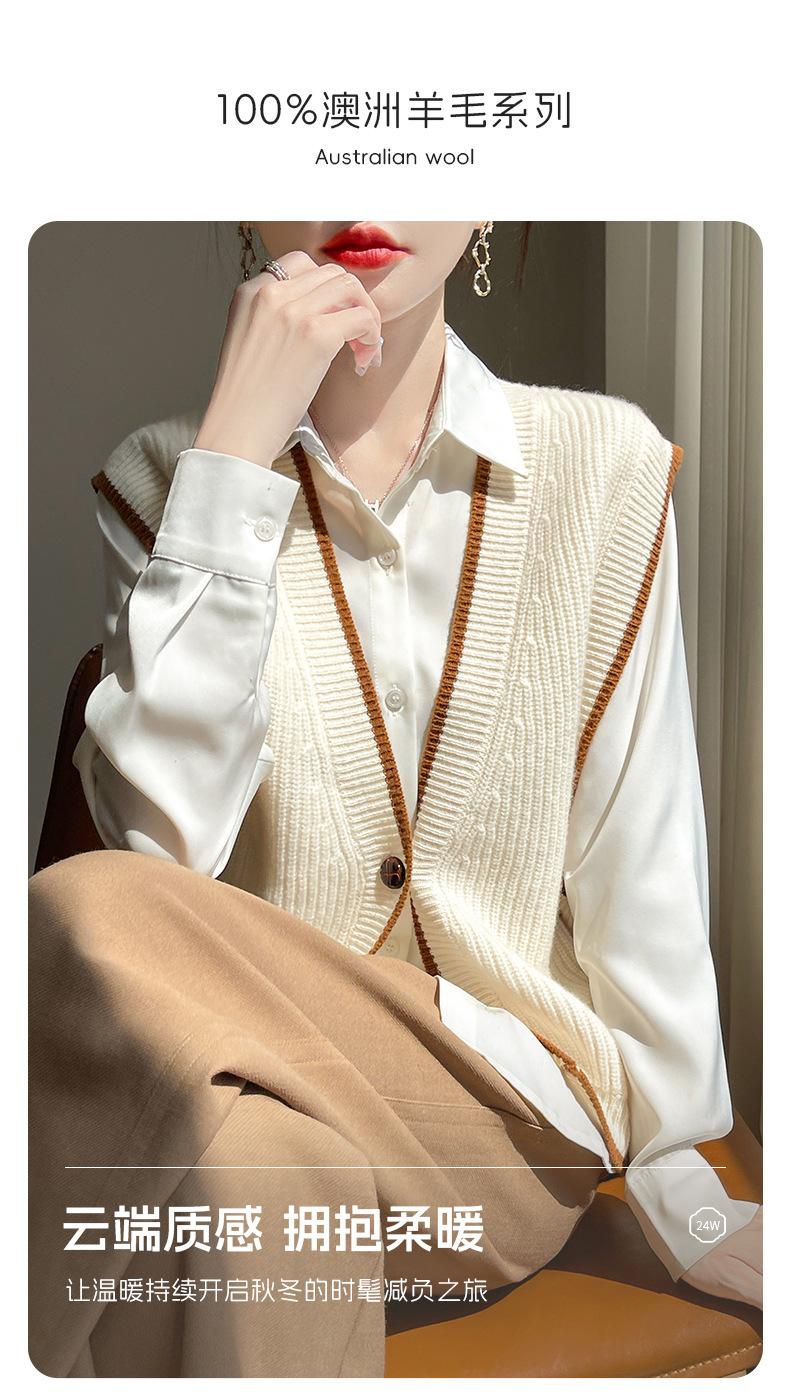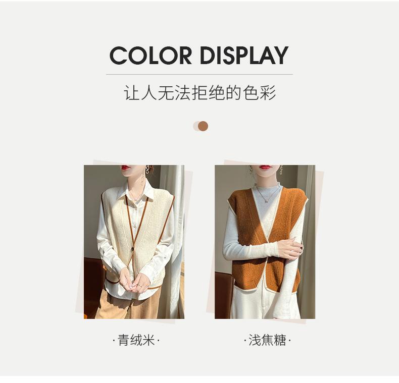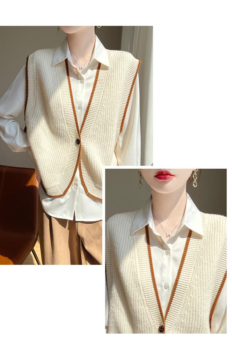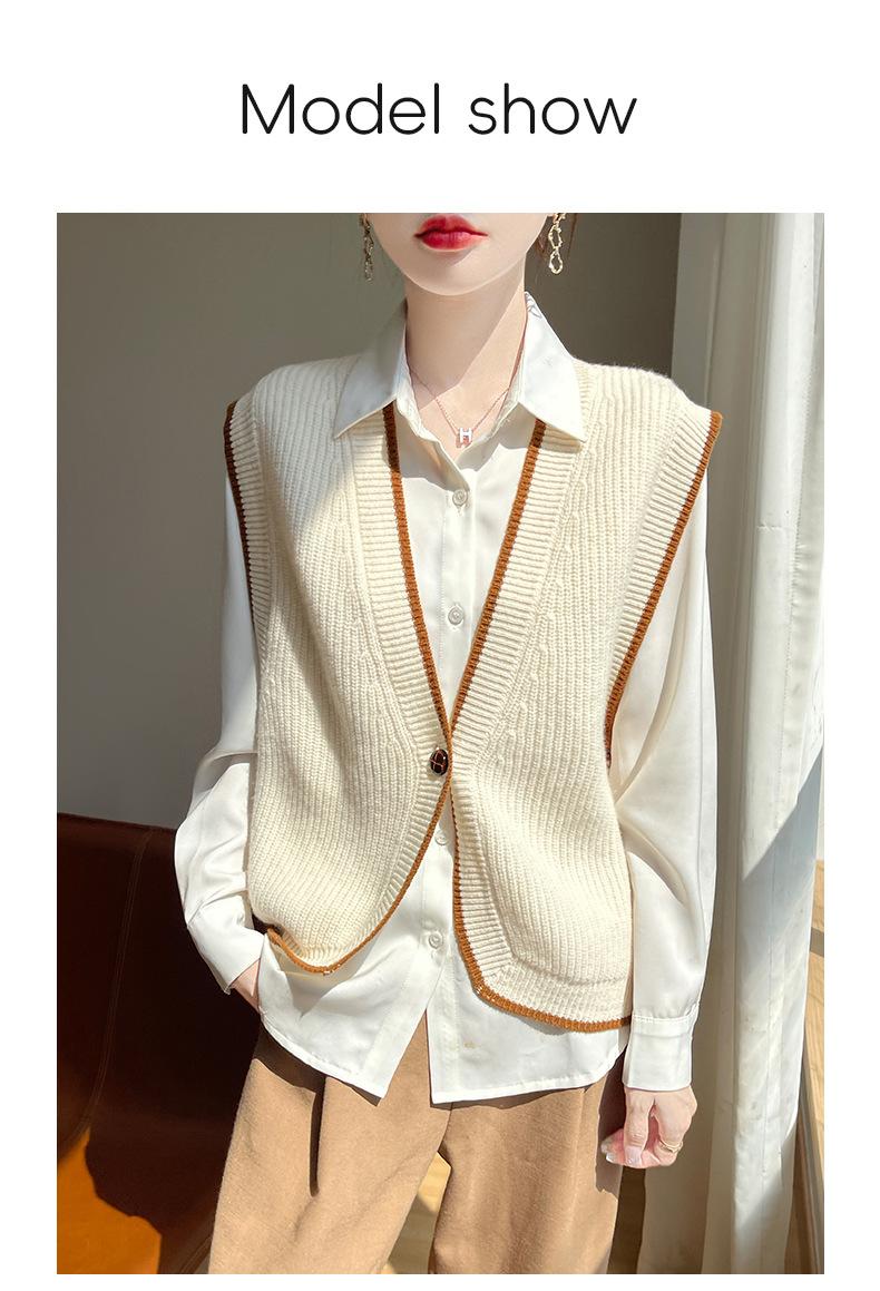 Cárdigan chaleco de punto sin mangas para mujer con cuello en V y combinación de colores, 100% lana pura, suéter chaleco suelto de cachemira, chaleco