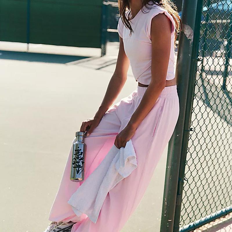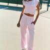 Traje casual de dos piezas de color sólido para mujer europea y americana, top corto sin mangas, pantalones deportivos con bolsillo, ropa deportiva