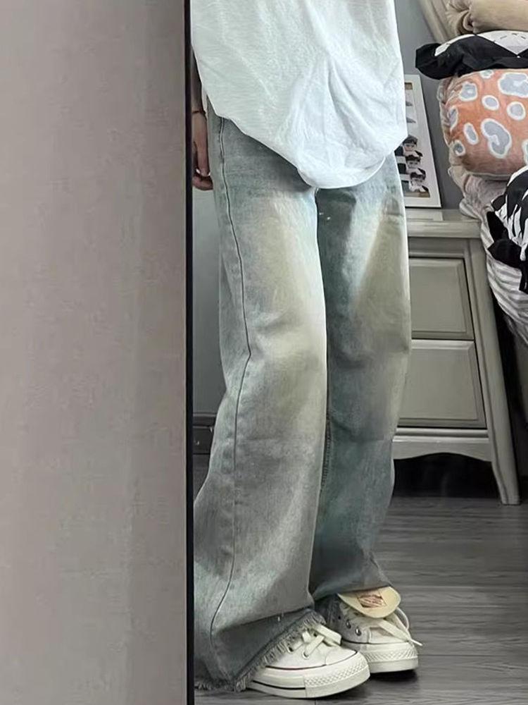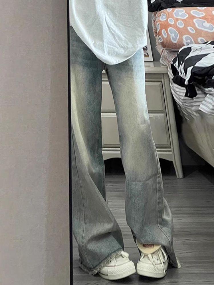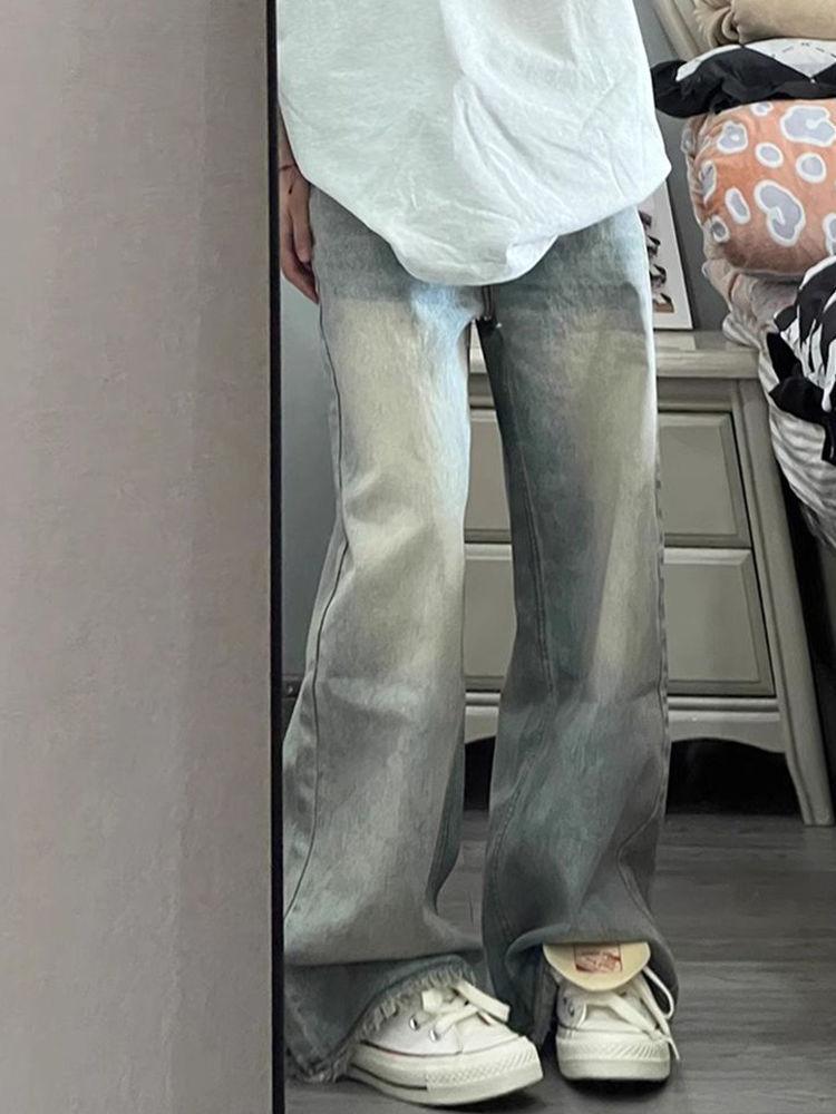 Pantalones vaqueros retro de lana de pierna ancha para mujer, de primavera y verano, rectos, holgados, ajustados, modernos y a la moda.
