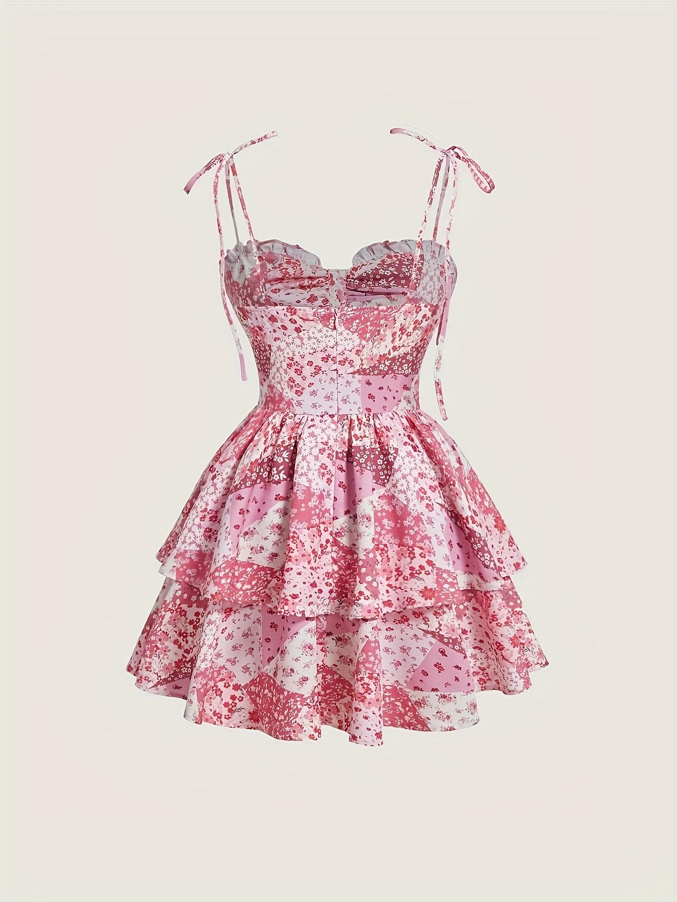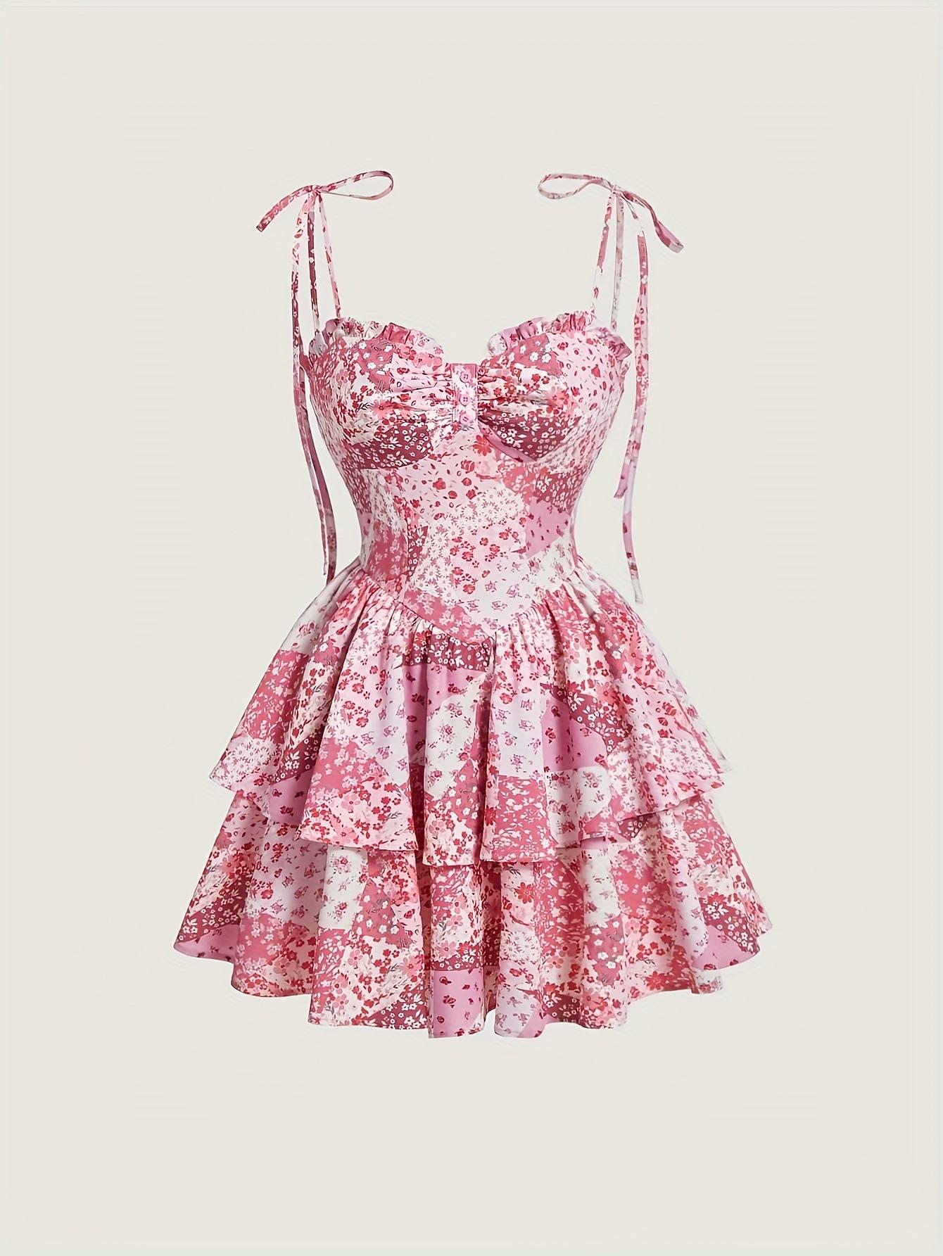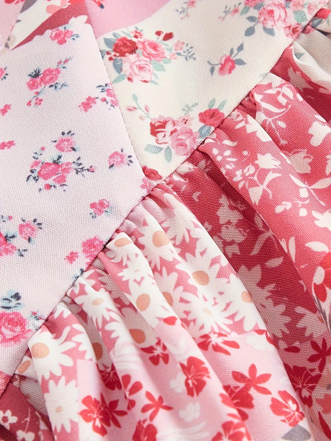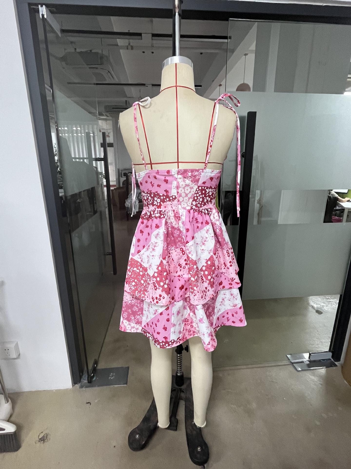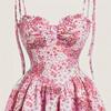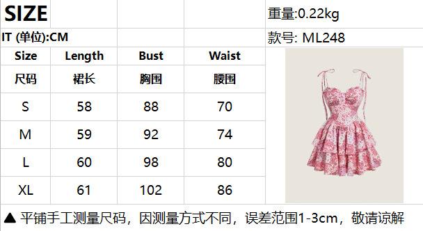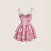 Nuevo Vestido Europeo y Americano Floral con Tirantes Falda de Pastel Europeo y Americano Transfronterizo Retro Rosa Doble Capa Bajo Falda de Mujer