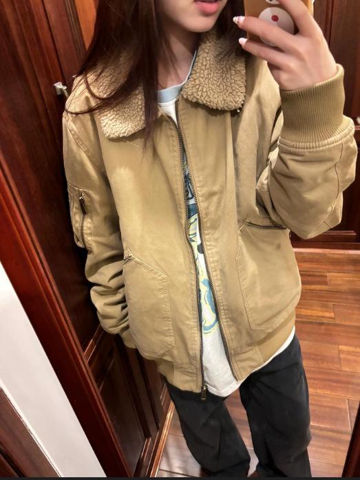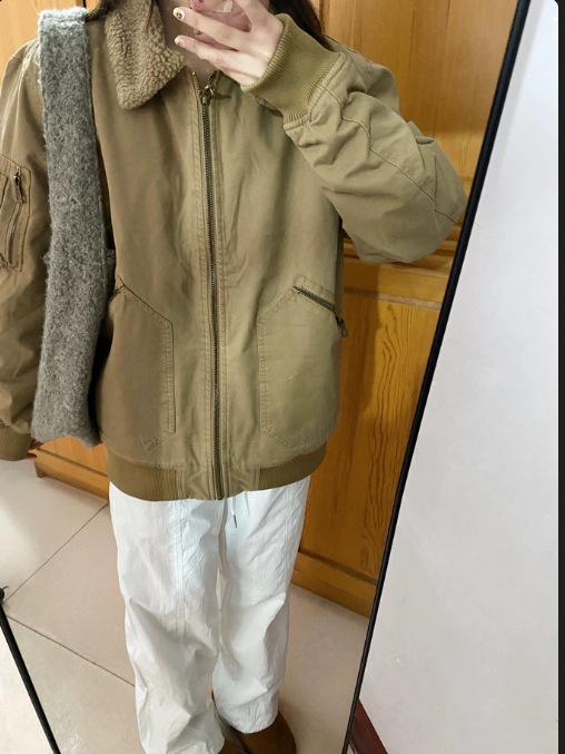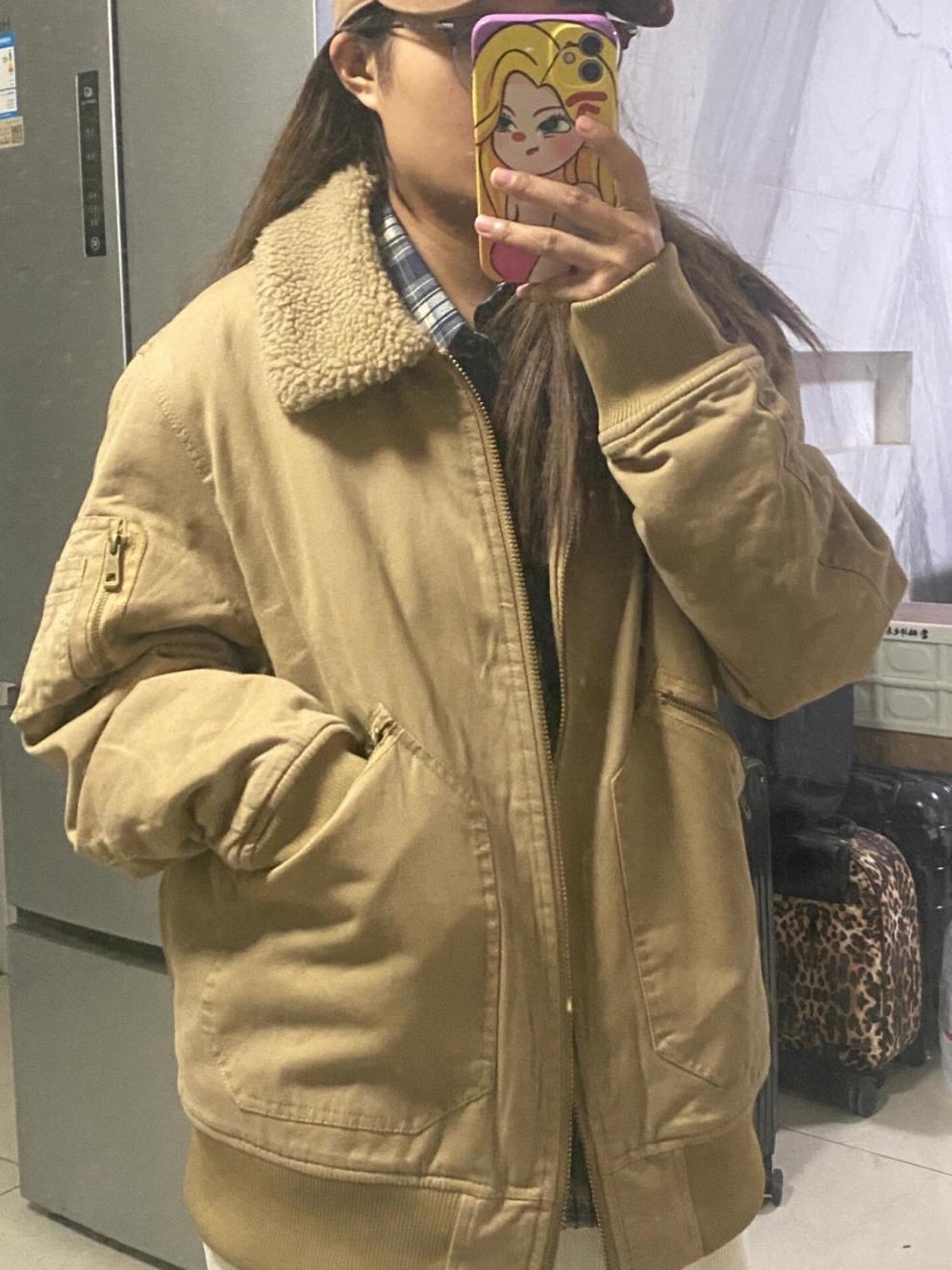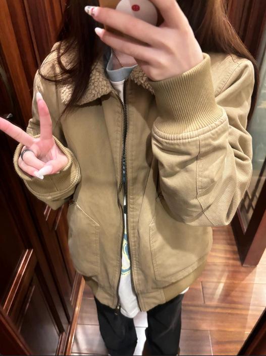 Abrigo de vuelo de lana de cordero para mujer, otoño e invierno, nuevo, holgado, estilo retro americano, abrigo acolchado de algodón.