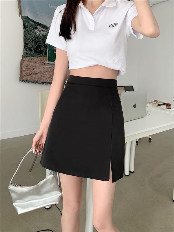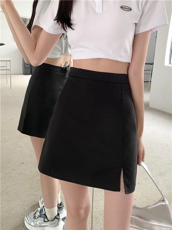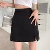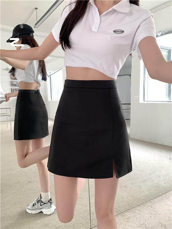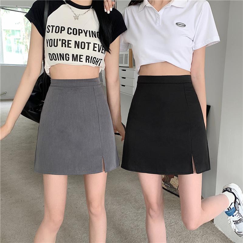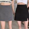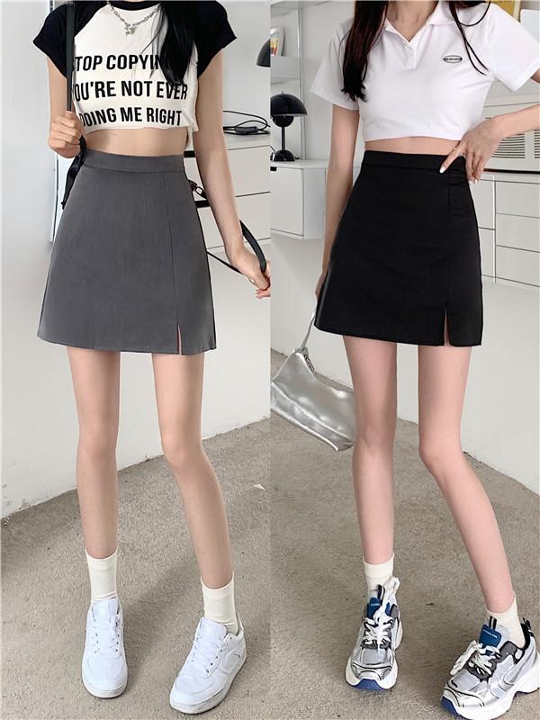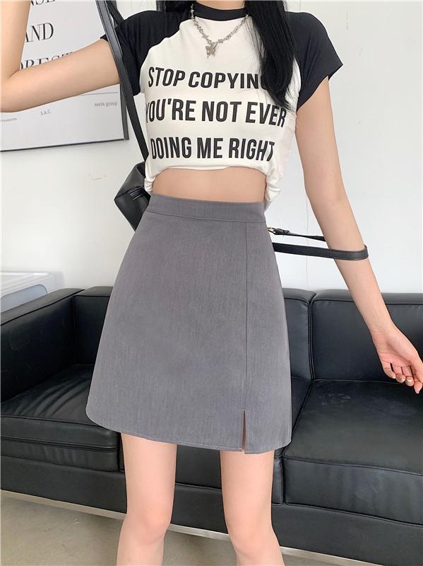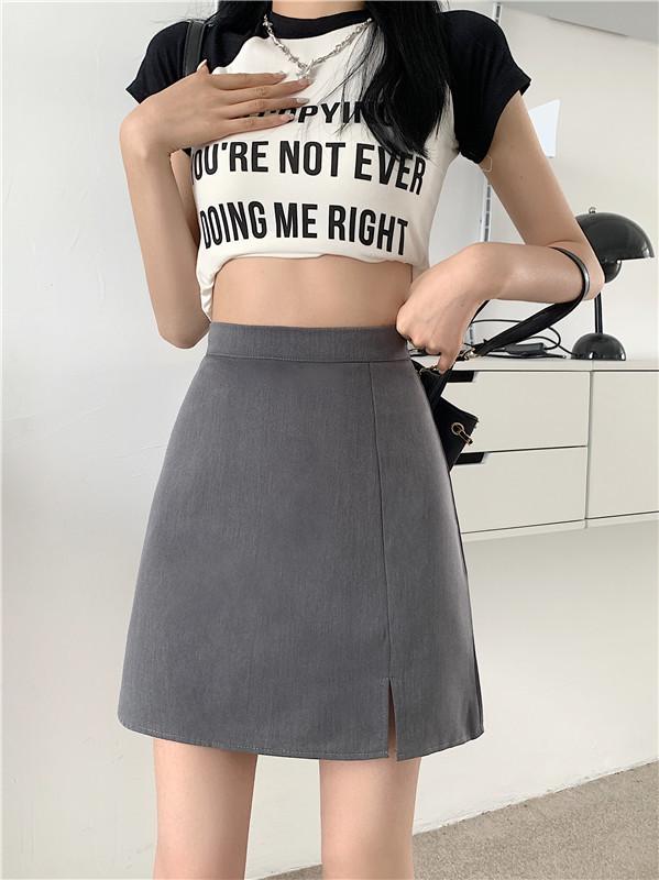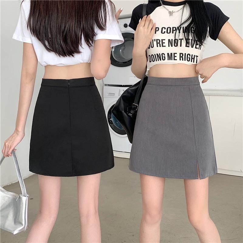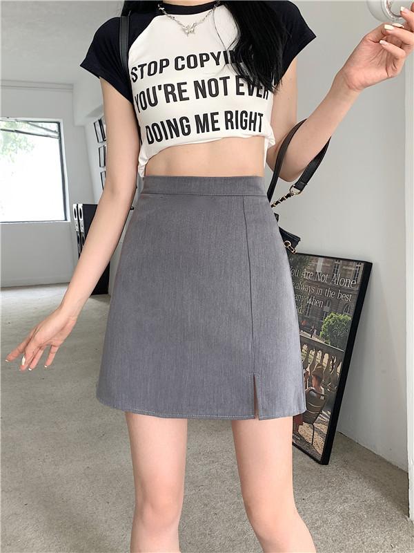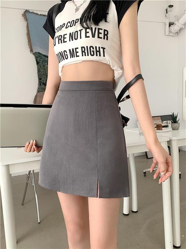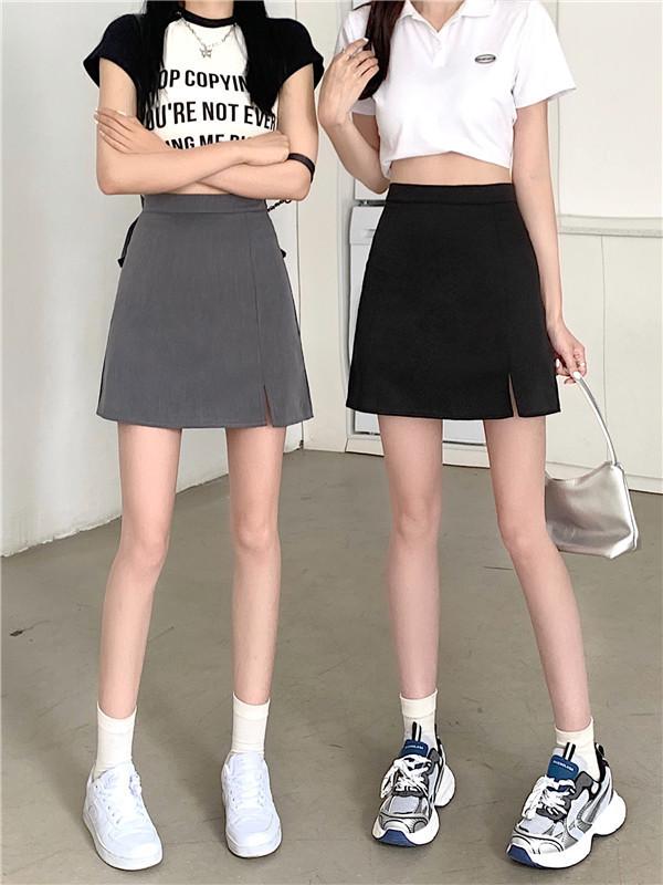 Falda Gris de Cintura Alta Antiexposición Corte A con Abertura Cubre Caderas Diseño de Traje Falda Corta para Mujeres Verano