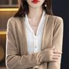 Cárdigan suéter chaqueta de punto gris de dos piezas falsas con cuello en V y temperamento para mujer con estilo pequeño y perezoso para otoño, estilo coreano