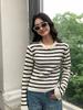 Suéter de Punto Corto de Otoño e Invierno de Cachemira para Mujer con Cuello Redondo, Bloque de Color a Rayas Blanco y Negro, para Usar como Base de Lana