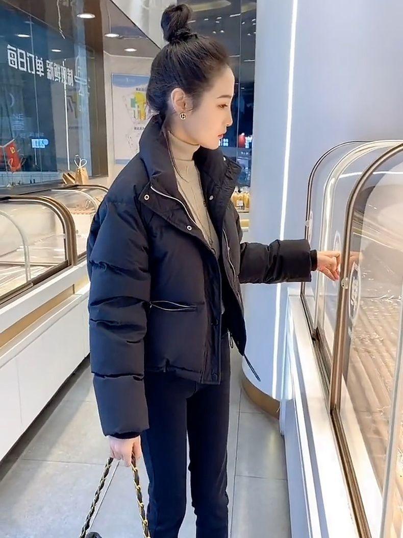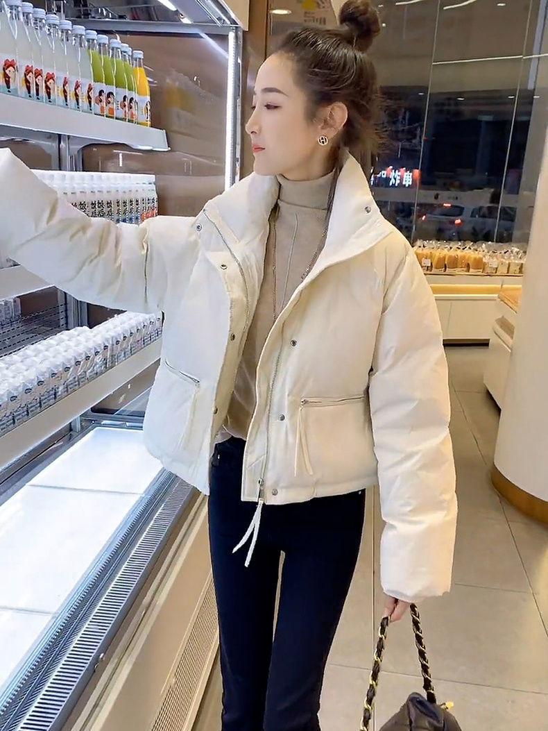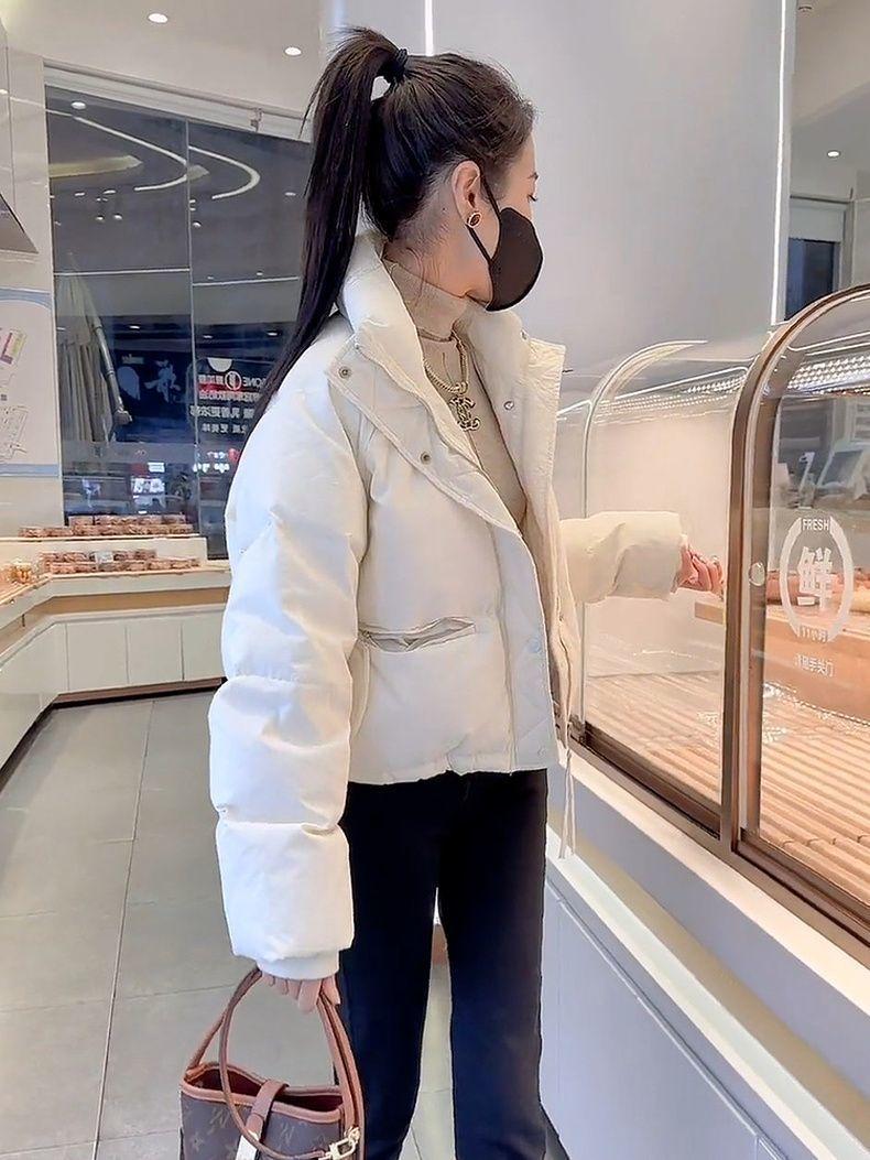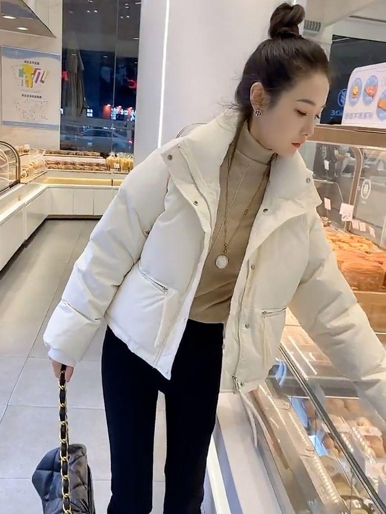 Chaqueta ligera de plumón de algodón con relleno de invierno de moda blanca para mujer, chaqueta corta, holgada y gruesa, chaqueta pequeña.