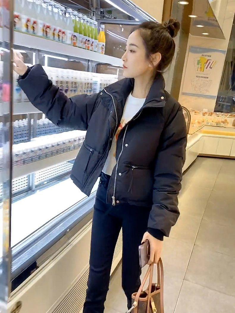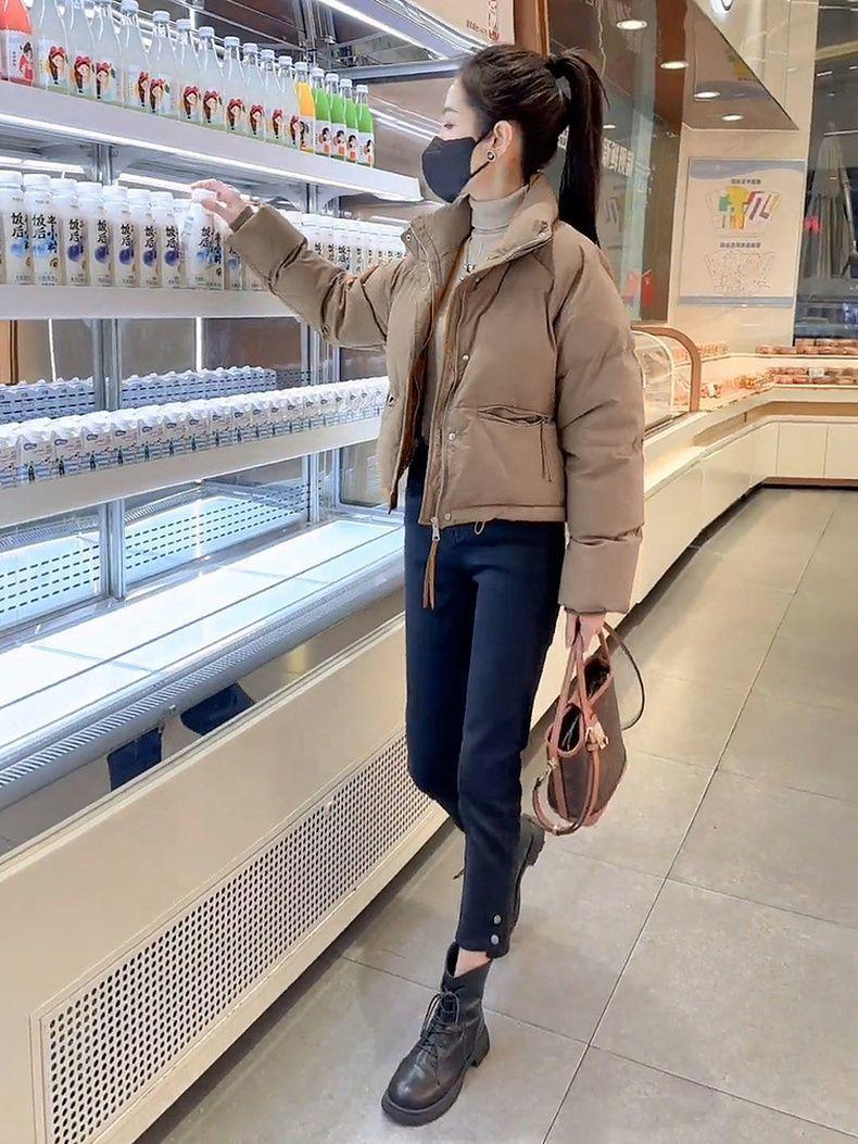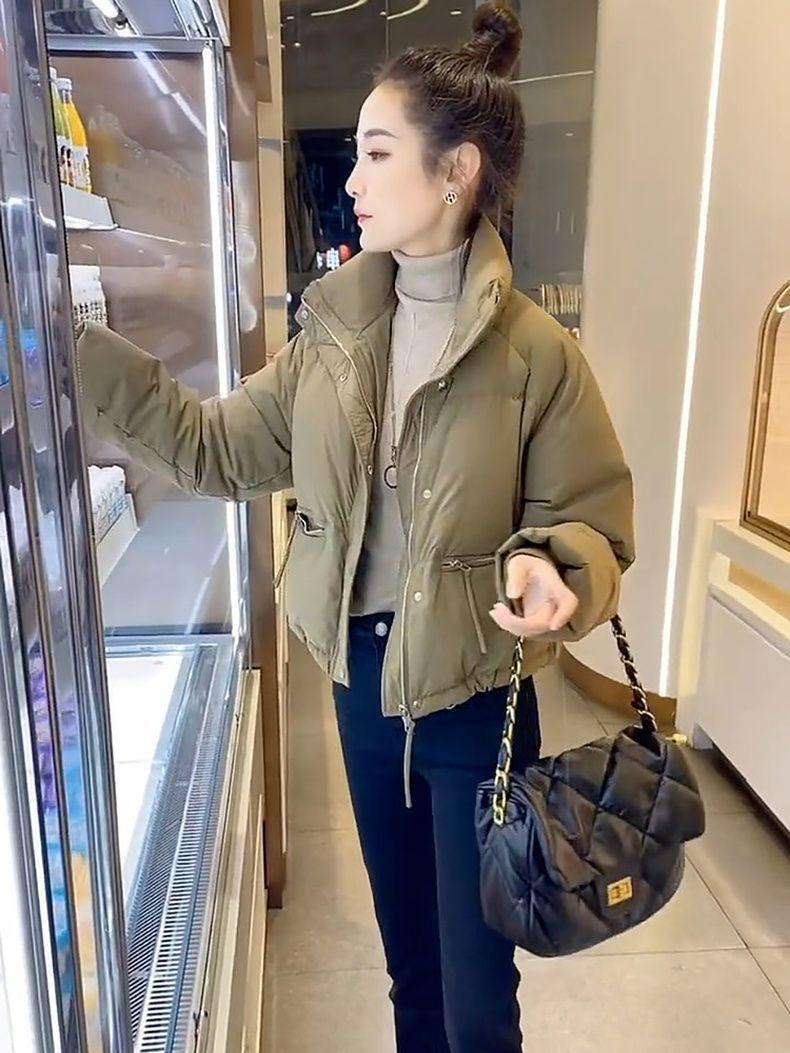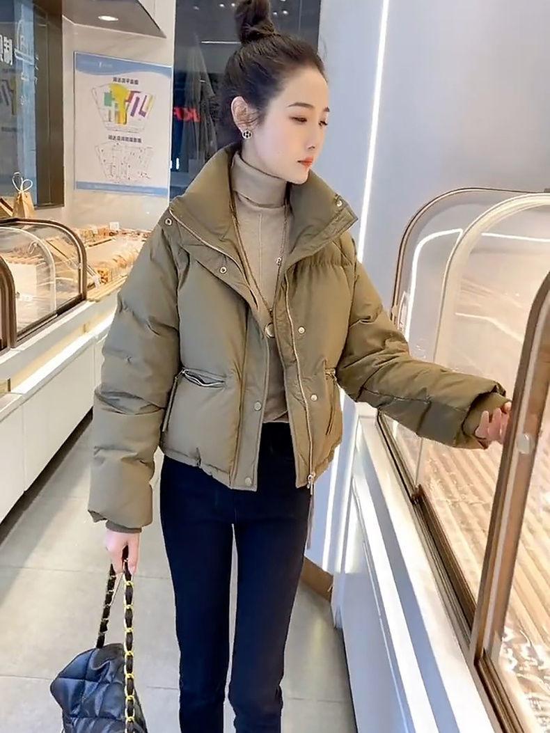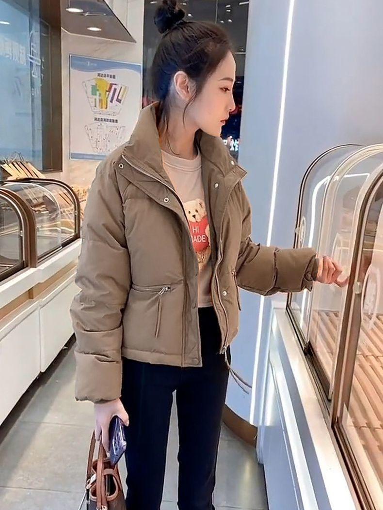 Chaqueta ligera de plumón de algodón con relleno de invierno de moda blanca para mujer, chaqueta corta, holgada y gruesa, chaqueta pequeña.