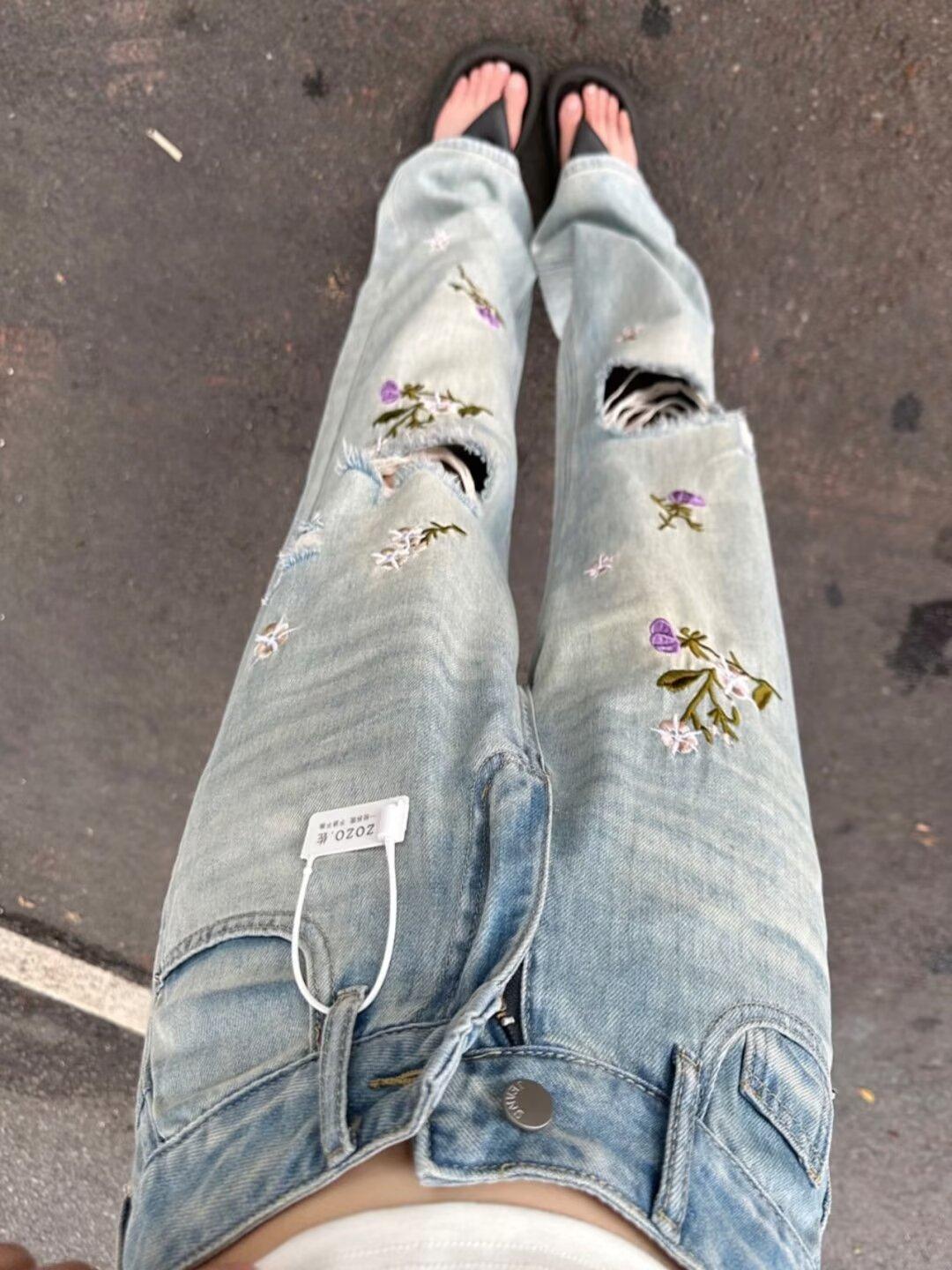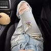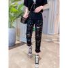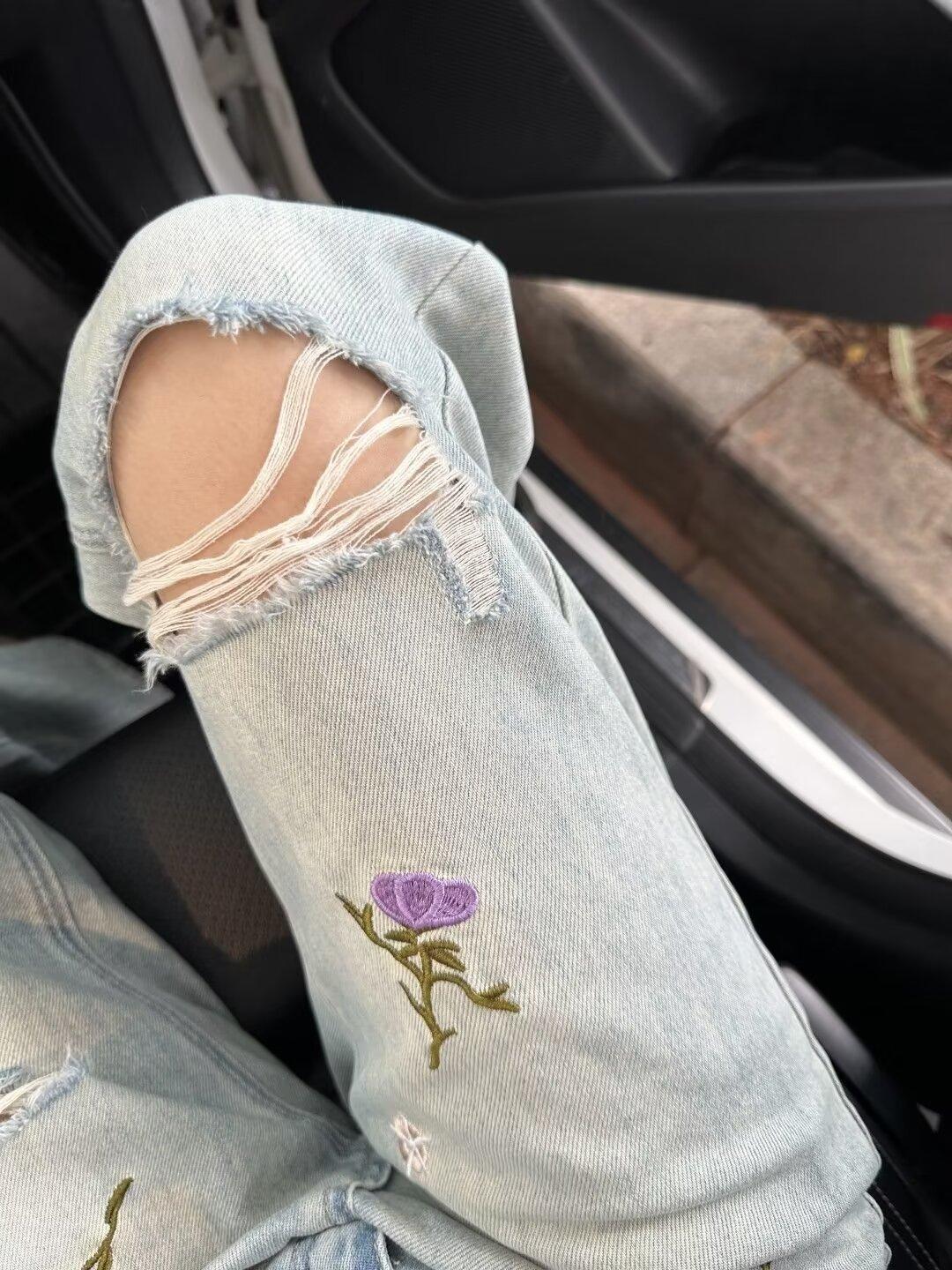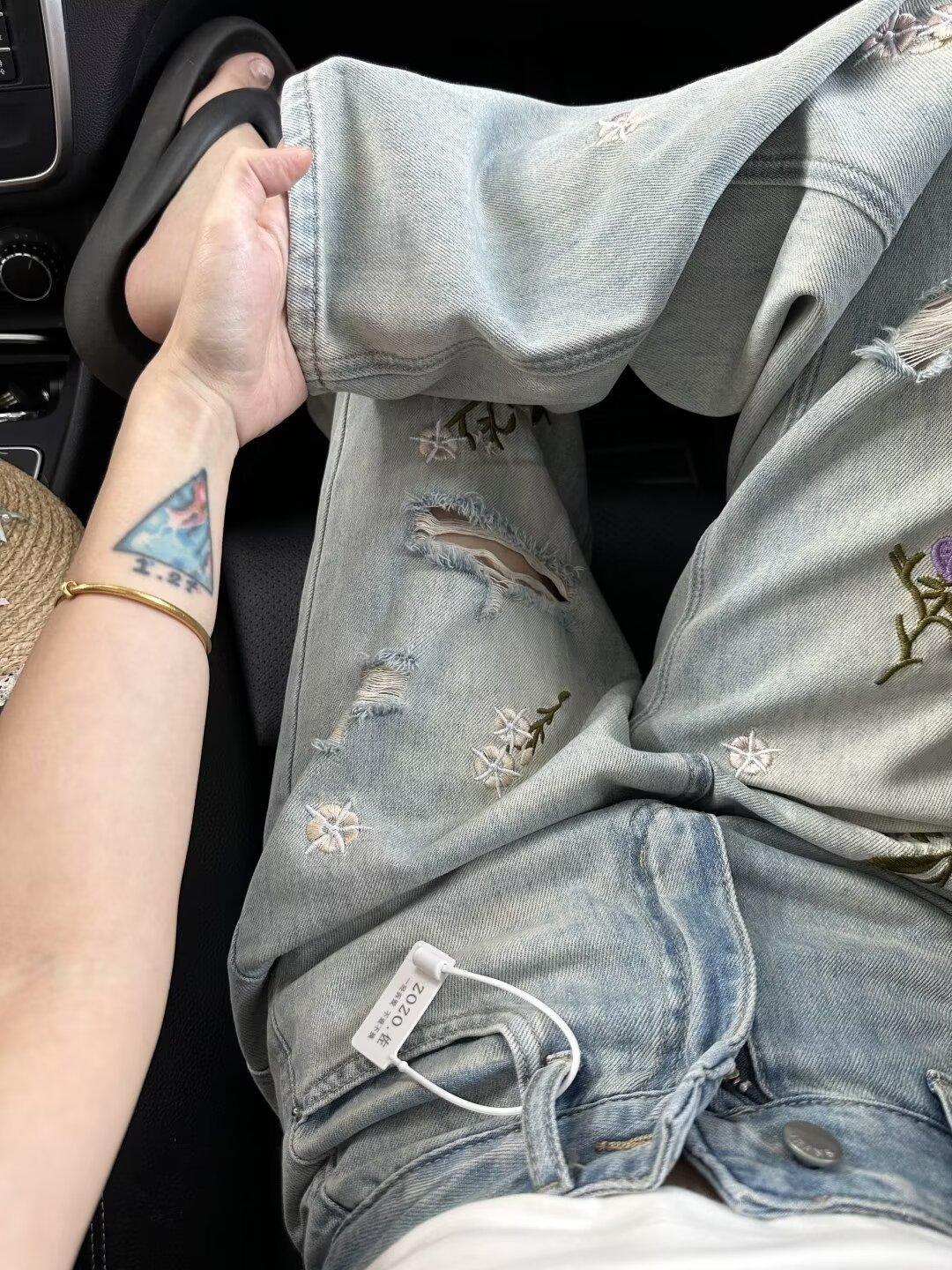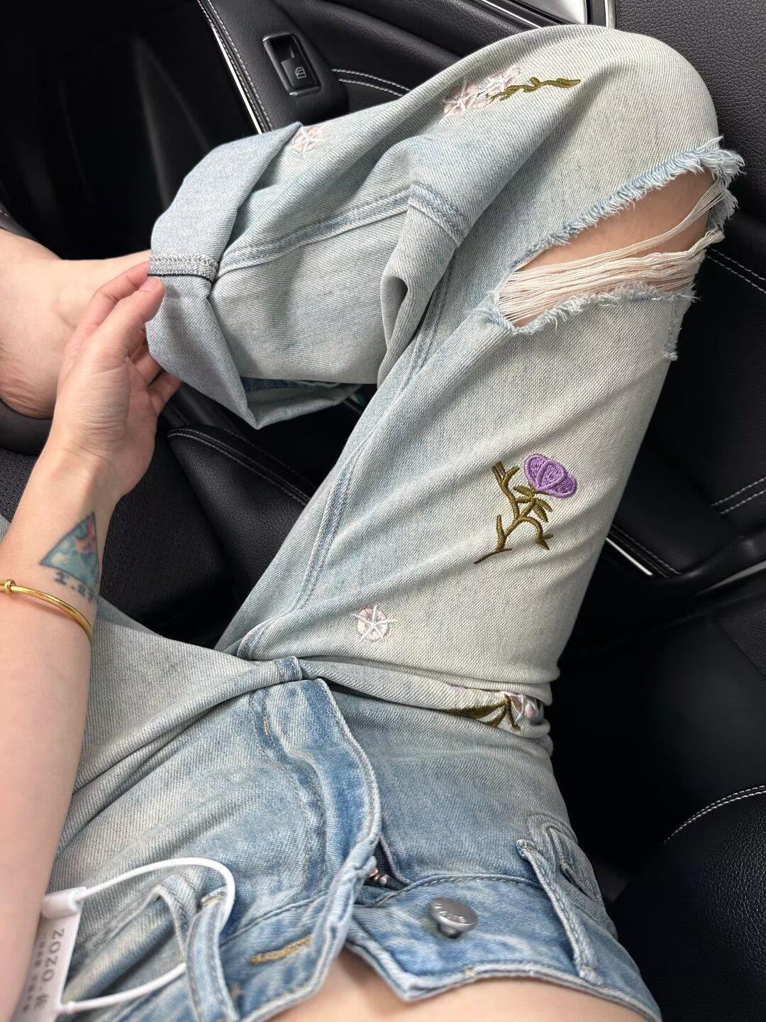 Pantalones vaqueros de verano 2024 para mujer, nuevos, estilo coreano, industria pesada, bordado de diamantes de imitación, diseño de agujeros con flores, pantalones de pierna recta, pantalones de pierna ancha.