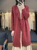 Cárdigan largo de punto con borlas de lana 100 % gruesa con cuello en V para otoño e invierno, chaqueta elegante informal de moda para mujer