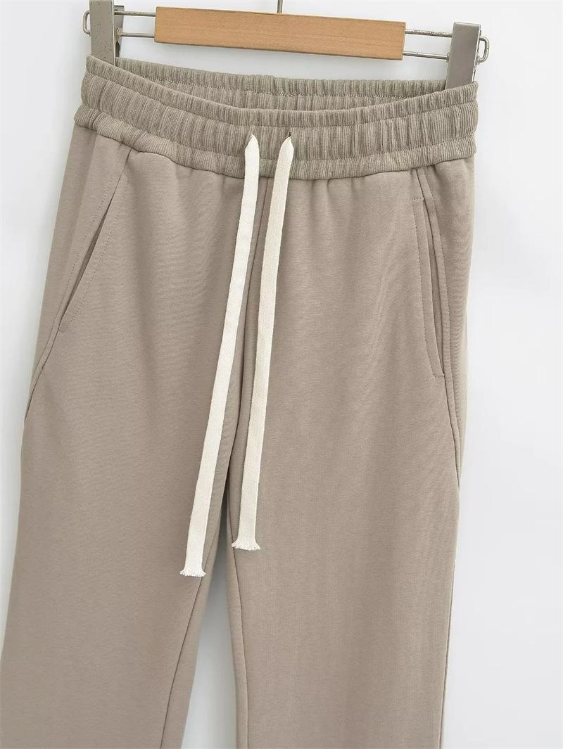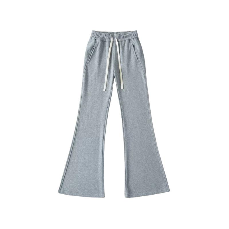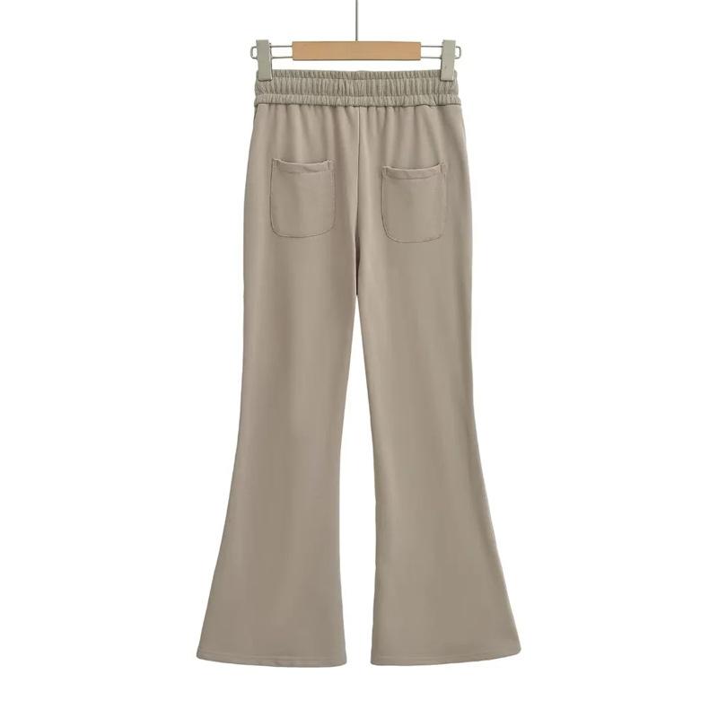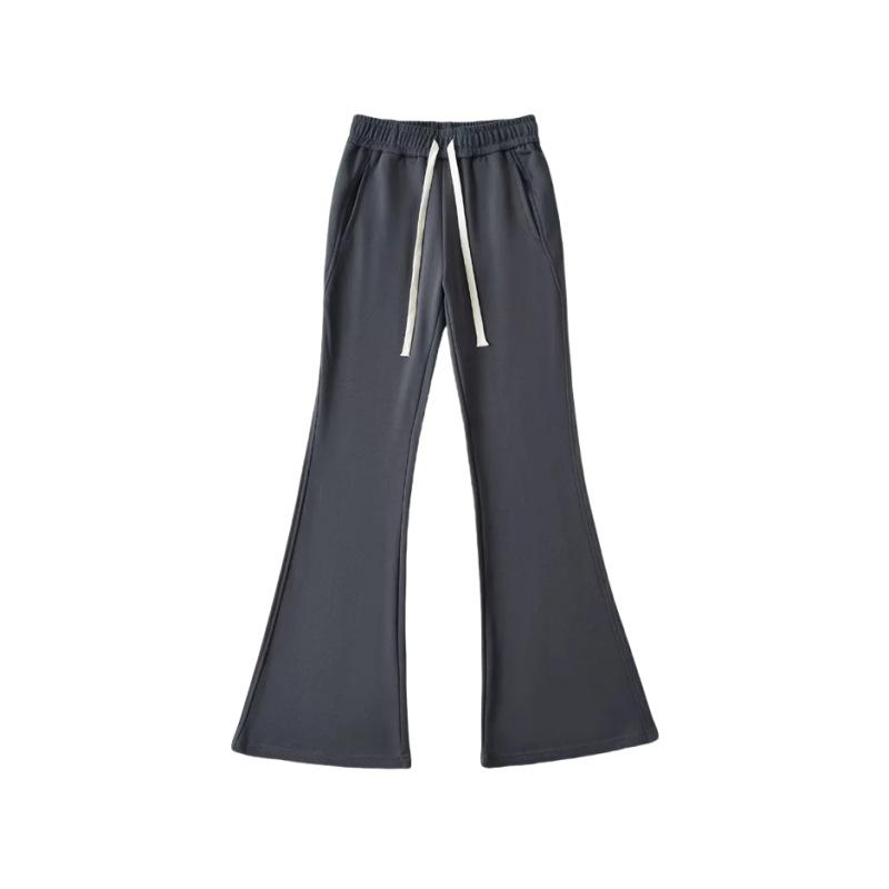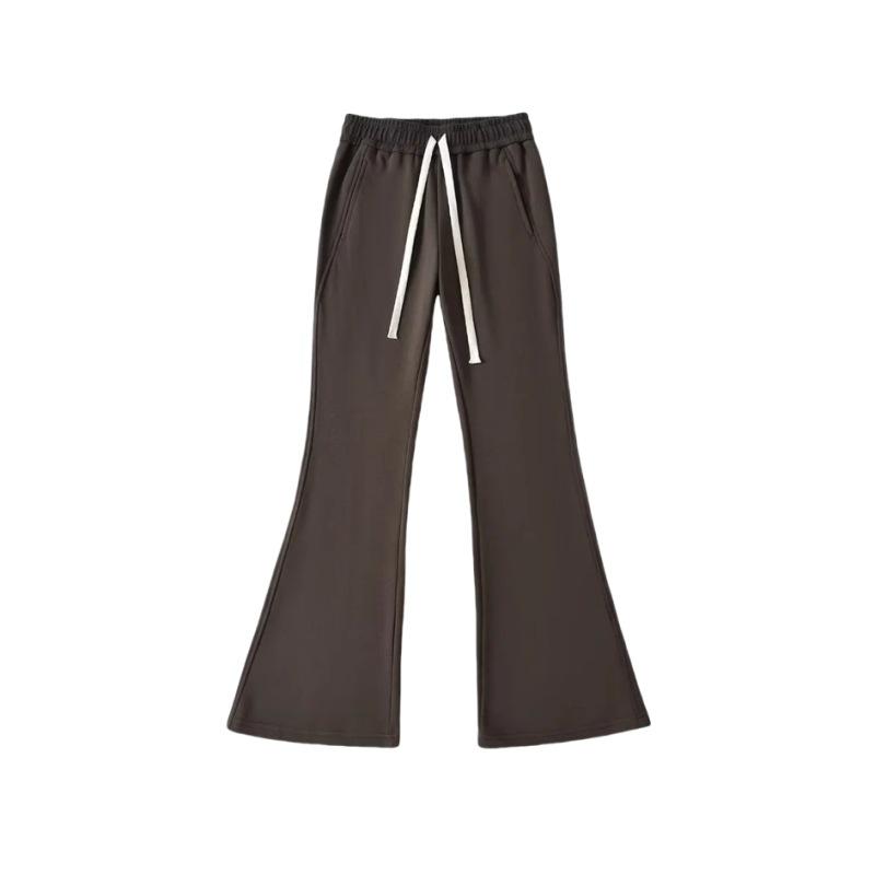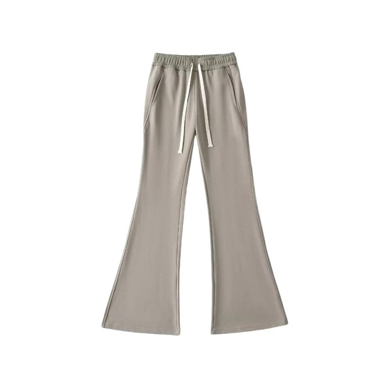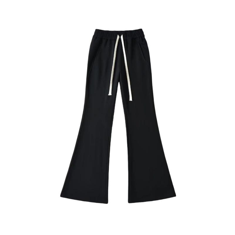 Pantalones acampanados informales vintage de otoño 2024 para mujer, color liso, cintura elástica, con cordón ajustable