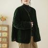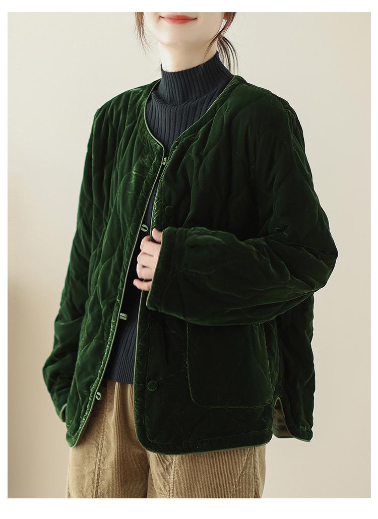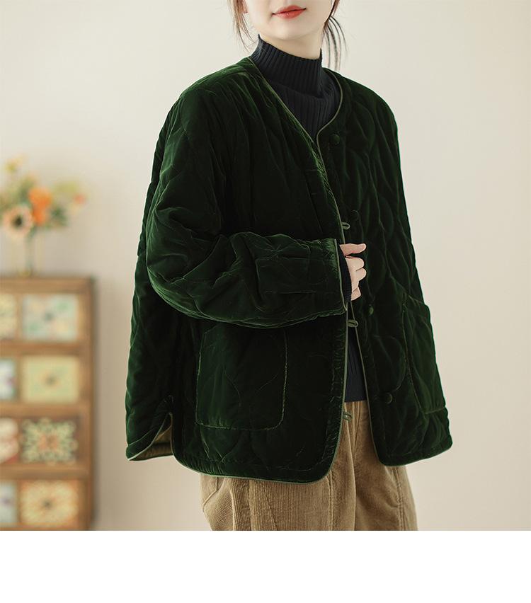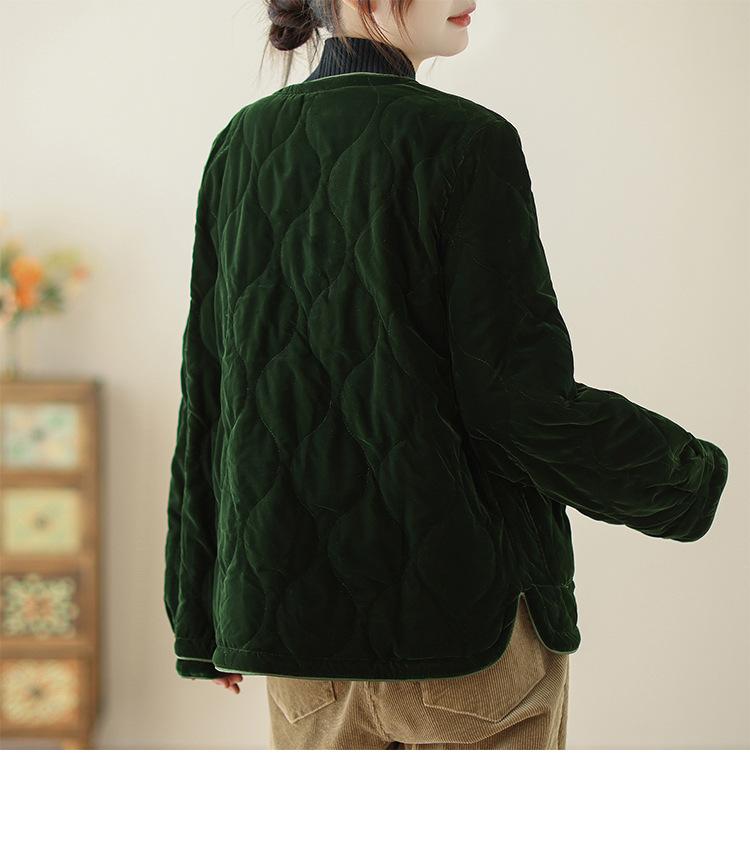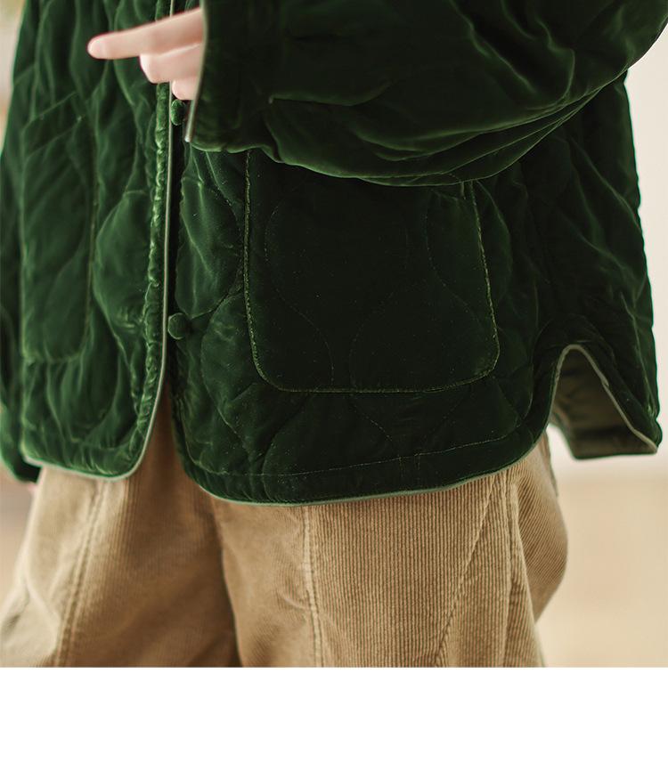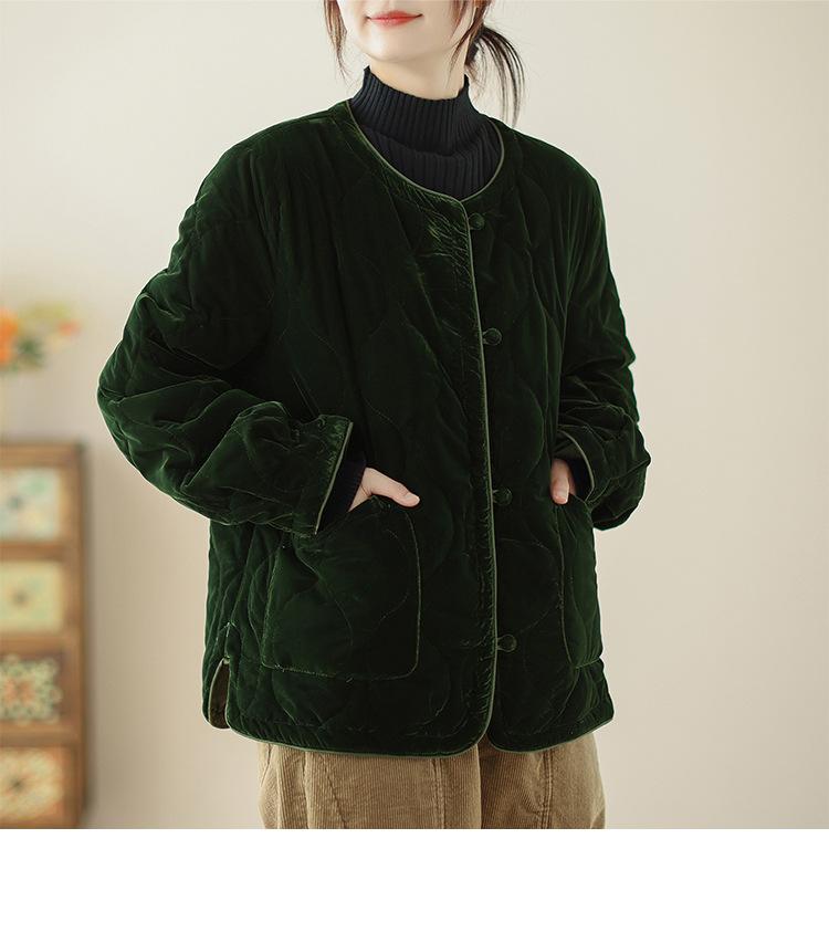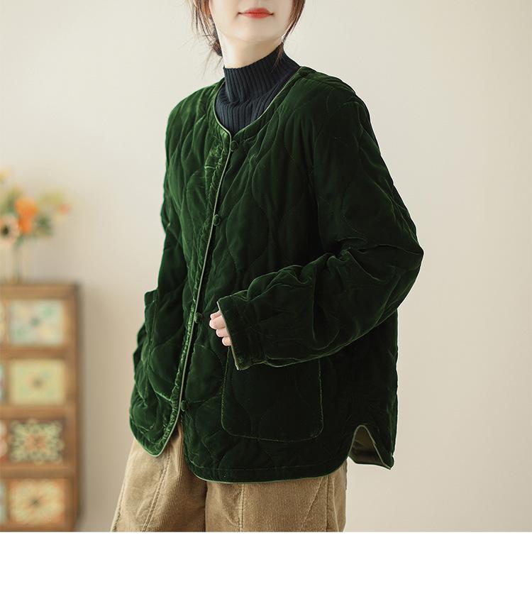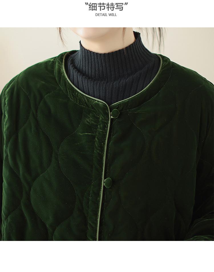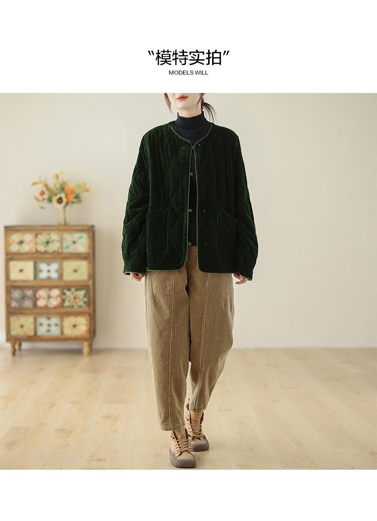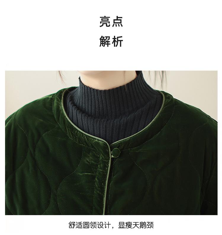 Chaqueta acolchada de algodón estilo retro informal de invierno 2024, disponible en stock, para mujer, con cuello redondo, holgada, corta y cálida.