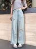 Diseño Lazo Jeans Rotos Mujer 2024 Nuevo Primavera y Otoño talla grande Pantalones Adelgazantes de Cintura Alta