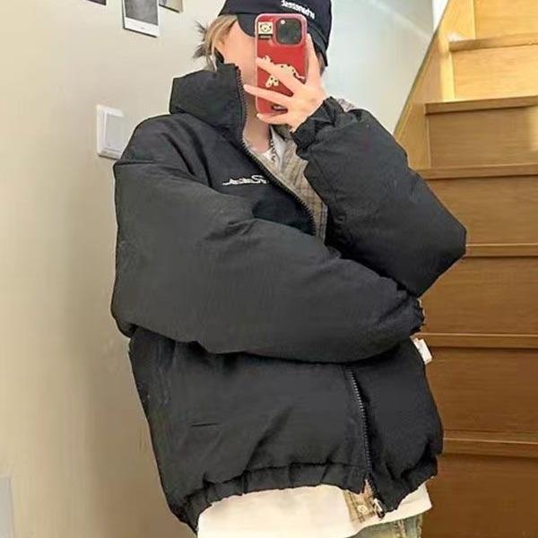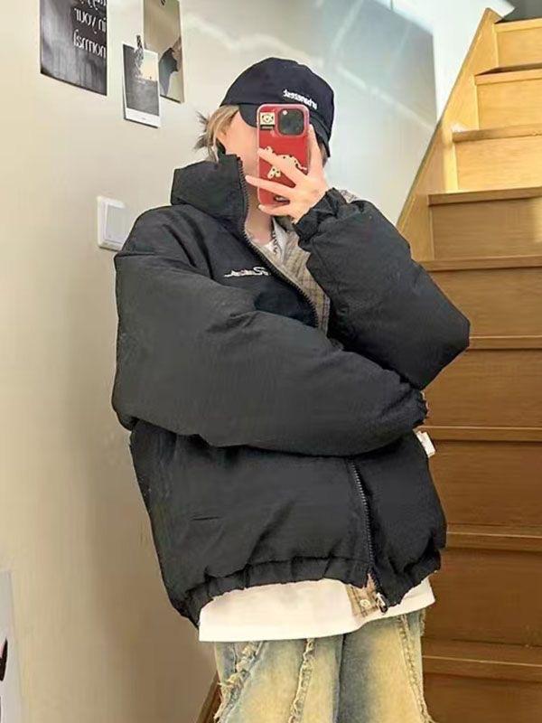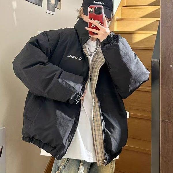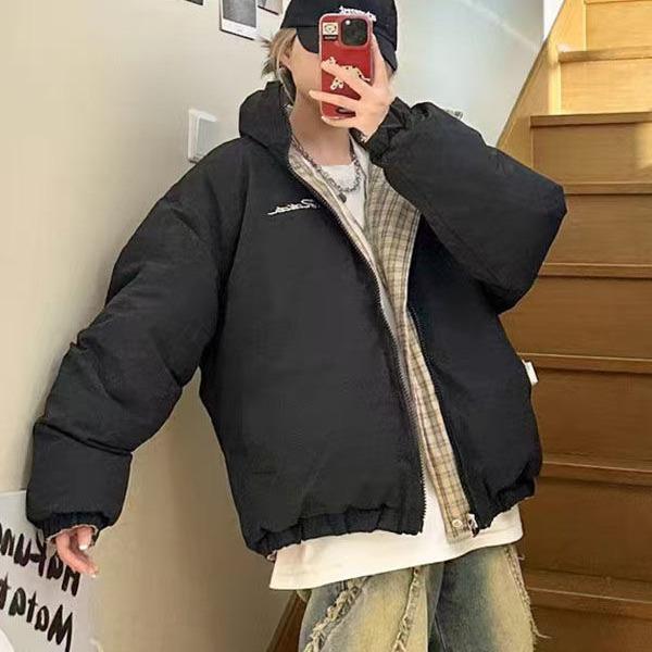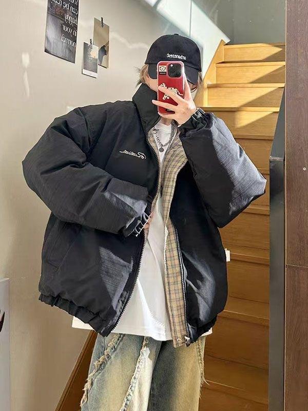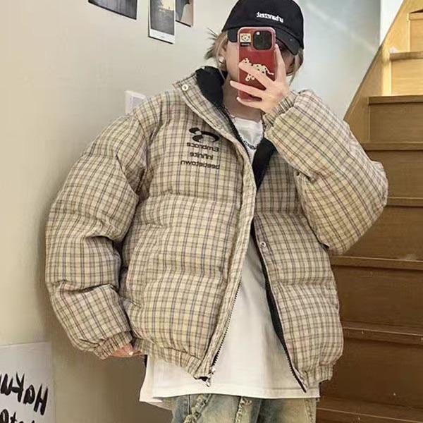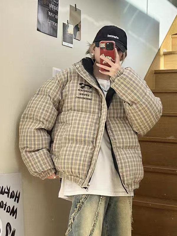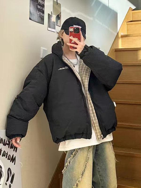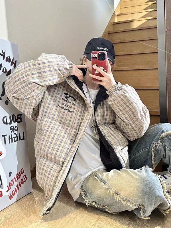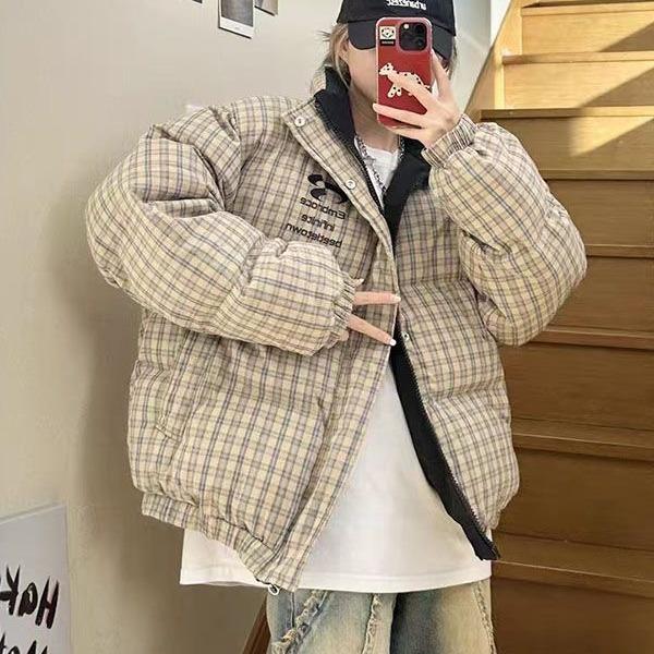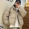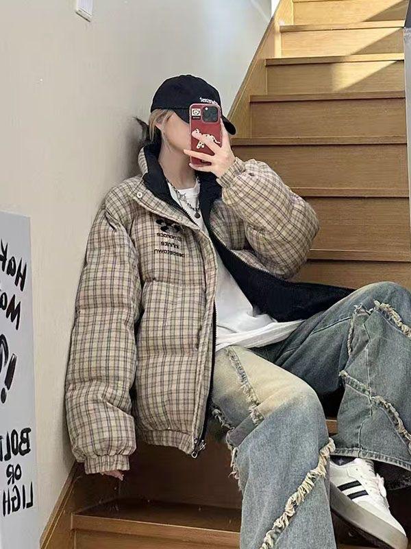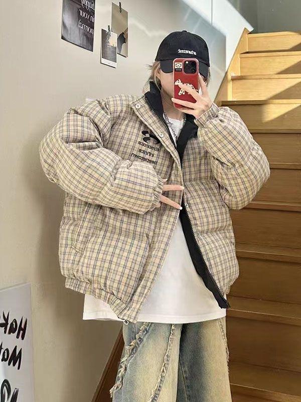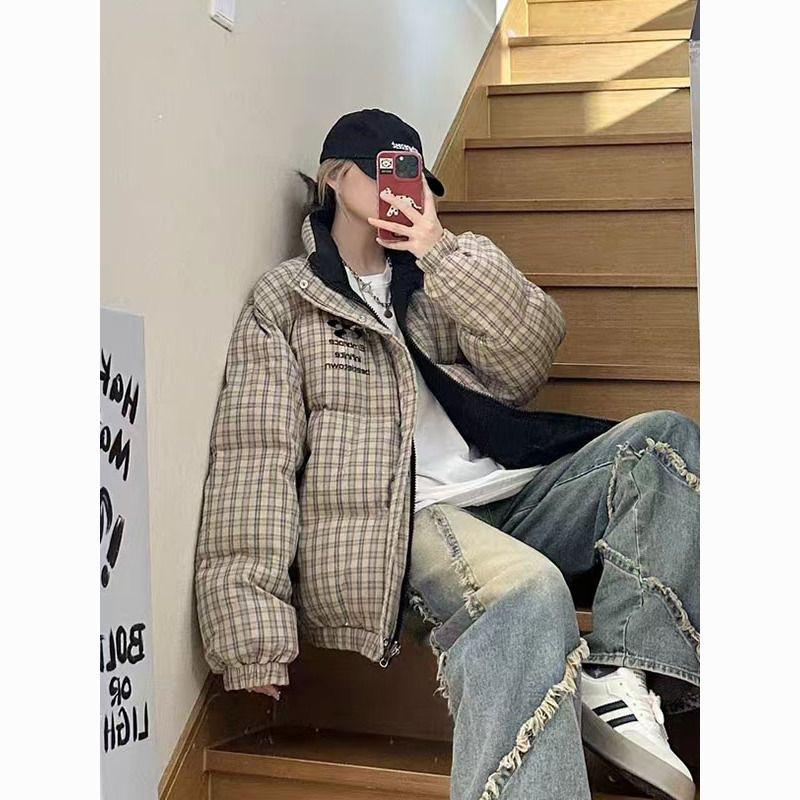 Abrigo acolchado de algodón a cuadros de doble cara estilo americano retro para mujer, abrigo de invierno con nuevo diseño, grueso y cálido, a la moda.