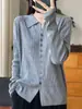 Cárdigan de Punto Holgado con Solapa de Lana Peinada para Mujer, Color Sólido, Manga Larga, Cuello POLO Interior, para Otoño e Invierno