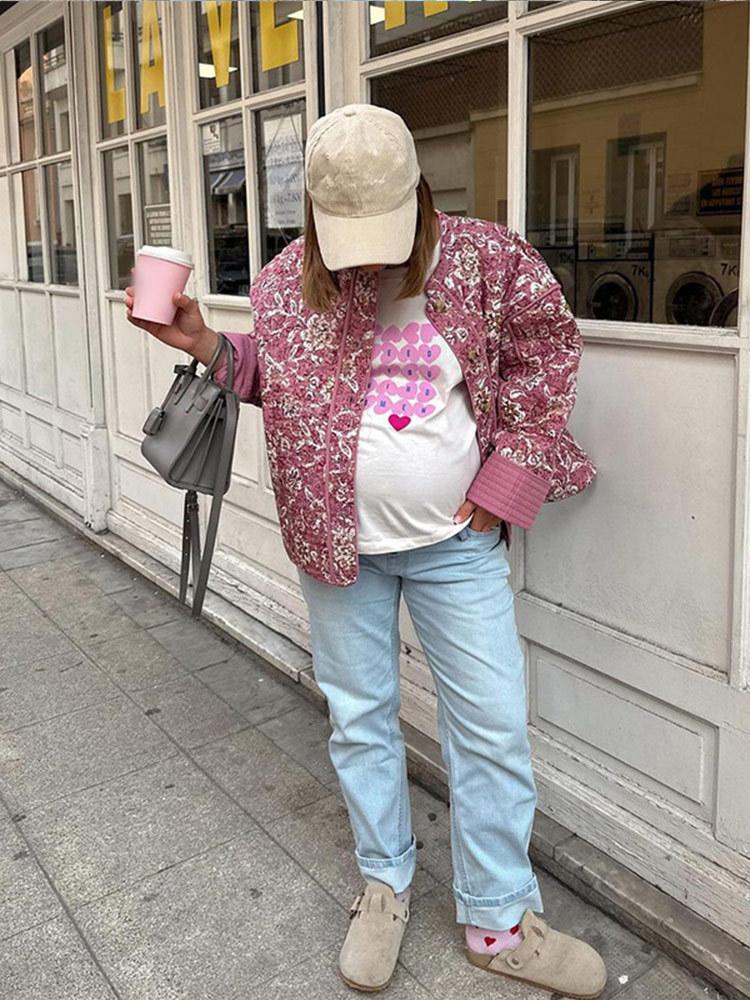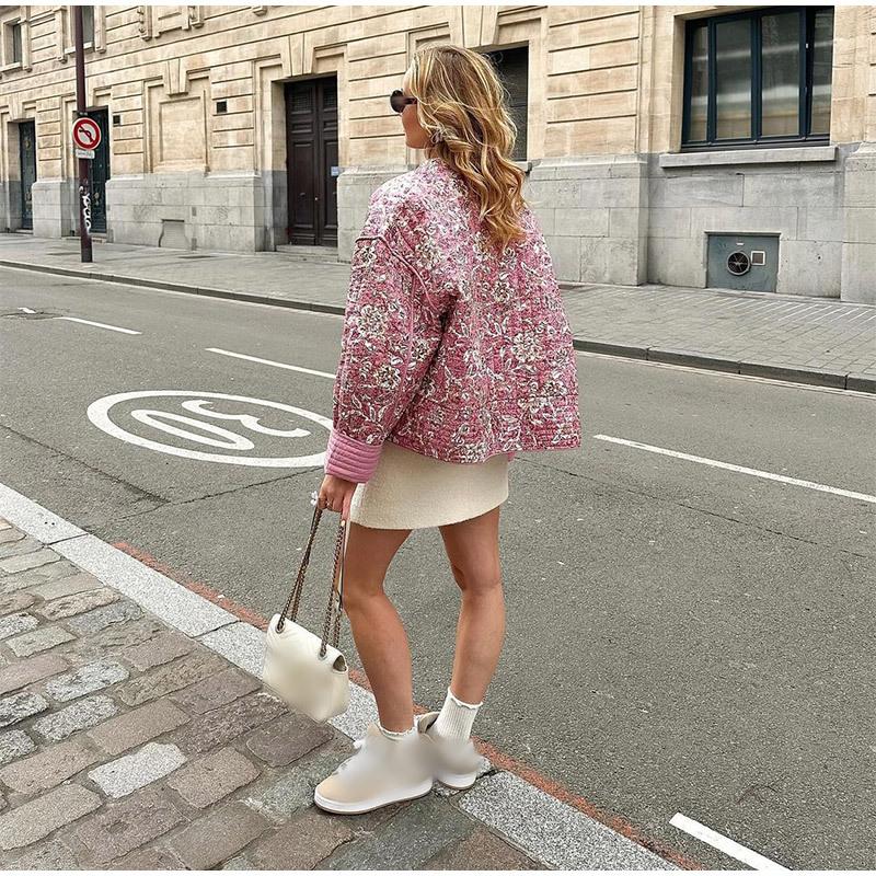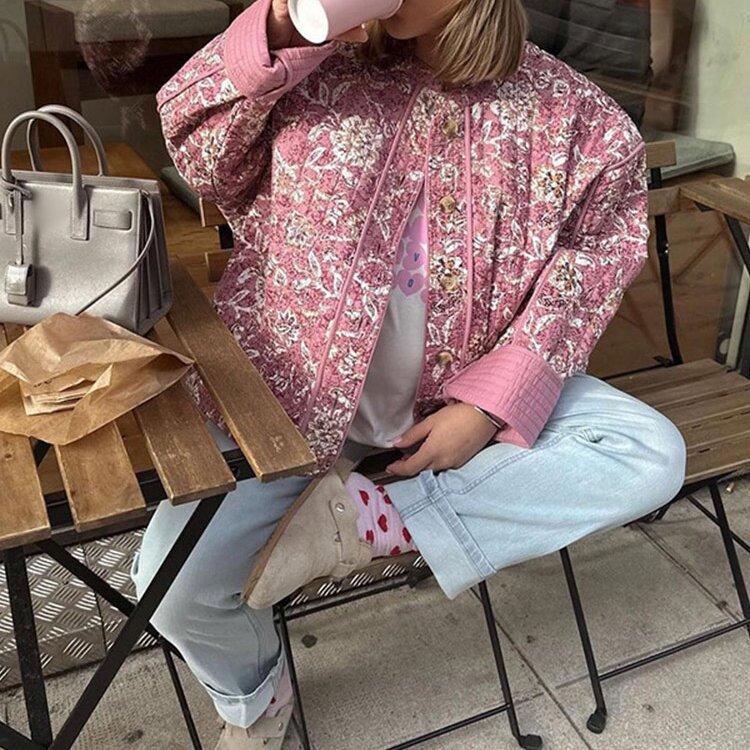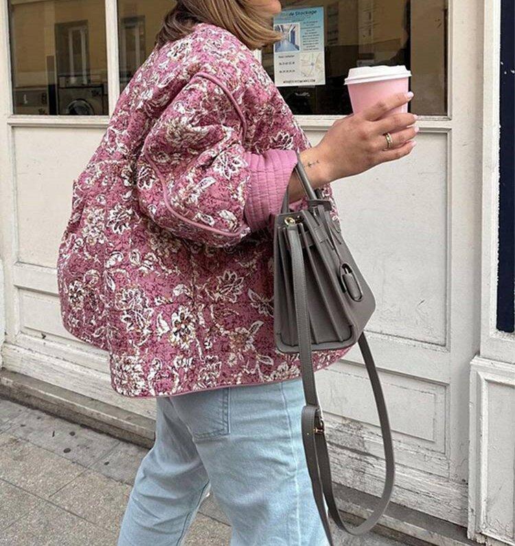 Chaqueta de algodón acolchada de manga larga con cuello redondo y estampado transfronterizo de otoño 2024 para Europa y Estados Unidos, chaqueta informal de un solo pecho con relleno de algodón