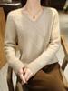 Suéter grueso con cuello en V y diamantes para otoño e invierno, nuevo suéter de punto 100 % lana para mujer, corte entallado, base que combina con todo, prenda exterior con flores torcidas.