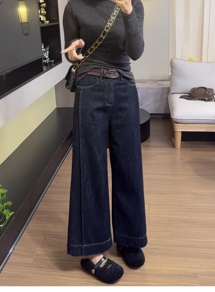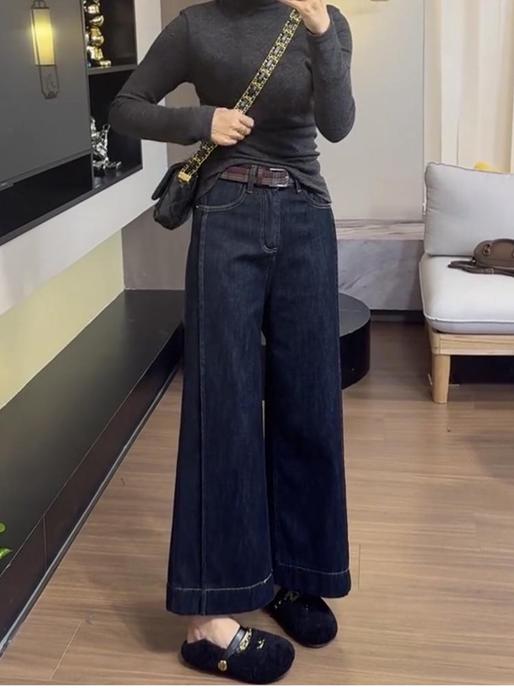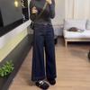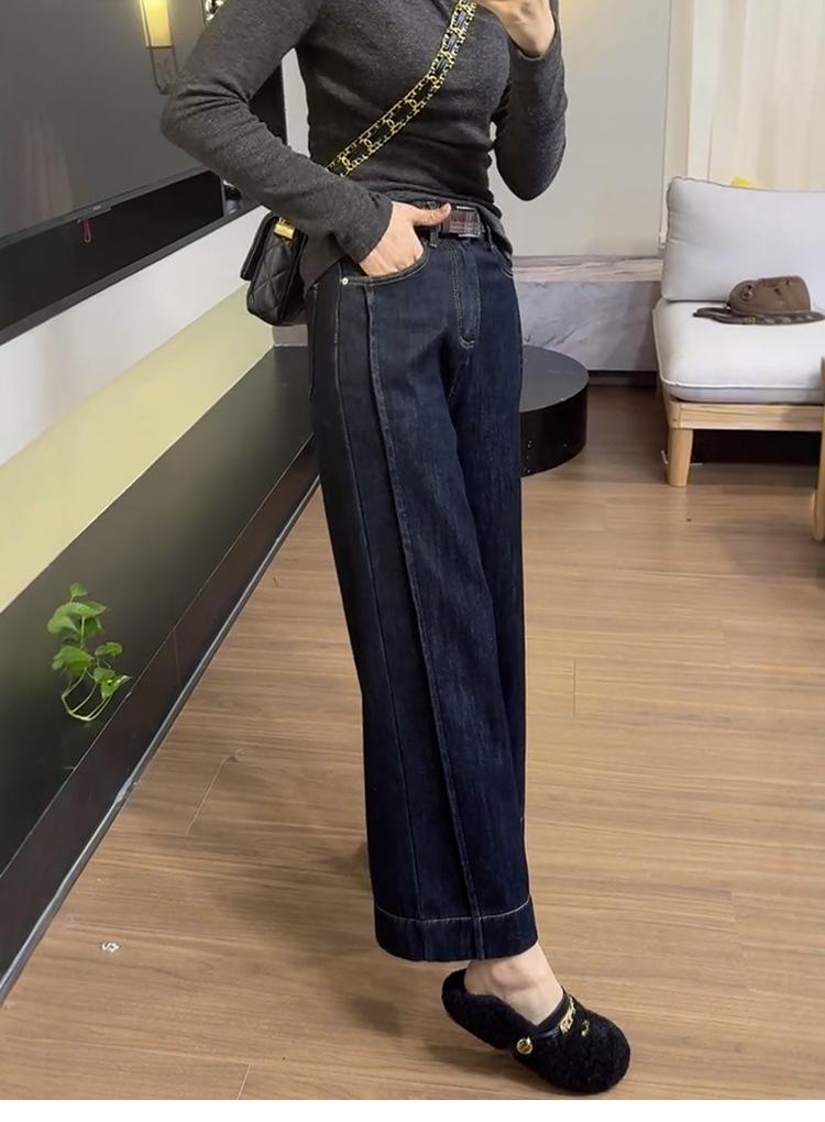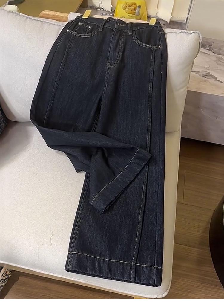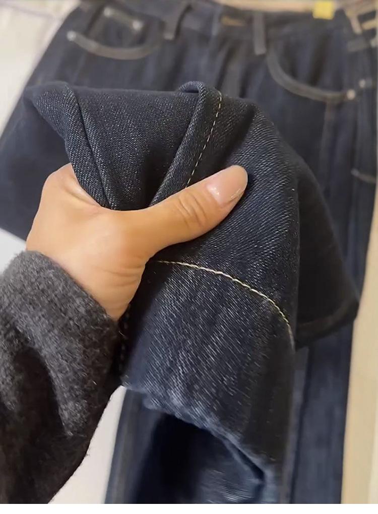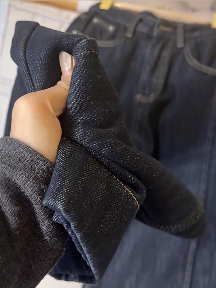 2024 otoño e invierno nuevos jeans rectos corte pera para mujer talla grande afelpados y gruesos cintura alta slim pierna ancha