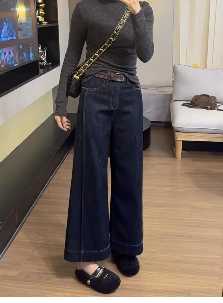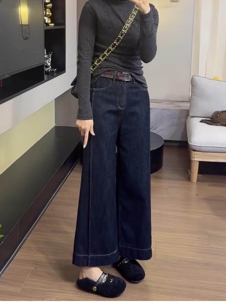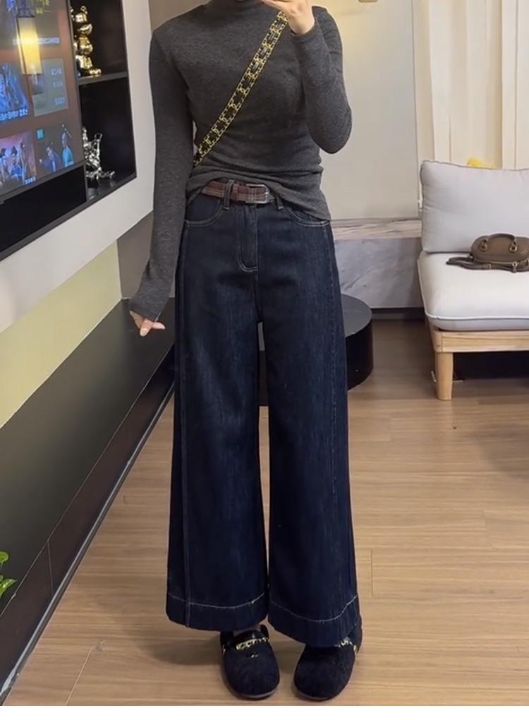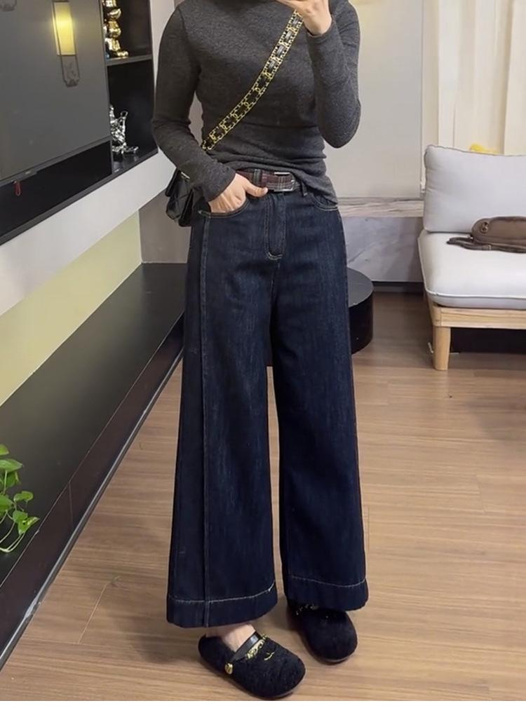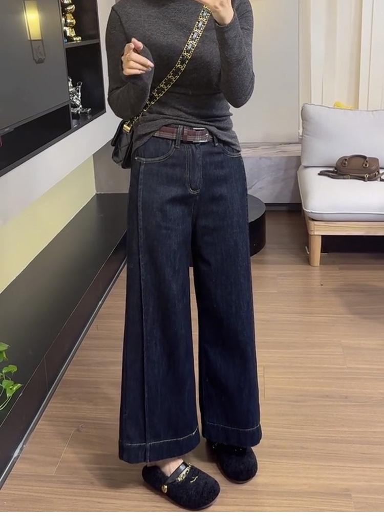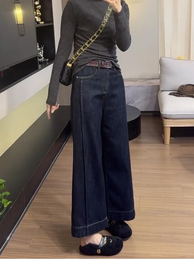 2024 otoño e invierno nuevos jeans rectos corte pera para mujer talla grande afelpados y gruesos cintura alta slim pierna ancha