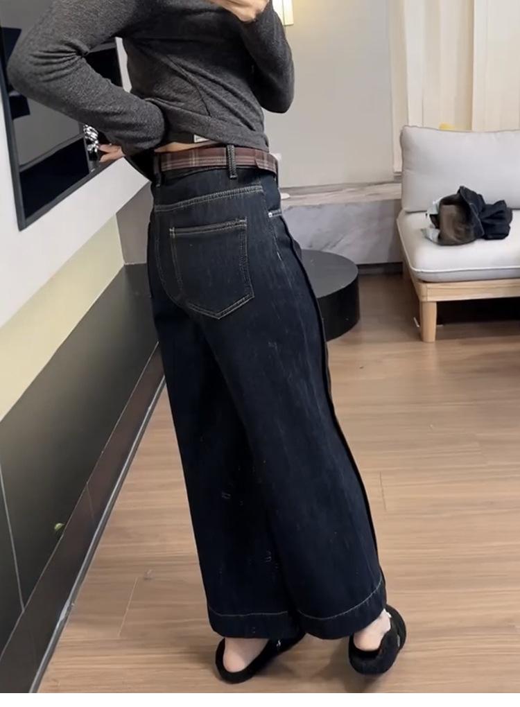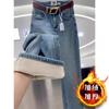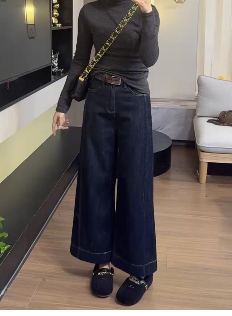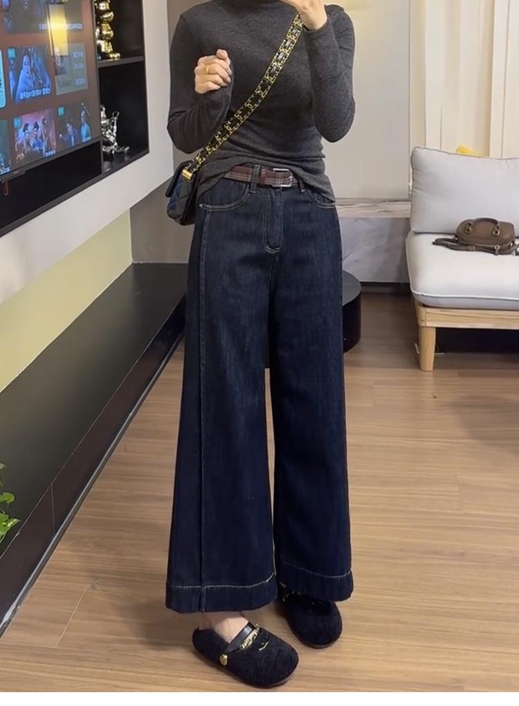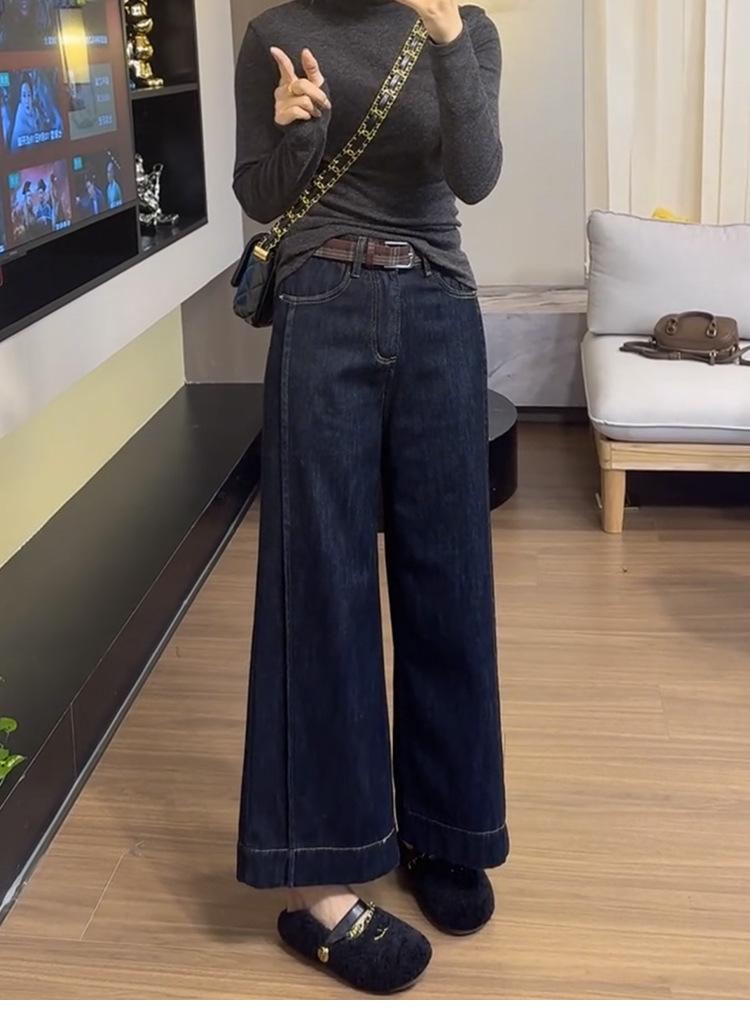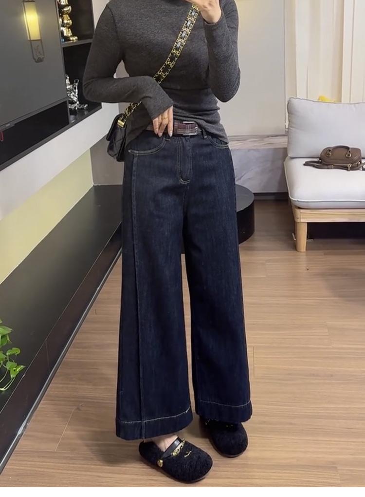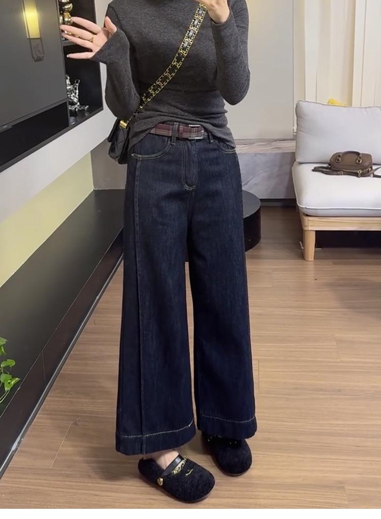 2024 otoño e invierno nuevos jeans rectos corte pera para mujer talla grande afelpados y gruesos cintura alta slim pierna ancha
