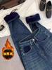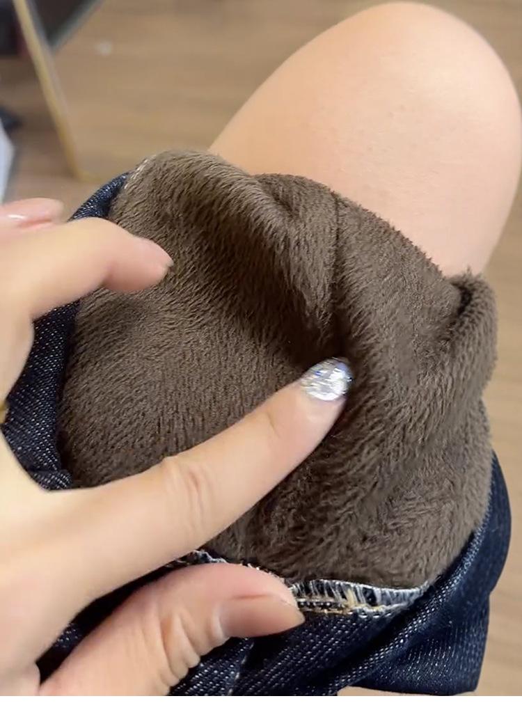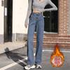 Otoño e invierno 2024 nuevos jeans rectos en forma de pera para mujer, forro polar grueso, talla grande, cintura alta, pantalones anchos y ajustados