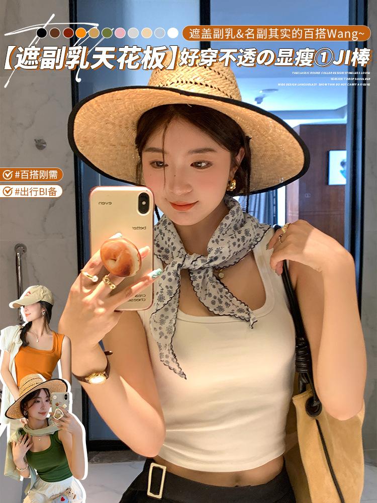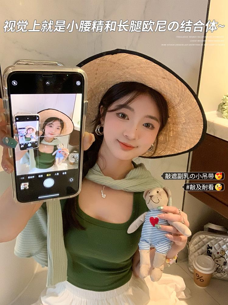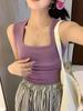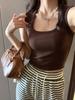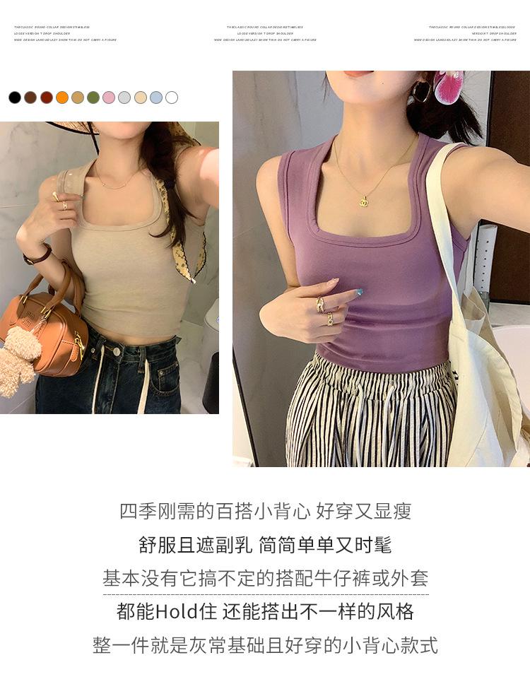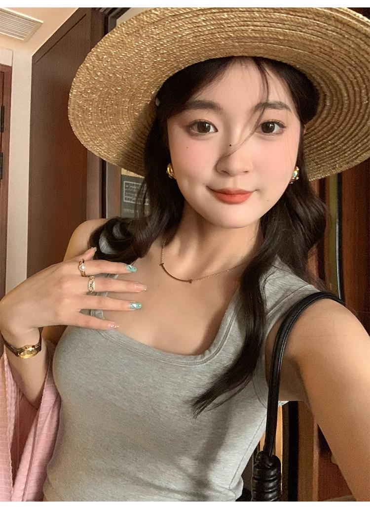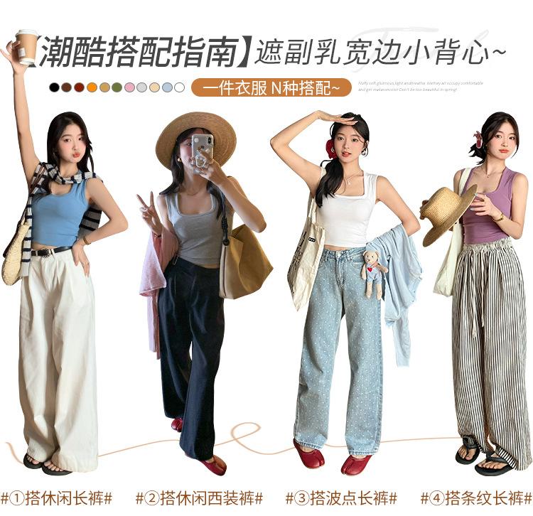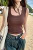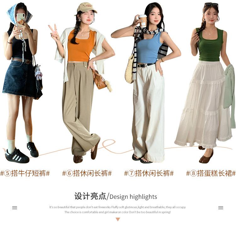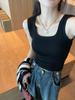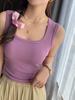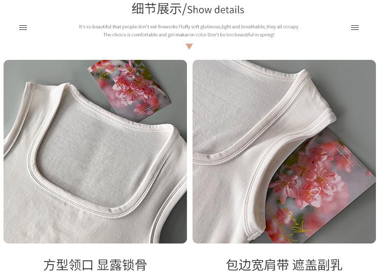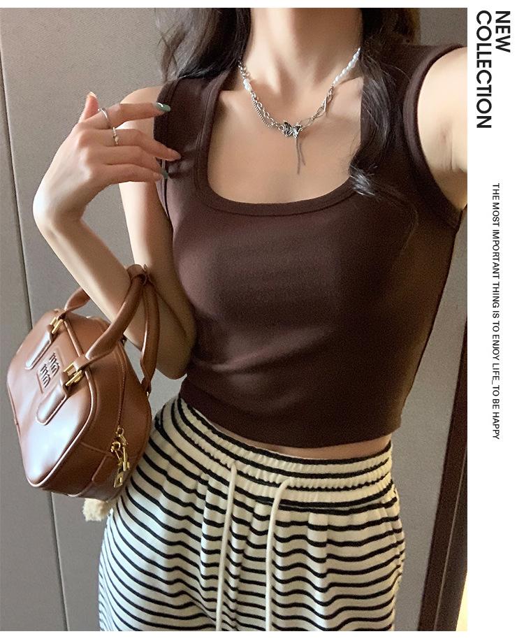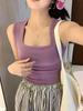 Camisola de Cuello Cuadrado para Mujer 2025 Verano Nuevo Estilo Tirantes Anchos Corta para Fondo con Top sin Mangas para Usar Exterior